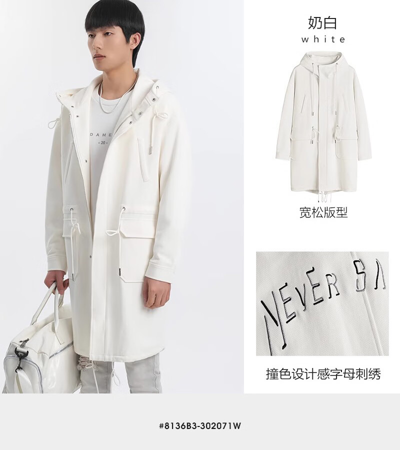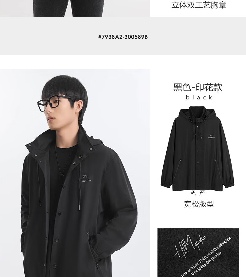 HIM漢崇 可拆卸连帽轻薄夹克简约字母烧花运动休闲外套 2026春季