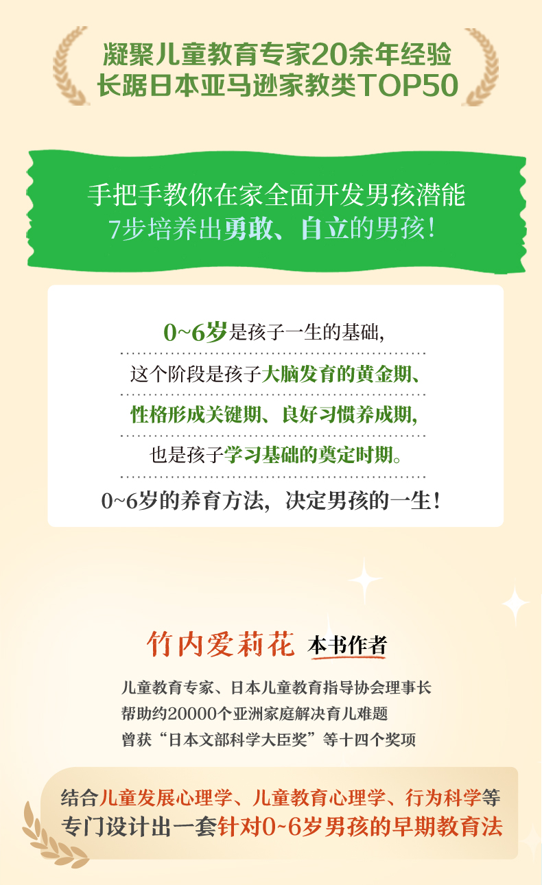毕业于日本御茶水女子大学研究生院人文科学研究科。20余年来,致力于儿童心理、教育、培养领域的研究,帮助约20000个亚洲家庭解决育儿难题,并曾获“日本文部科学大臣奖”等十四个奖项。