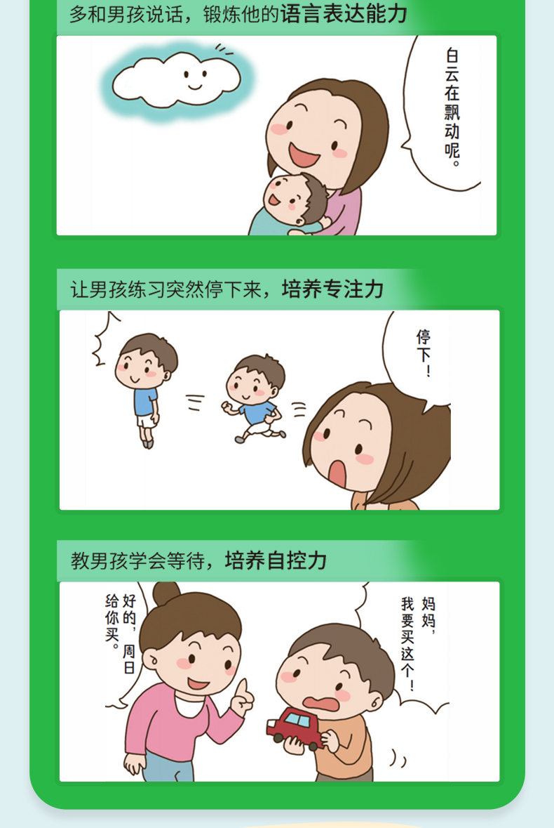 书中明确了35个男孩教养重点,并将这些方法融于日常生活,一岁一个阶段,帮助父母阶段性地培养男孩未来所需的7大特质,全面开发男孩的潜能!