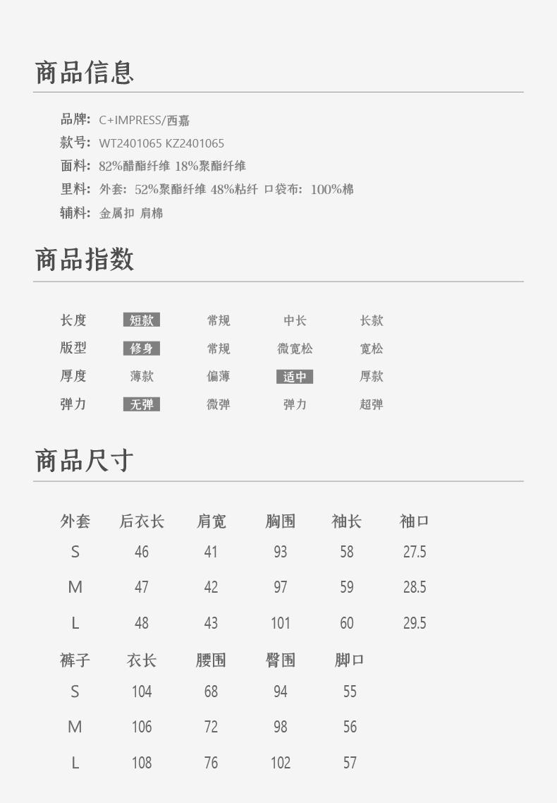 西嘉C+IMPRESS/西嘉醋酸小个子复古直筒裤KZ2401065