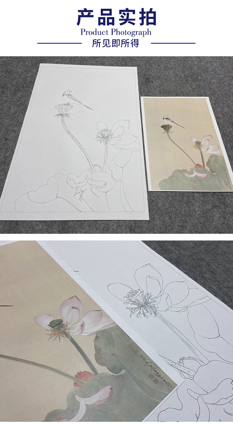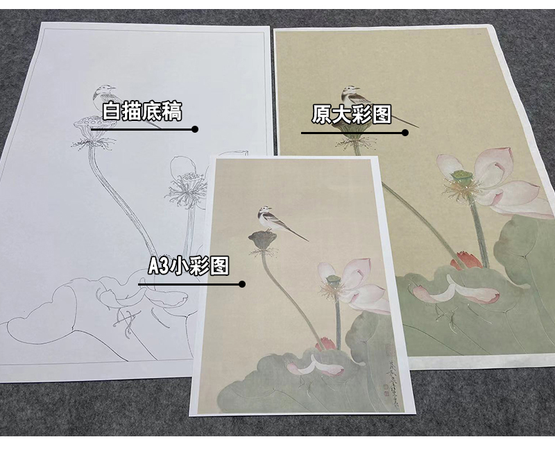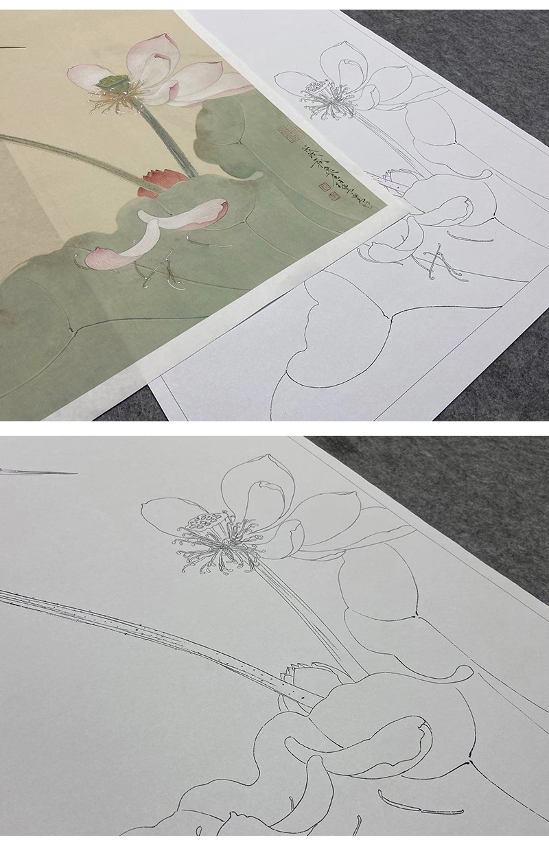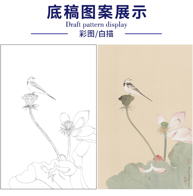 任重工笔画白描底稿荷花《秋荷鹡鸰》临摹勾线高清打印稿YL25