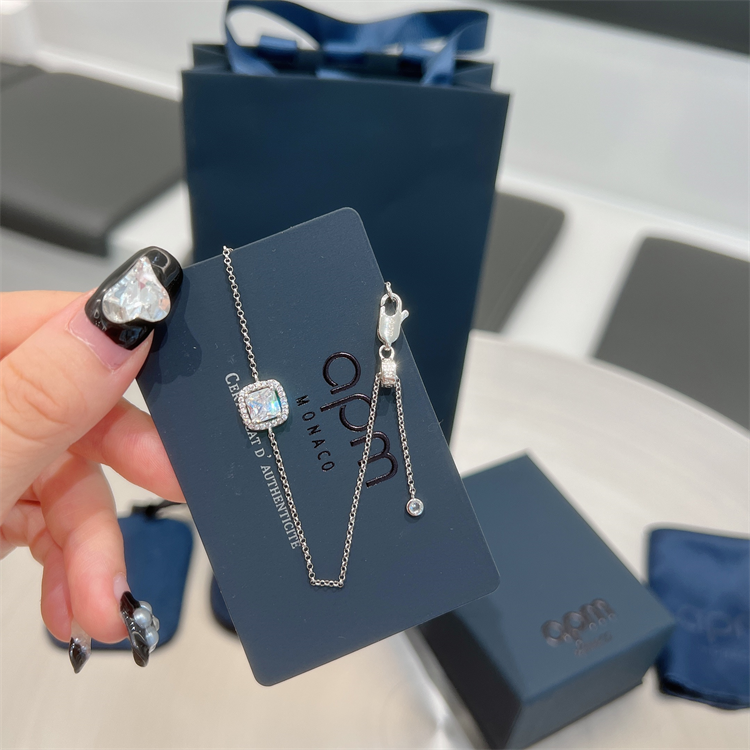 情人节礼物,[新品]APM 小方钻手链可调节银手链女生精致闺蜜礼物