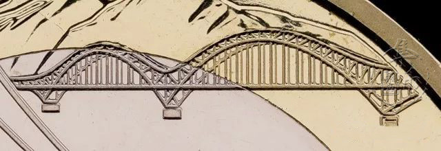 硬币外环为黄色铜合金,内芯为具有独特机读性能的镍带复合白铜材料。