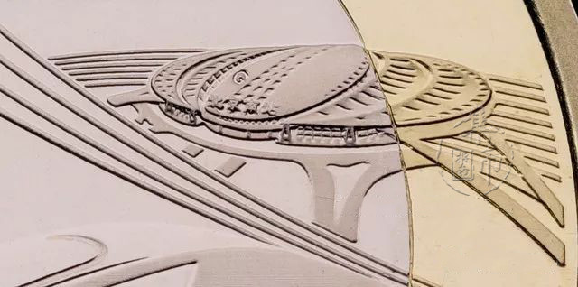硬币边缘分布有交替排列的斜全齿与半齿。