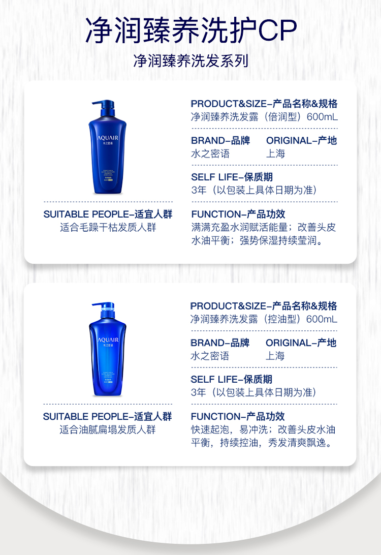 水之密语(AQUAIR)净润臻养护发素600ml 滋养保湿 强韧修护 男士女士通用
