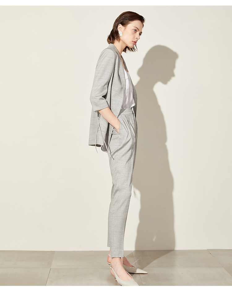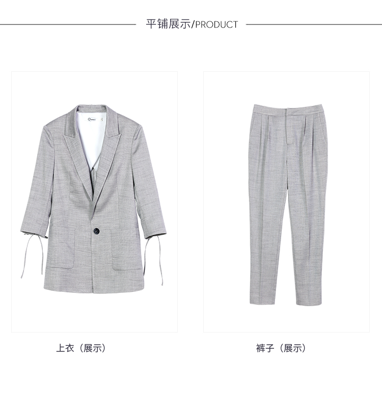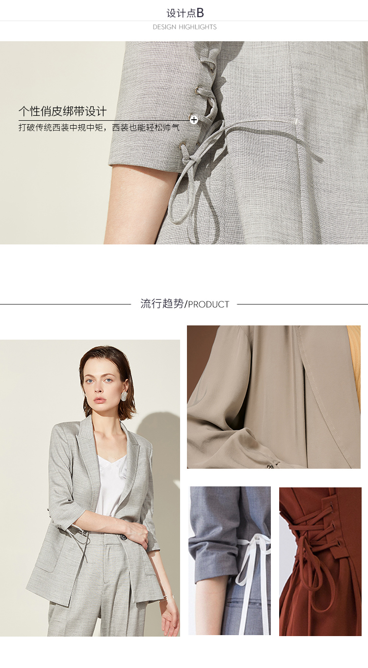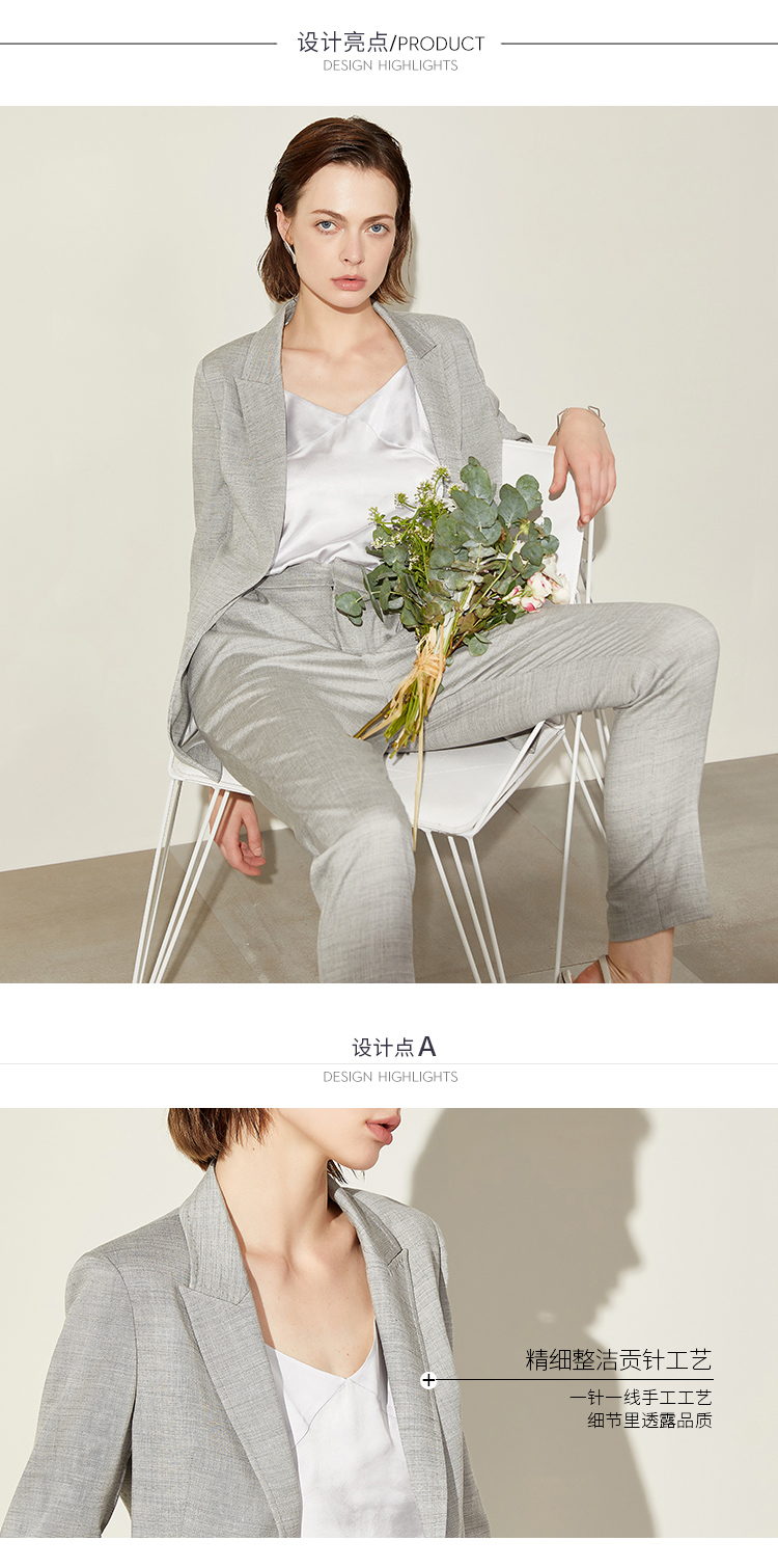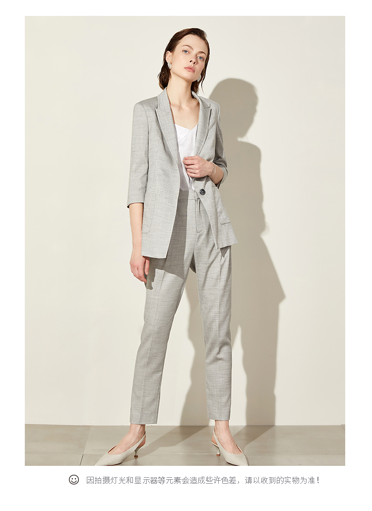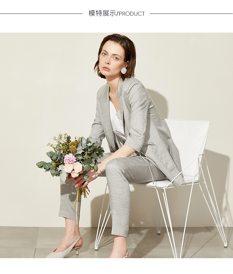 西嘉C+IMPRESS/西嘉原创仿亚麻西装套装女中长款薄款外套休闲套装