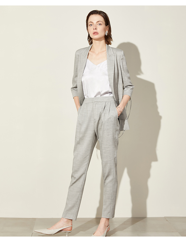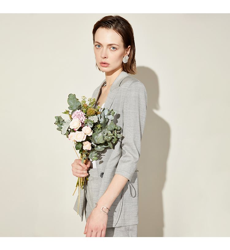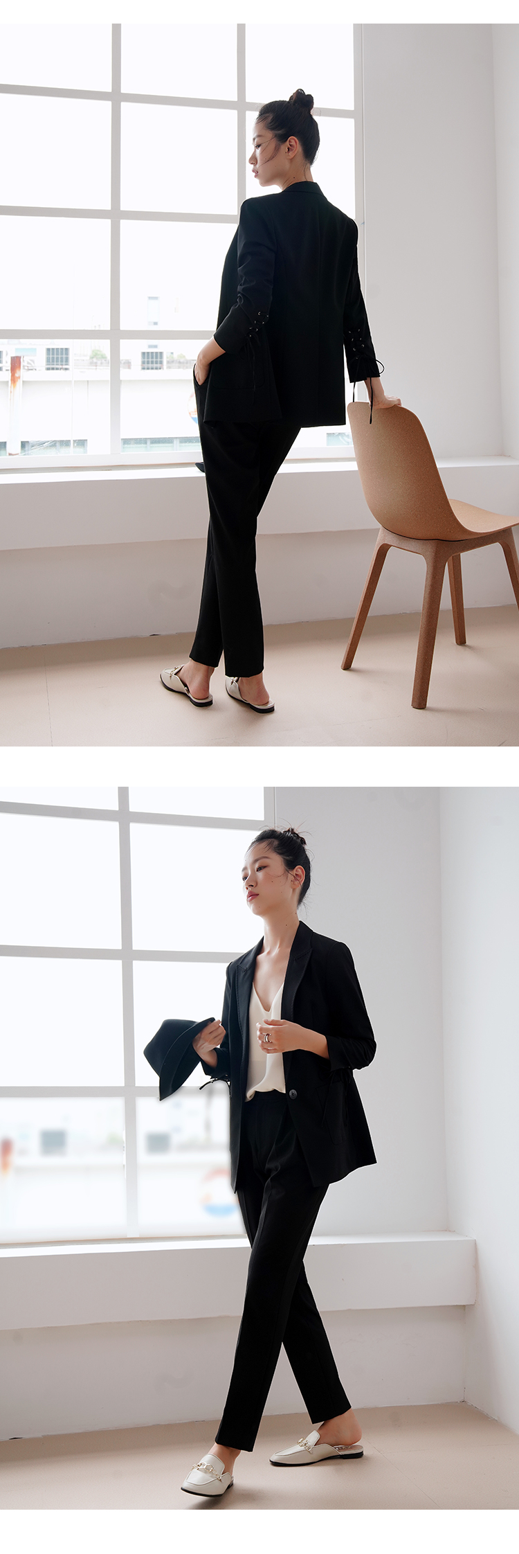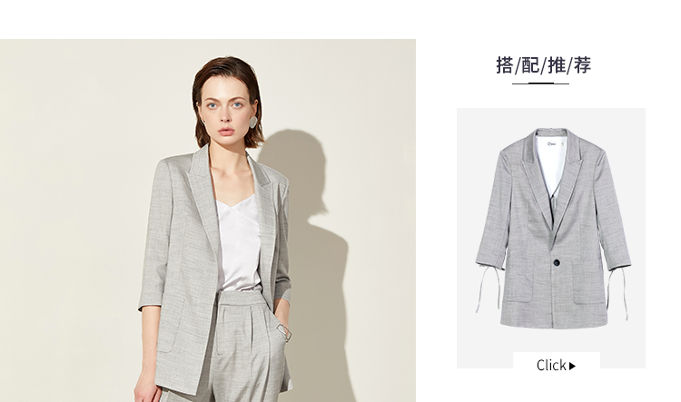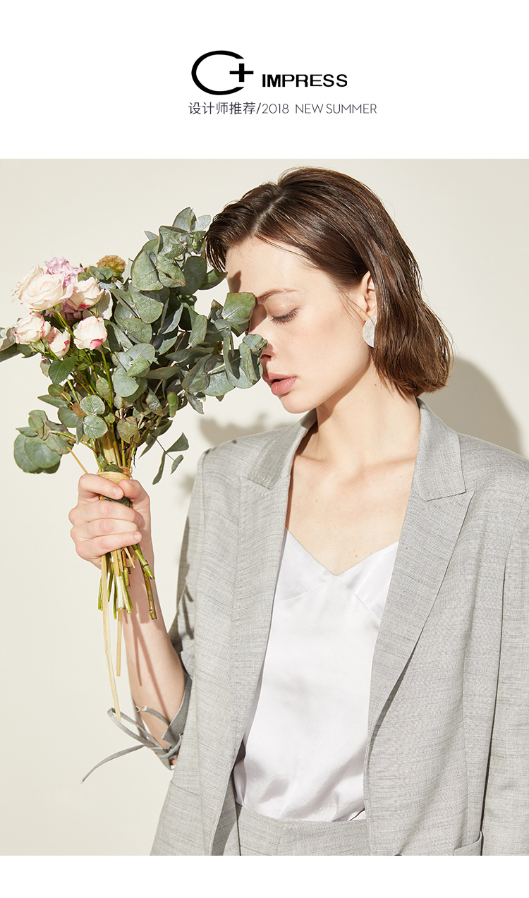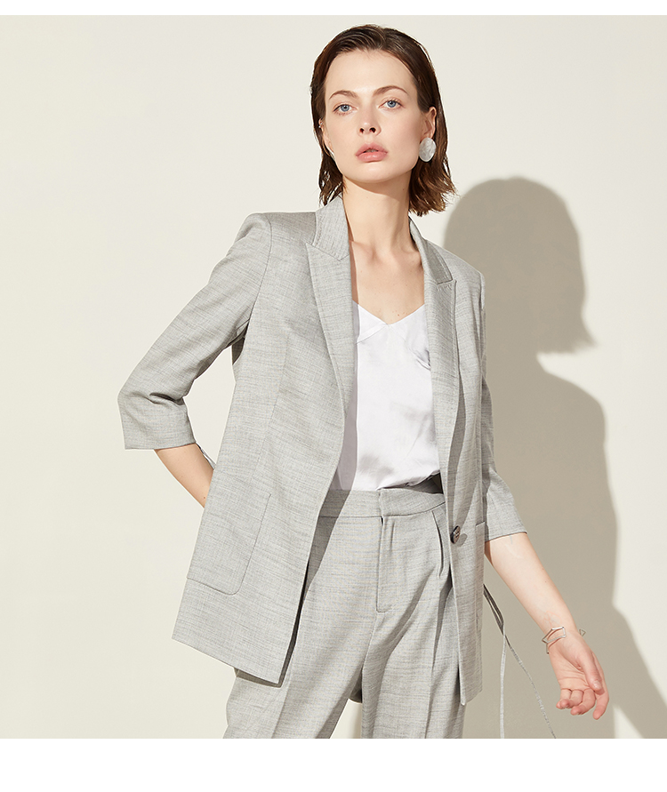 西嘉C+IMPRESS/西嘉原创仿亚麻西装套装女中长款薄款外套休闲套装