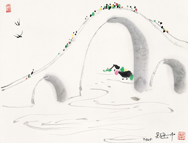 我爱桥,从绘画角度看,正如文中所谈,缘于其形式结构之美。跨运河,高桥陡起,人往高处走,环视四野,我是宇宙中心。顶天立地宽阔面,绕以曲线,青罗带似石榴裙。