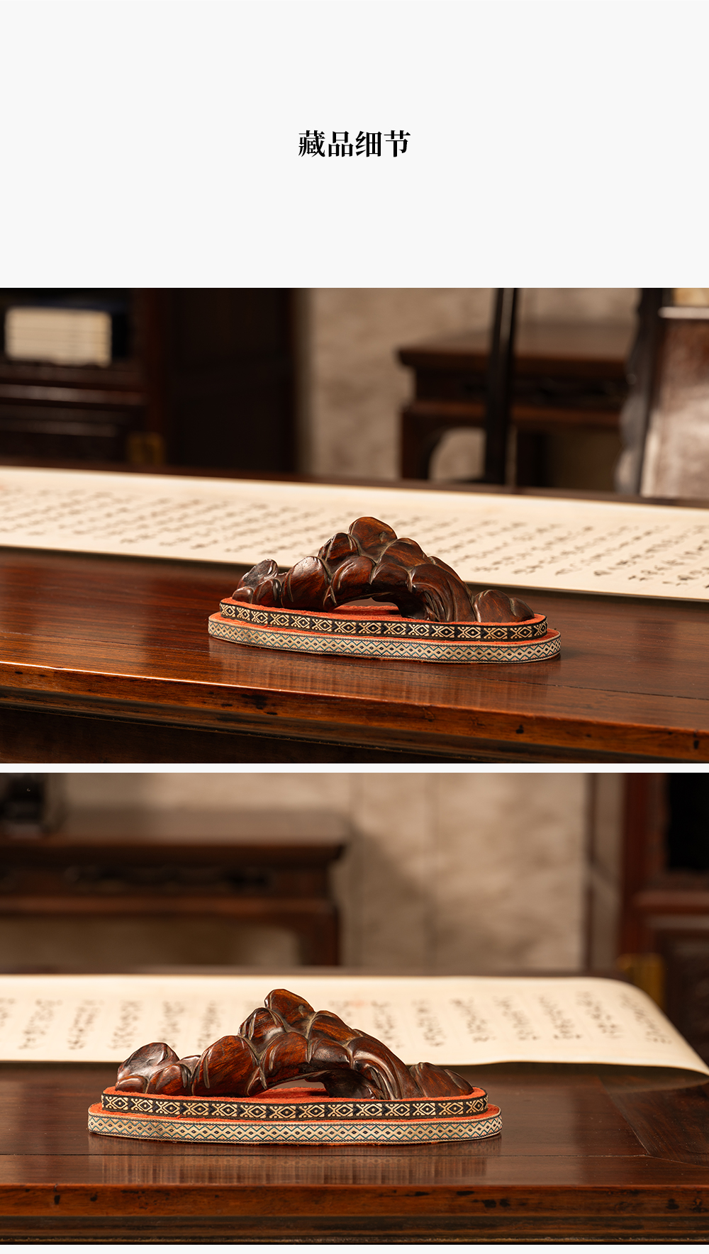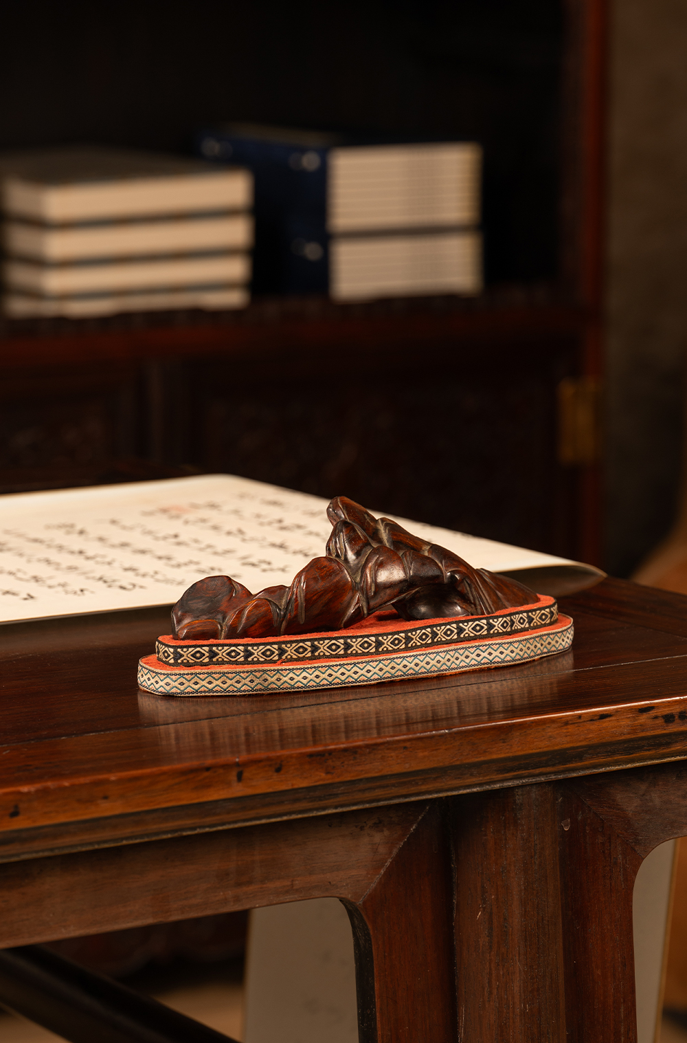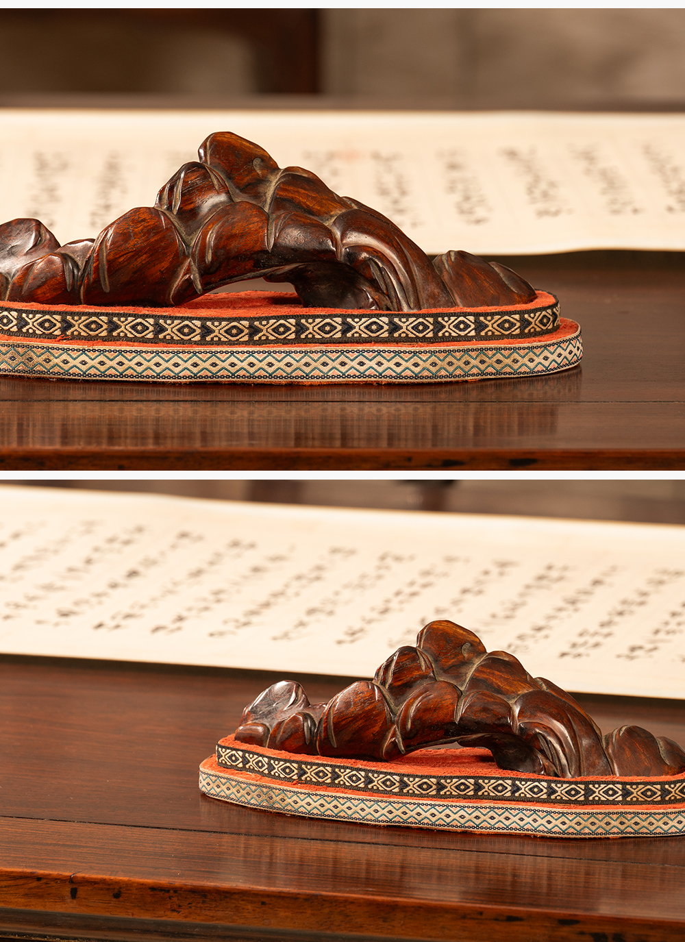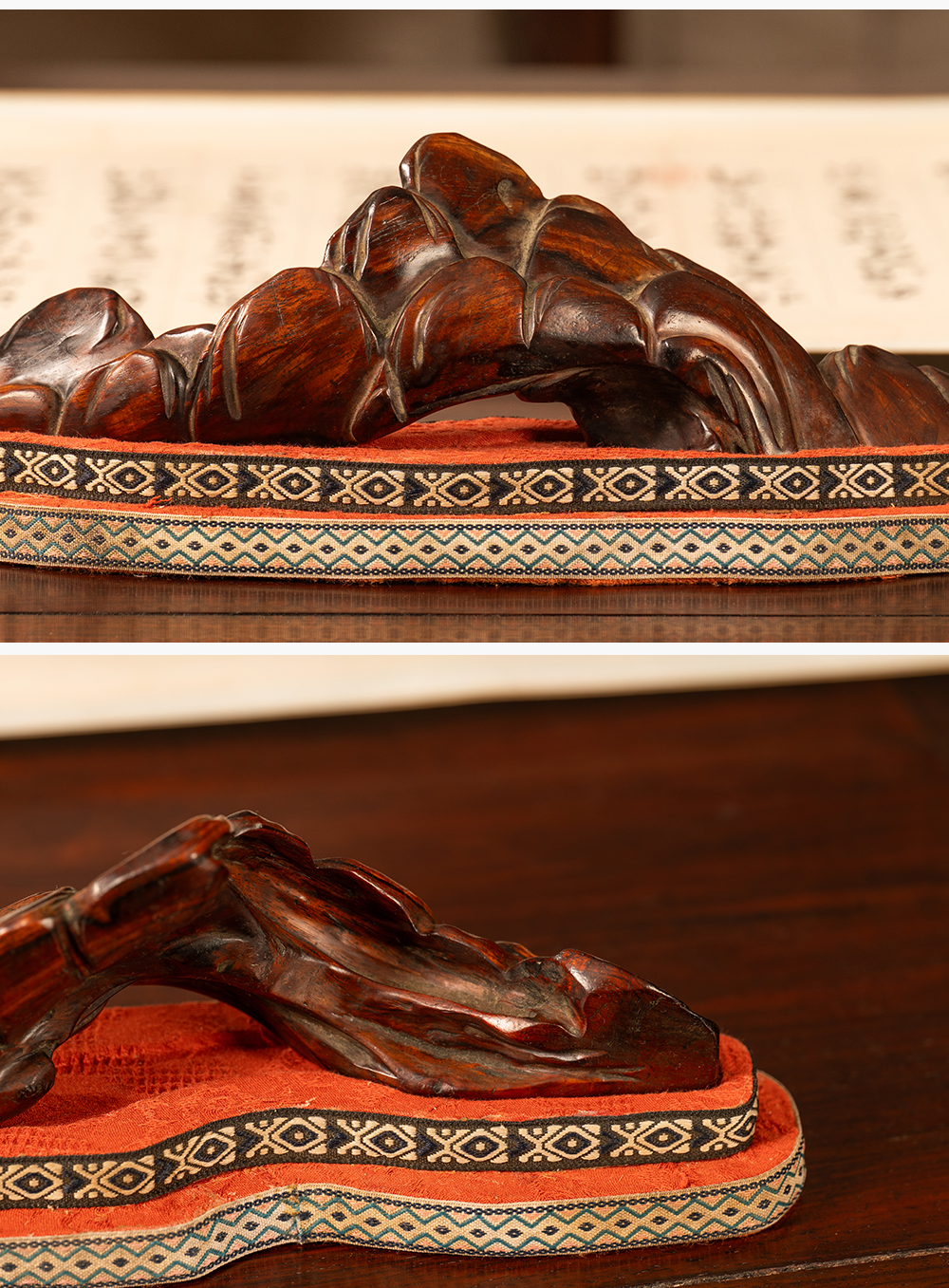 清代 红木镶瘿木嵌寿山石山水人物插屏