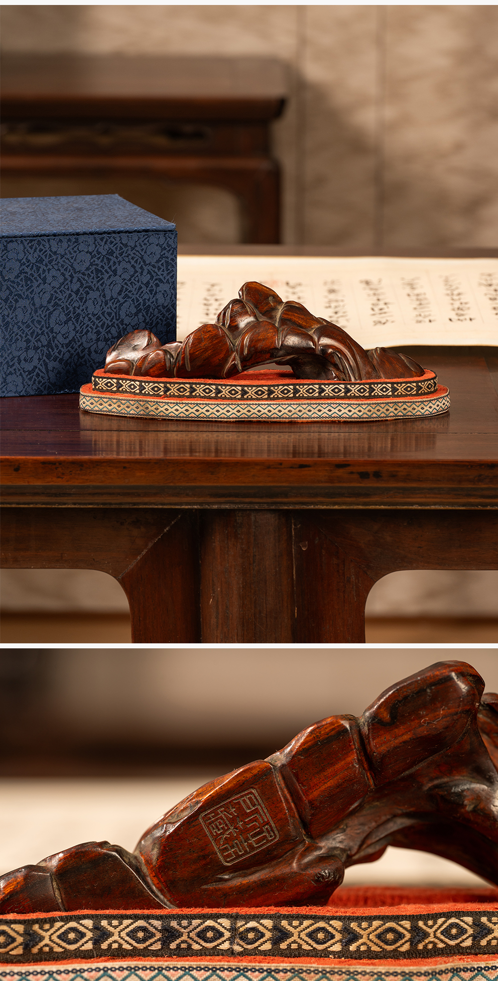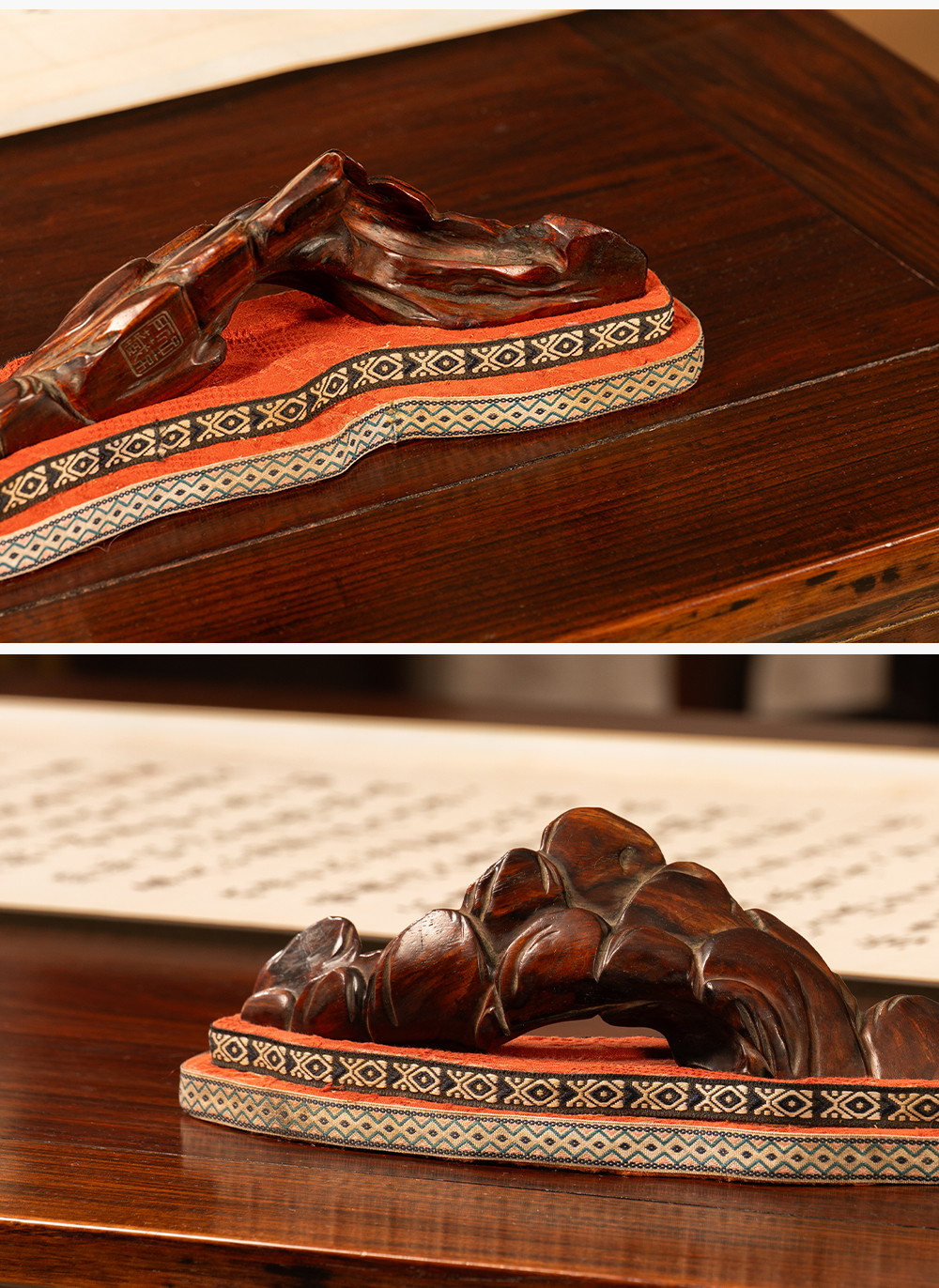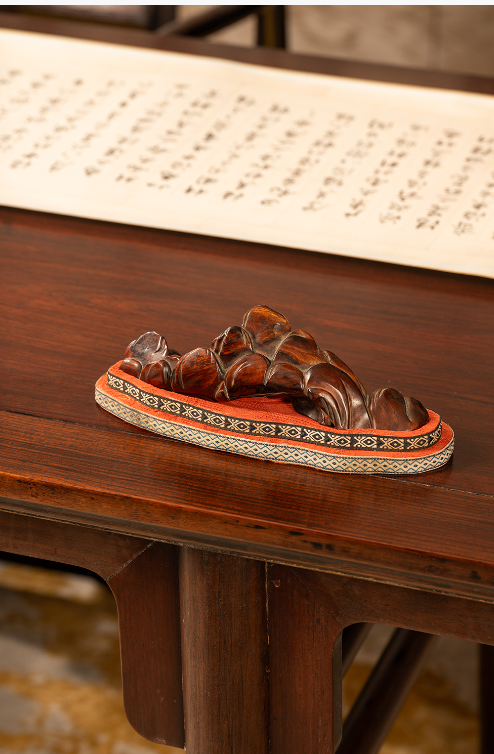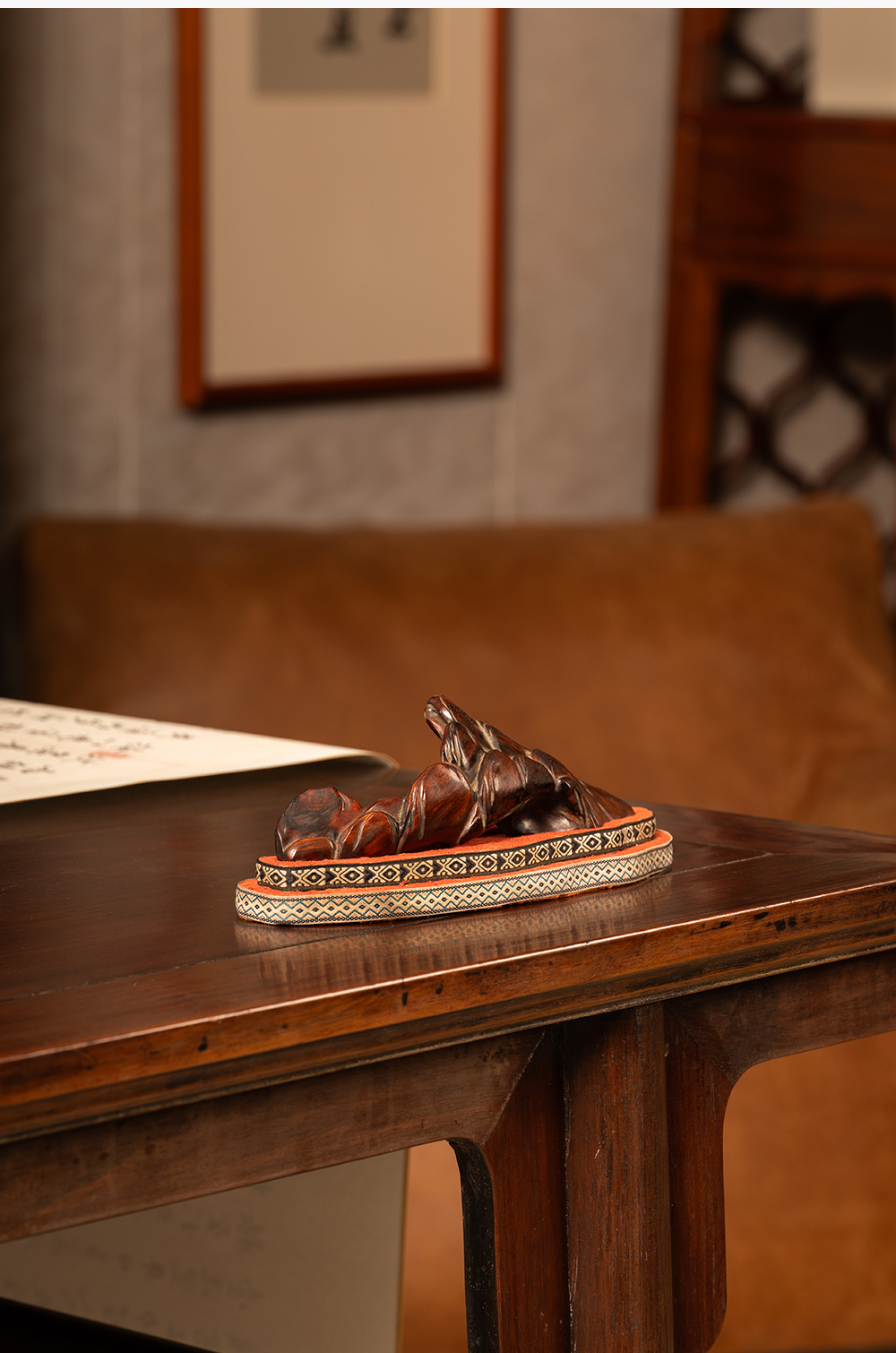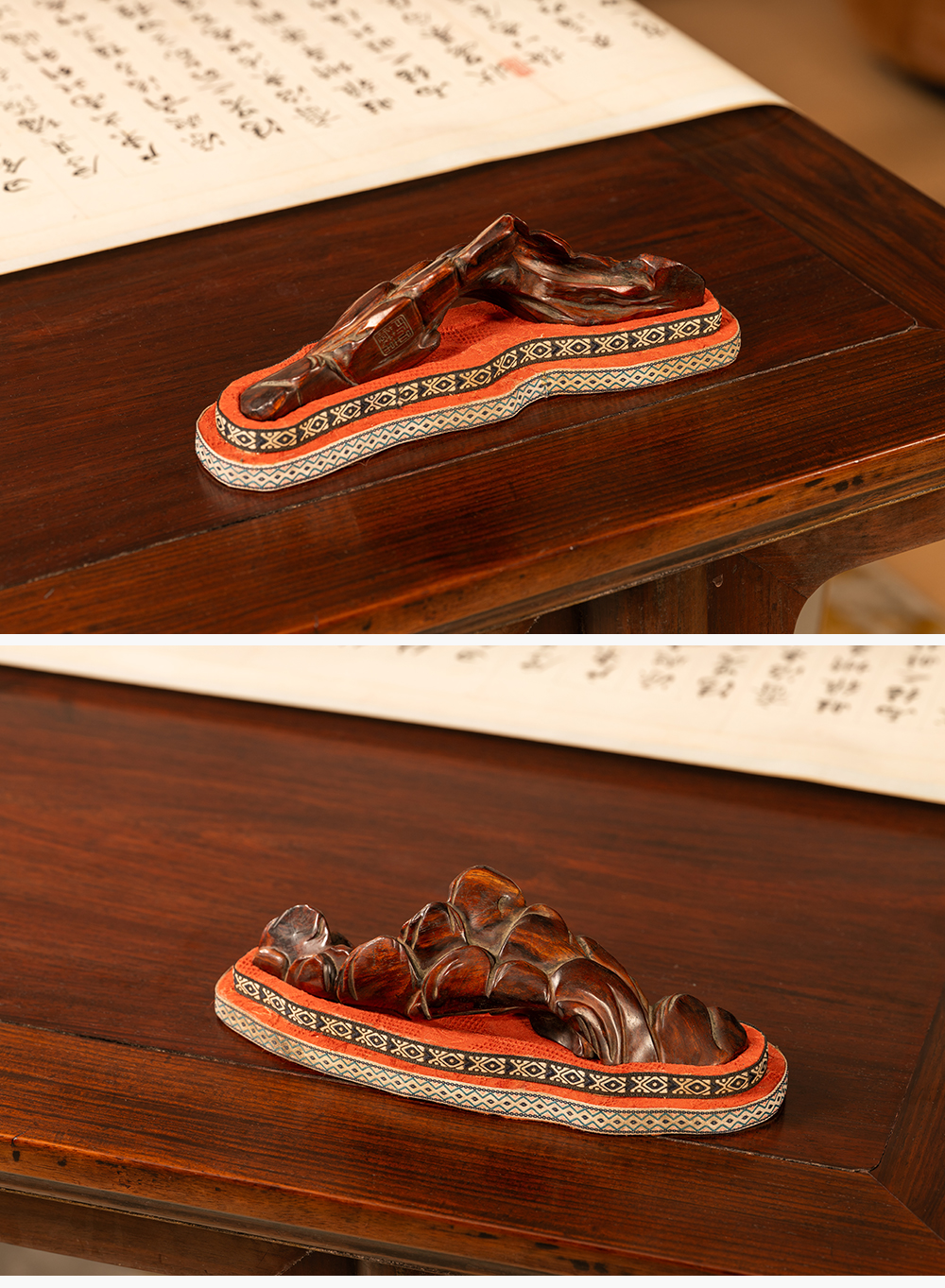 清代 红木镶瘿木嵌寿山石山水人物插屏