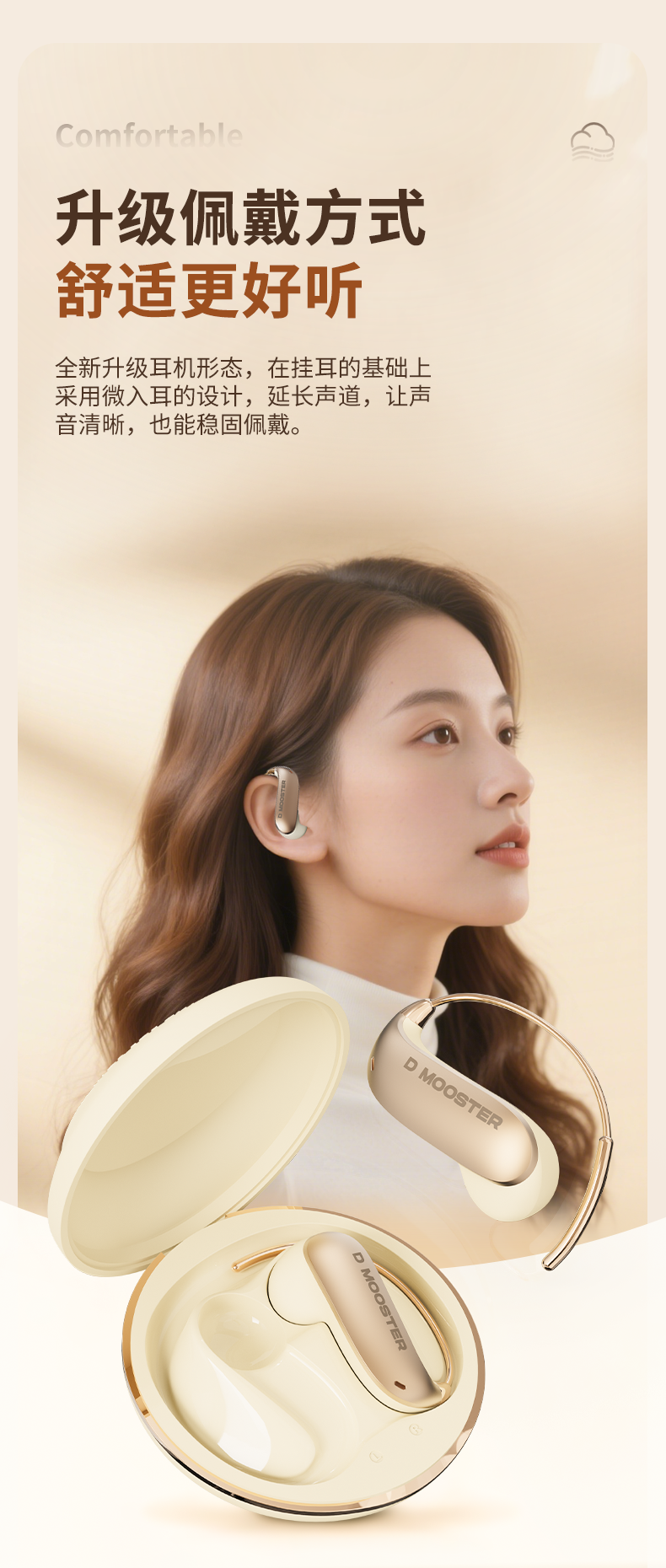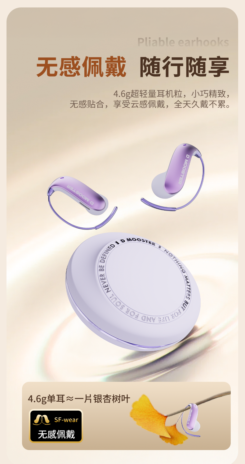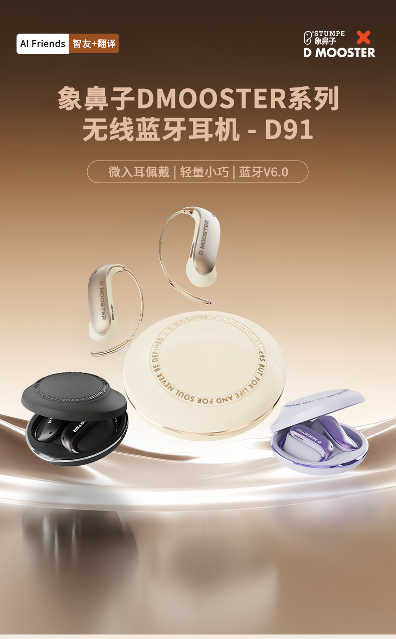 象鼻子联名 大怪兽开放式AI无线蓝牙耳机6.0 AI翻译耳机 定向输出 轻量小巧 D91