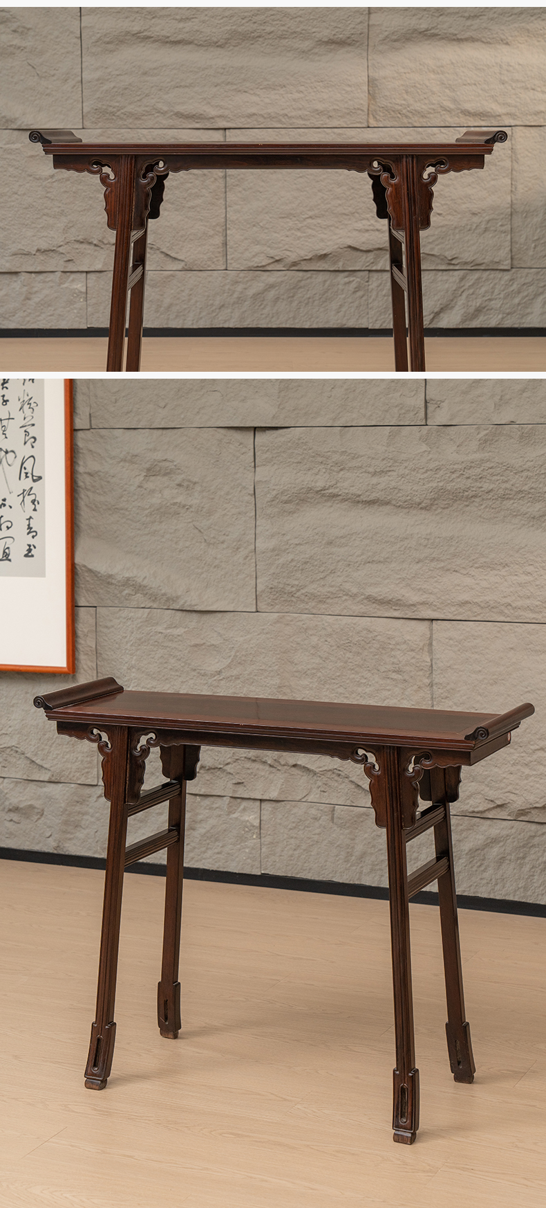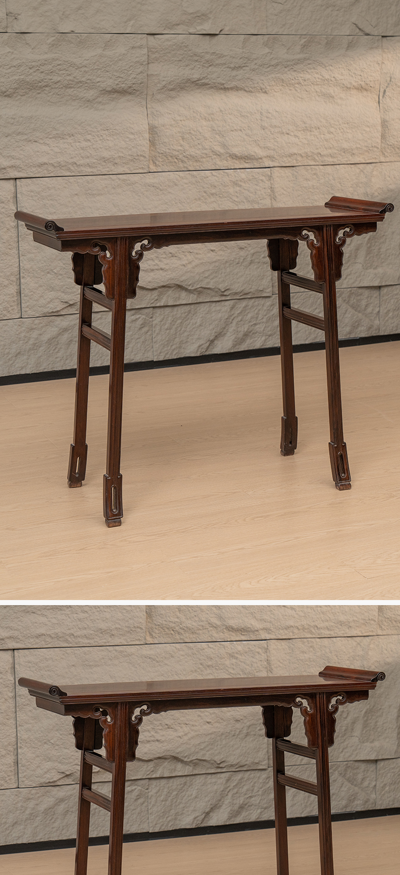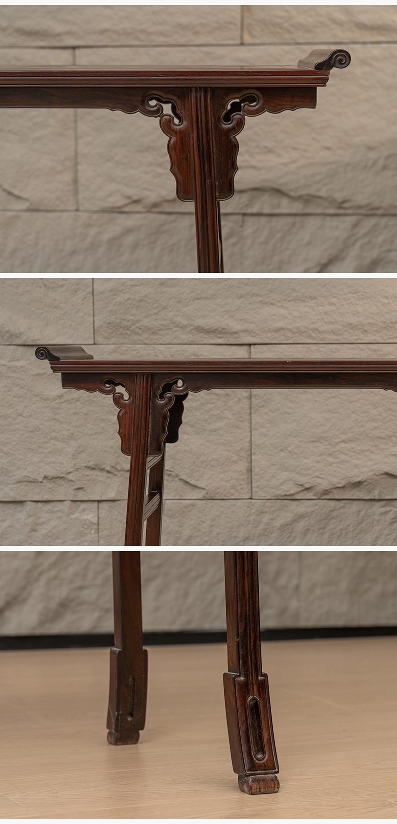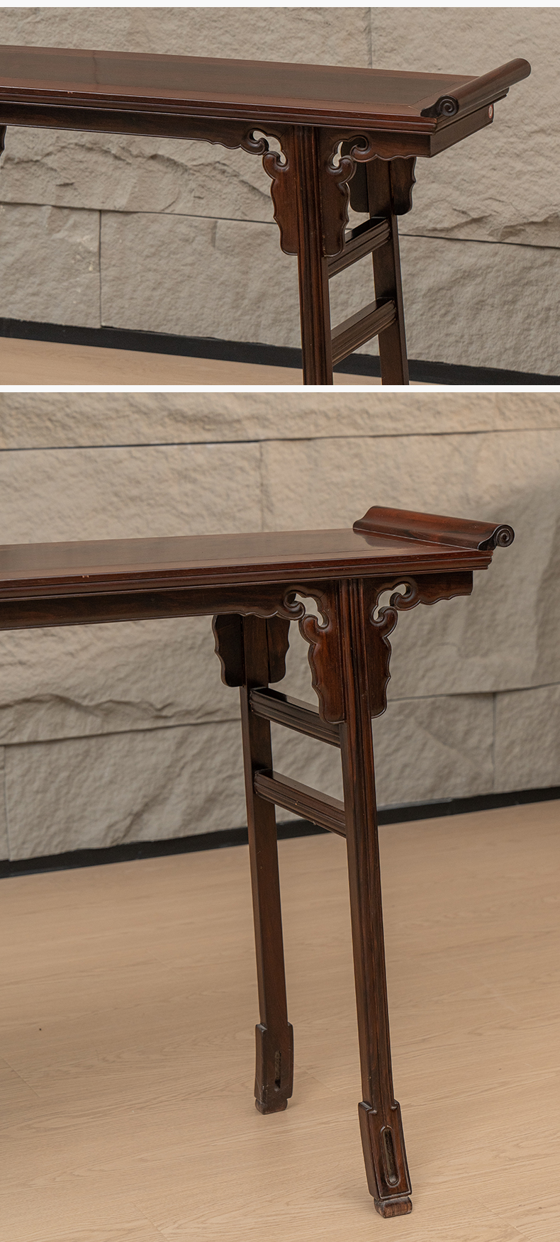 二十世纪 黄花梨卷草纹三弯腿带托泥方香几(一对)