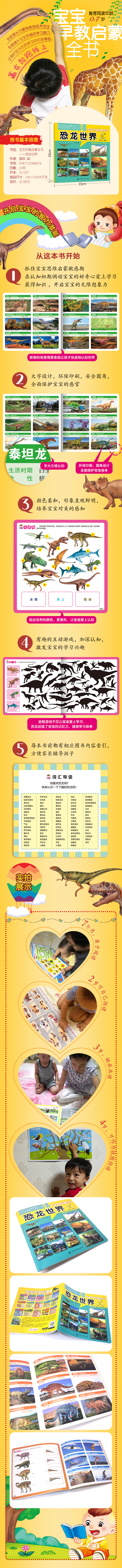 宝宝早教启蒙全书 恐龙世界 0-7岁宝宝幼儿早教启蒙恐龙世界认知书 轻松认知大图大字大双语启蒙轻松翻看图片圆角设计安全早教全书