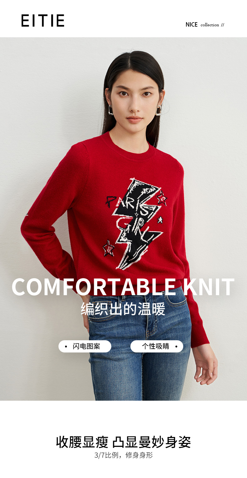 EITIE爱特爱冬季新款优雅气质刺绣打底针织衫6801509