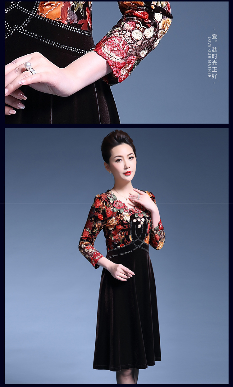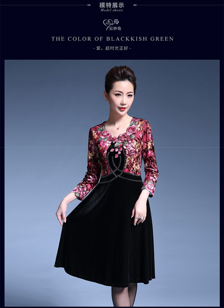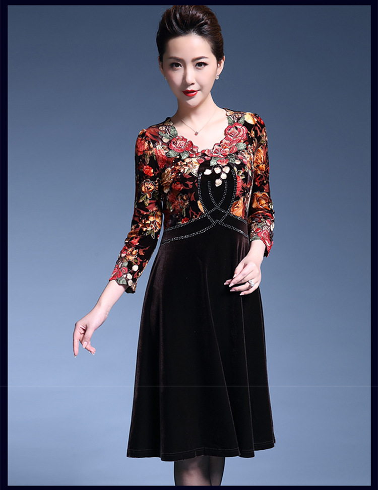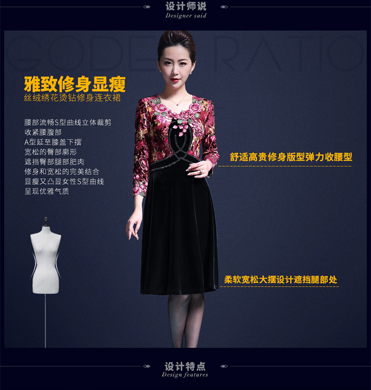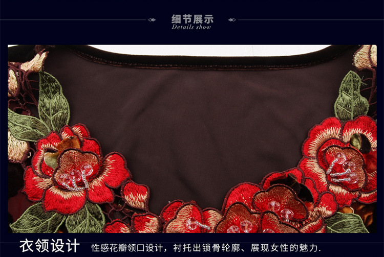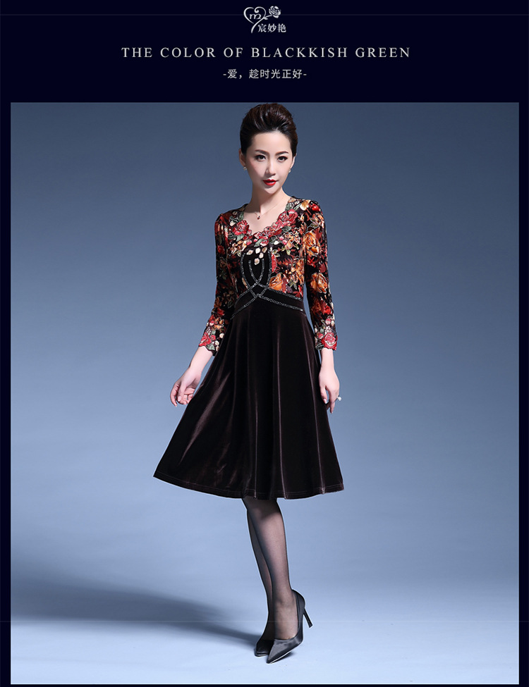 MY-6942新款丝绒连衣裙名媛气质绣花中长款大摆裙