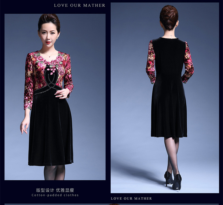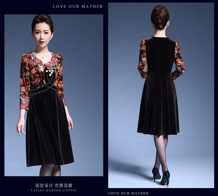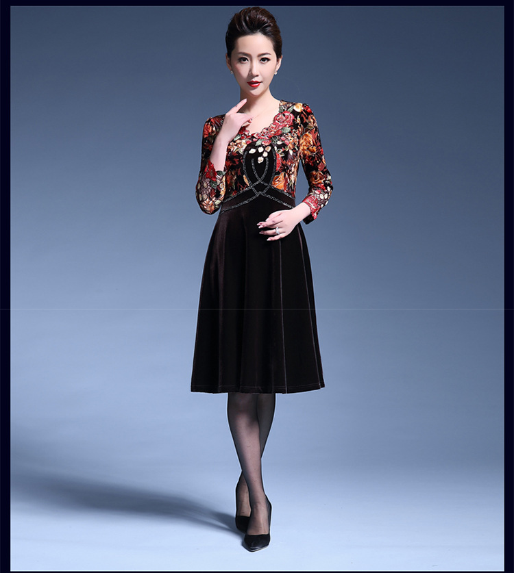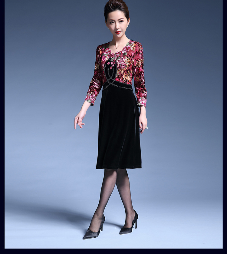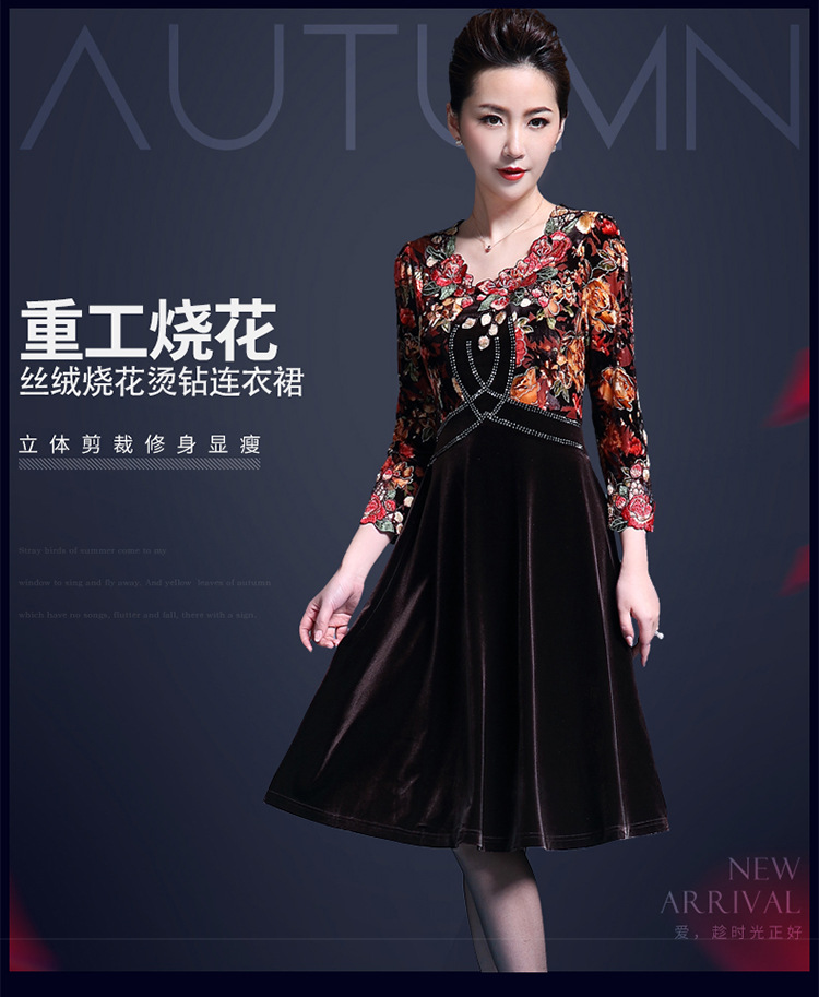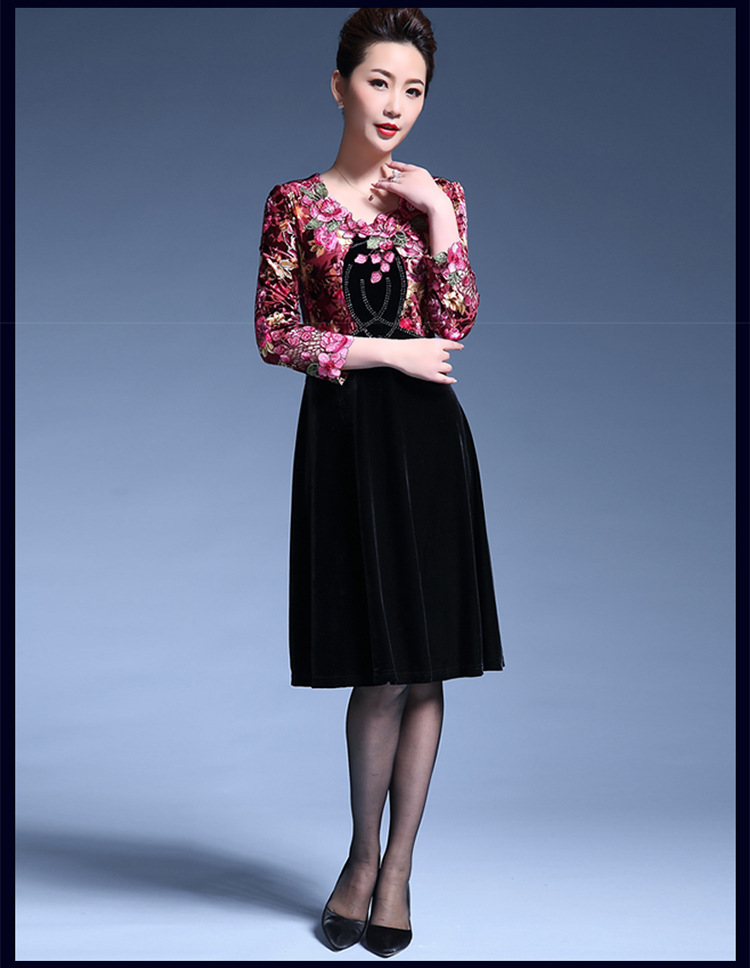 MY-6942新款丝绒连衣裙名媛气质绣花中长款大摆裙