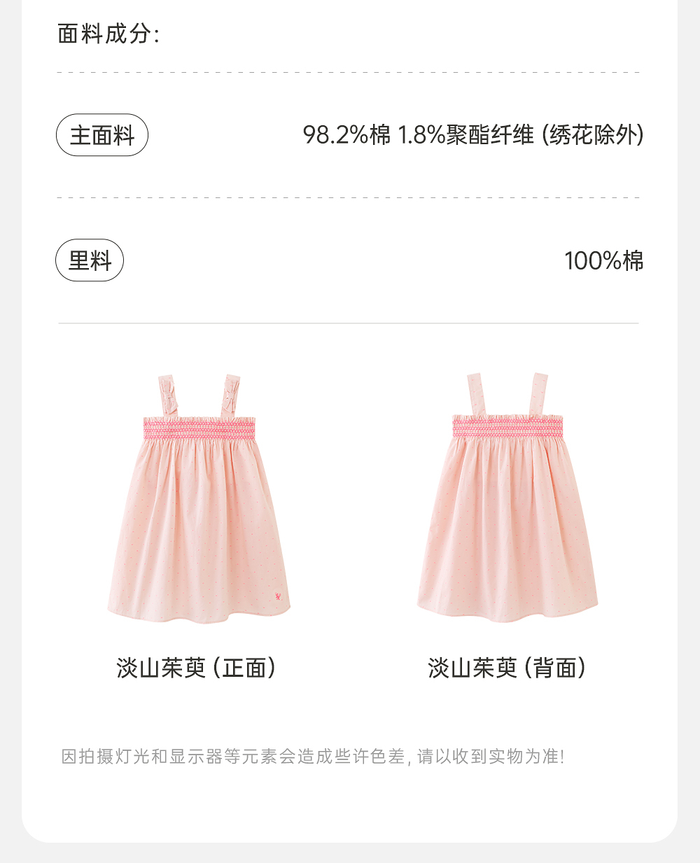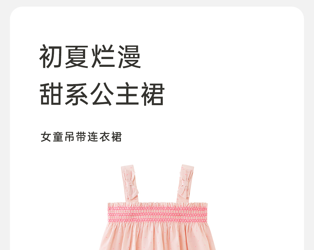 【商场同款】英氏女童连衣裙夏季透气可爱蝴蝶结小女孩吊带裙子