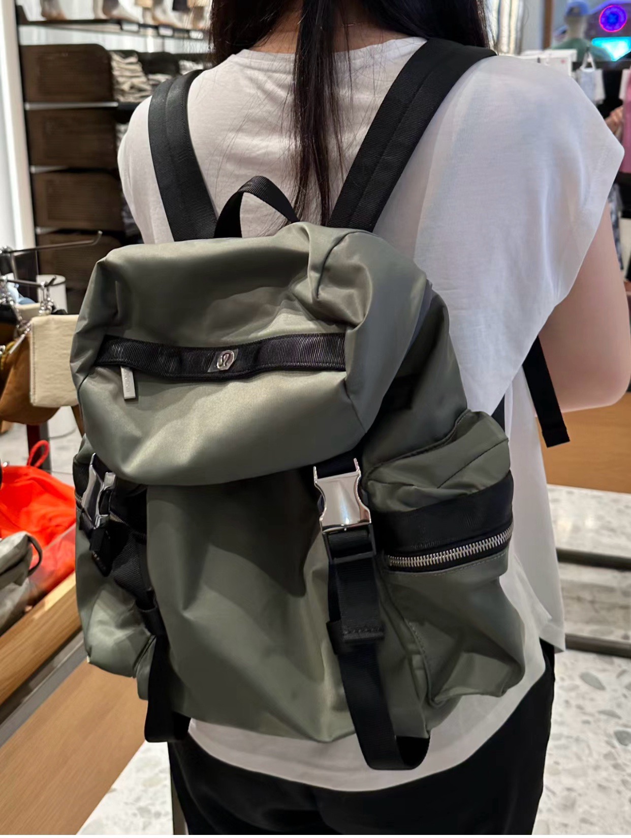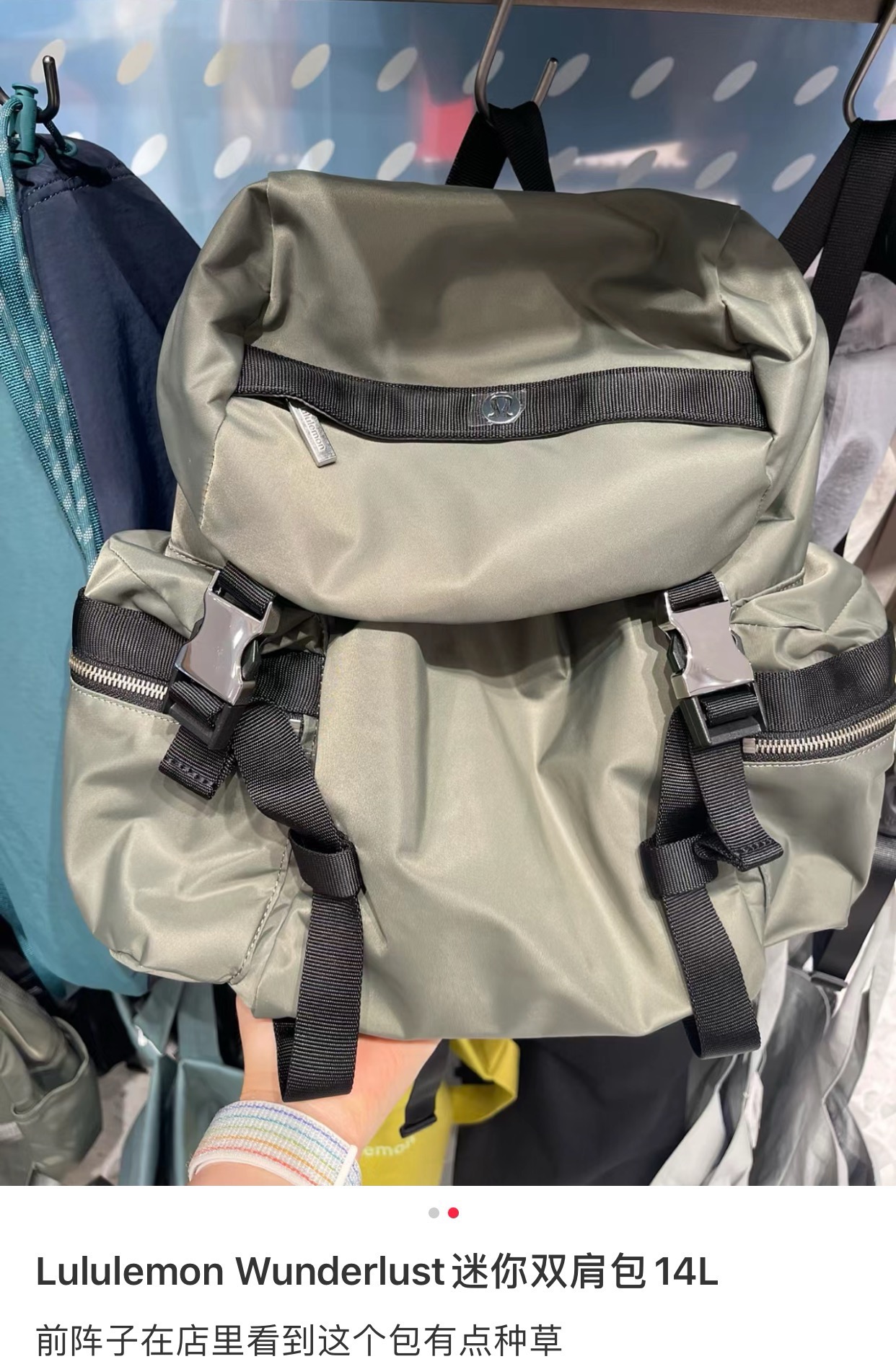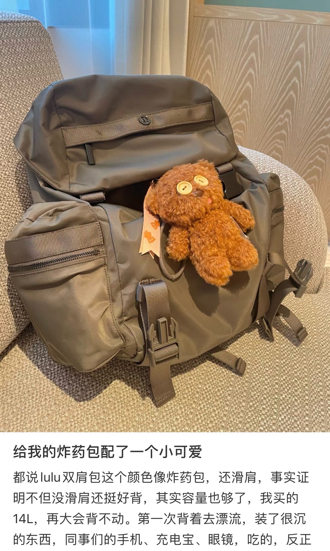 整体的设计就很lulu风,不管是配色还是包型整体看上去非常简约!但是细节功能一点不简单哈!