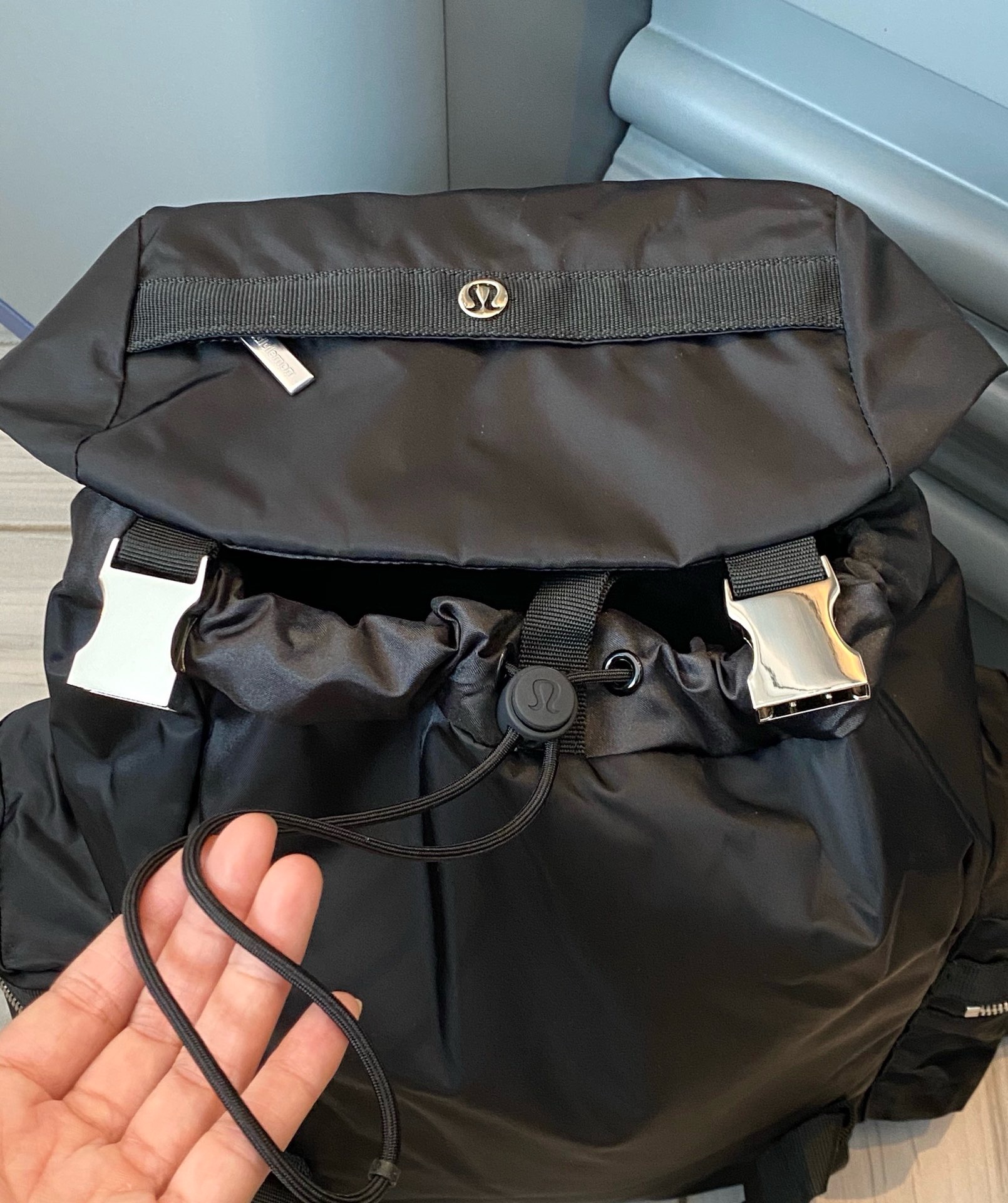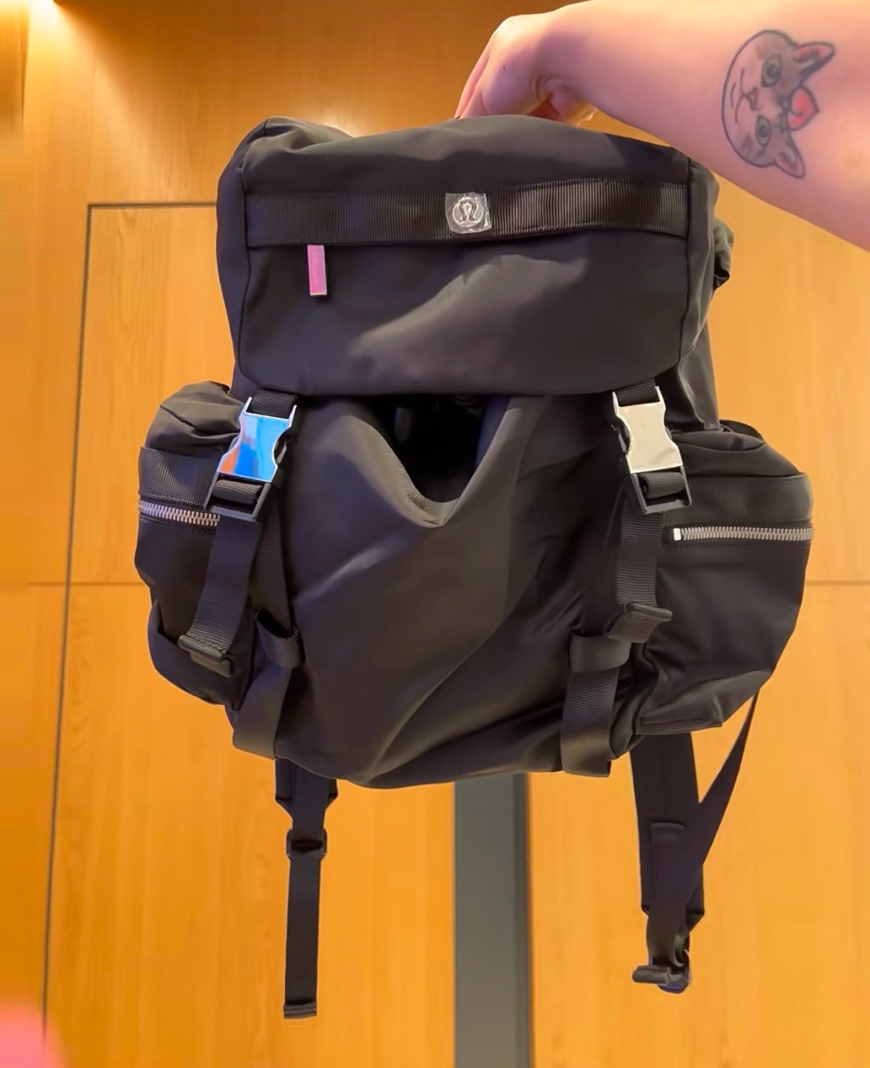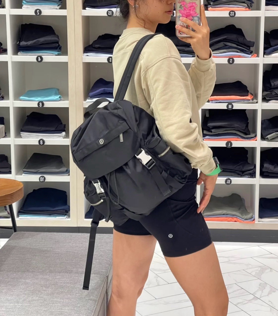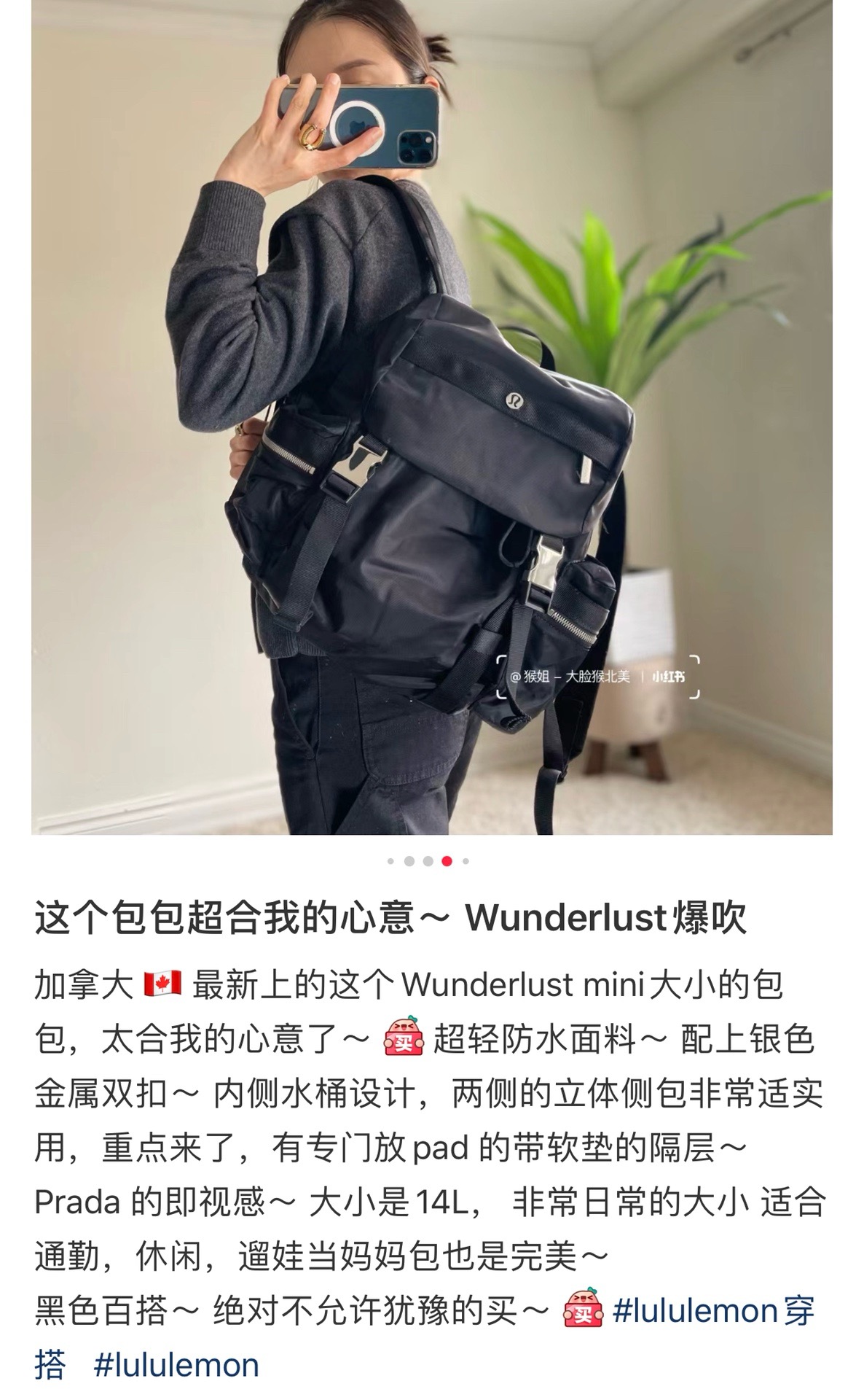 整体的设计就很lulu风,不管是配色还是包型整体看上去非常简约!但是细节功能一点不简单哈!