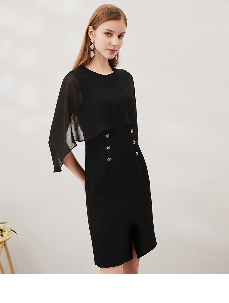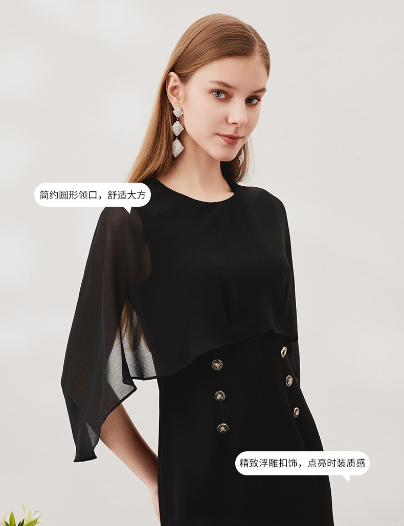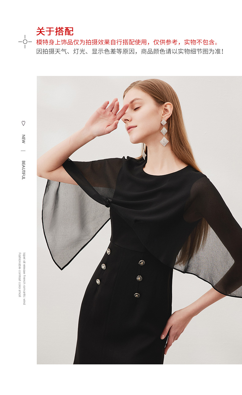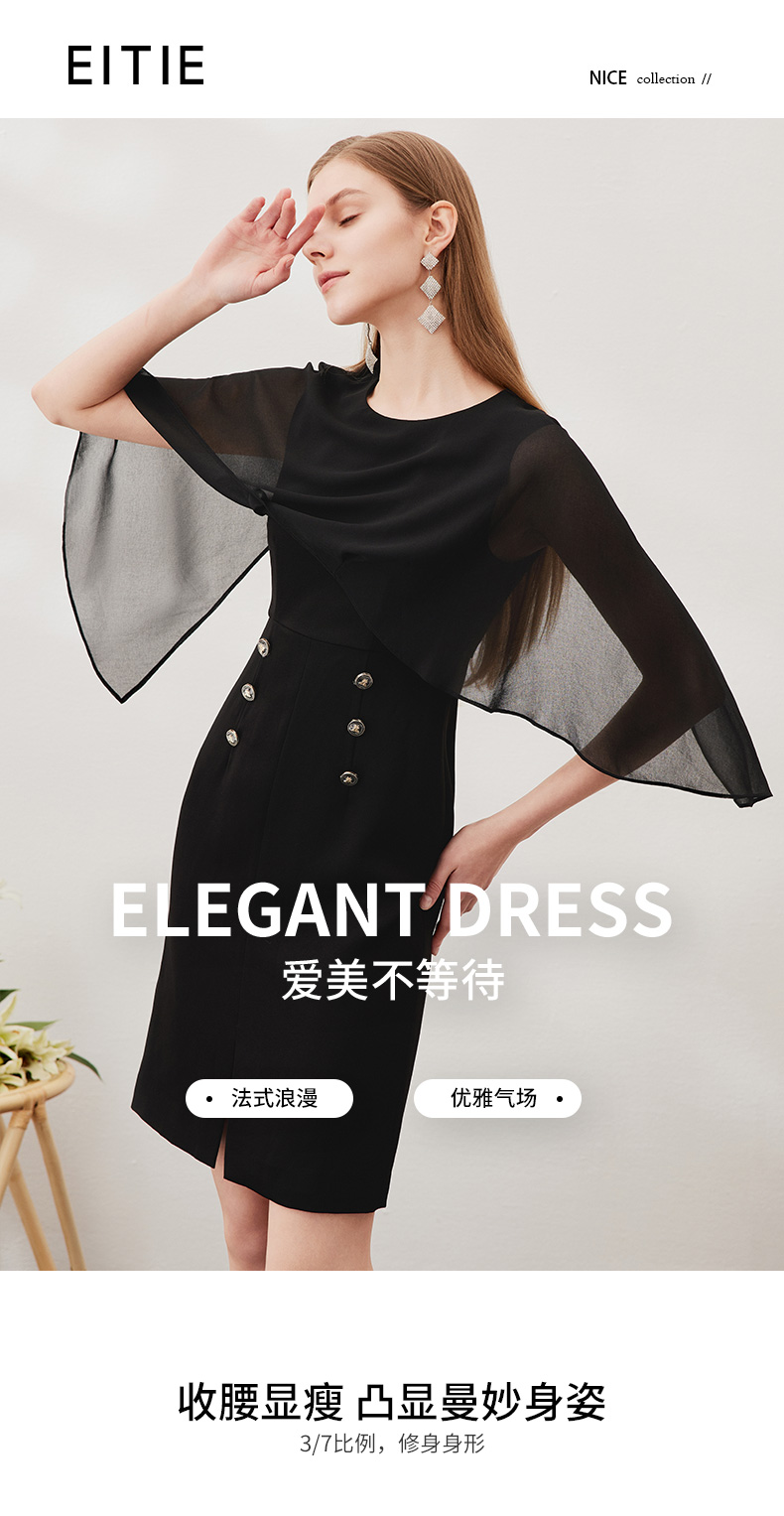 EITIE爱特爱春季新款优雅精致气质圆领蕾丝拼接连衣裙6907602