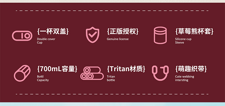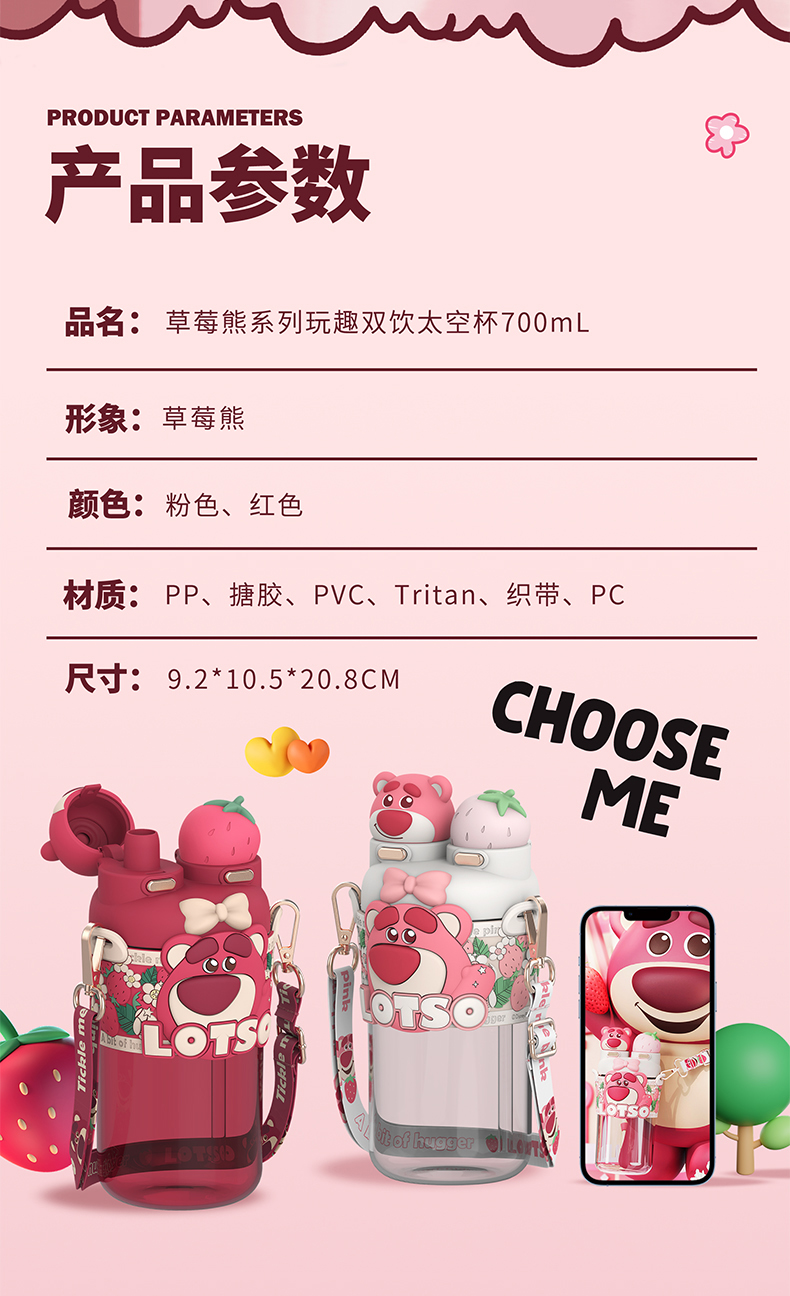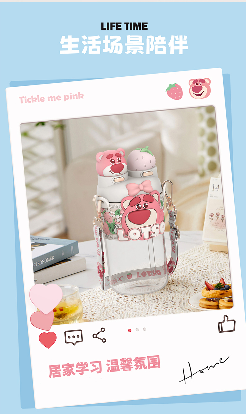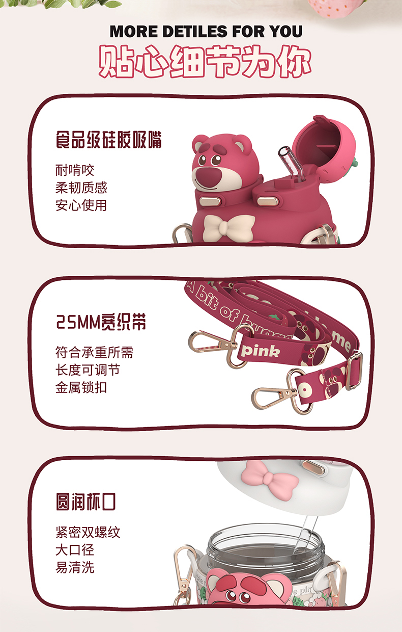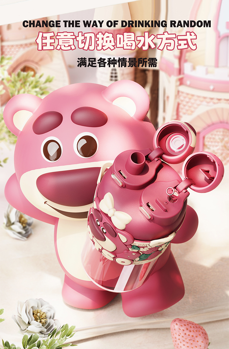 摩登主妇迪士尼草莓熊双饮杯儿童水杯上学专用水壶便携式吸管杯子