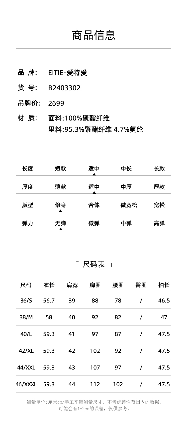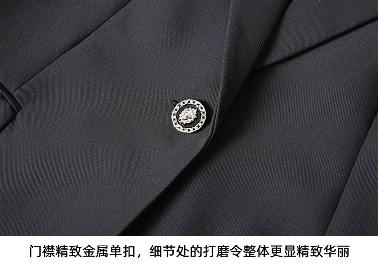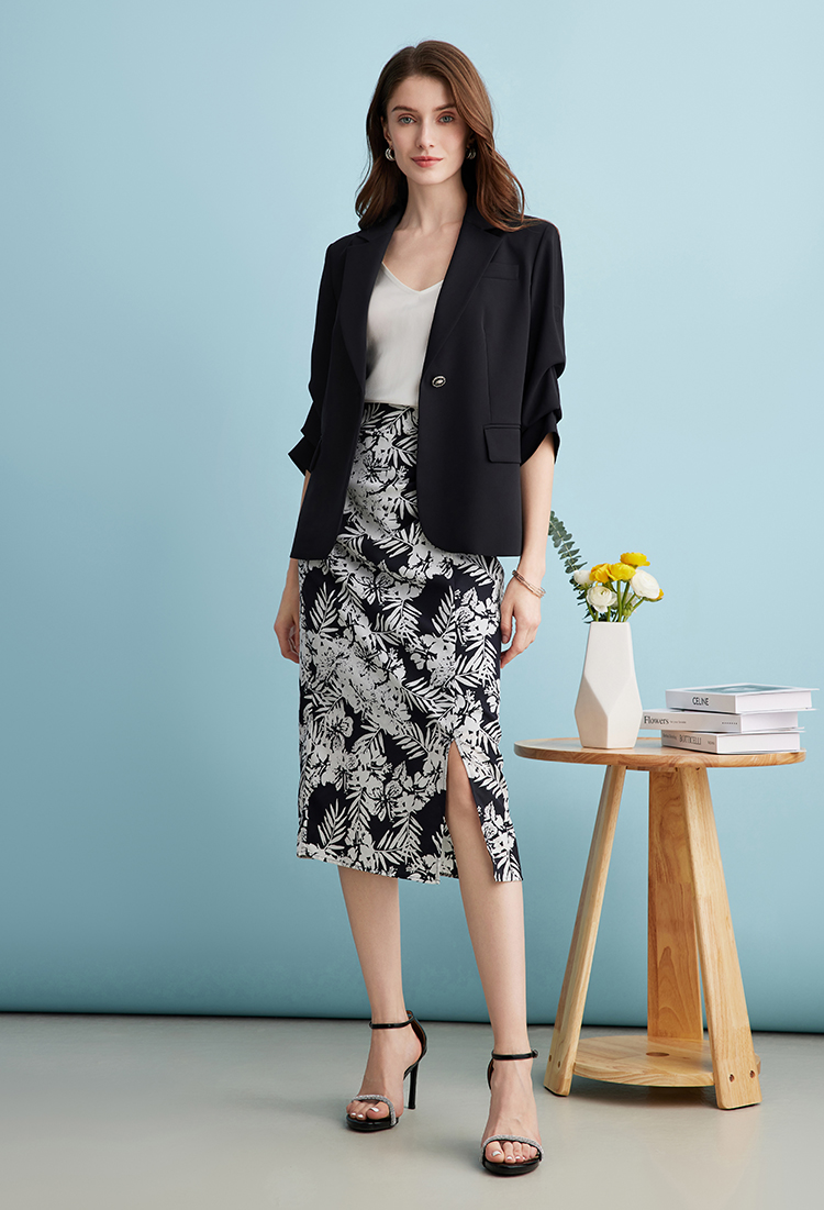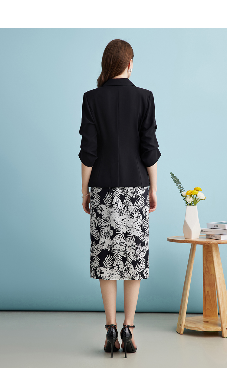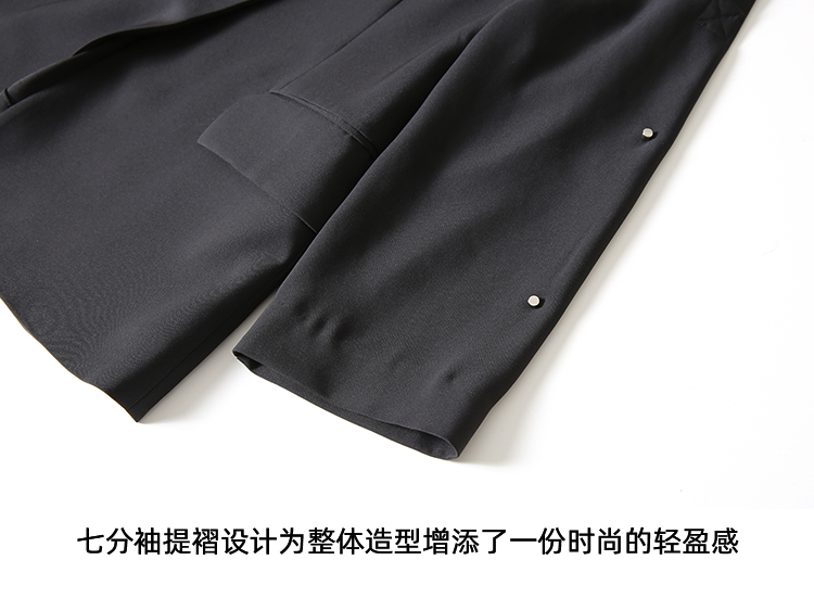 EITIE爱特爱气质干练通勤抽褶七分袖黑色修身西装外套夏新款B2403302
