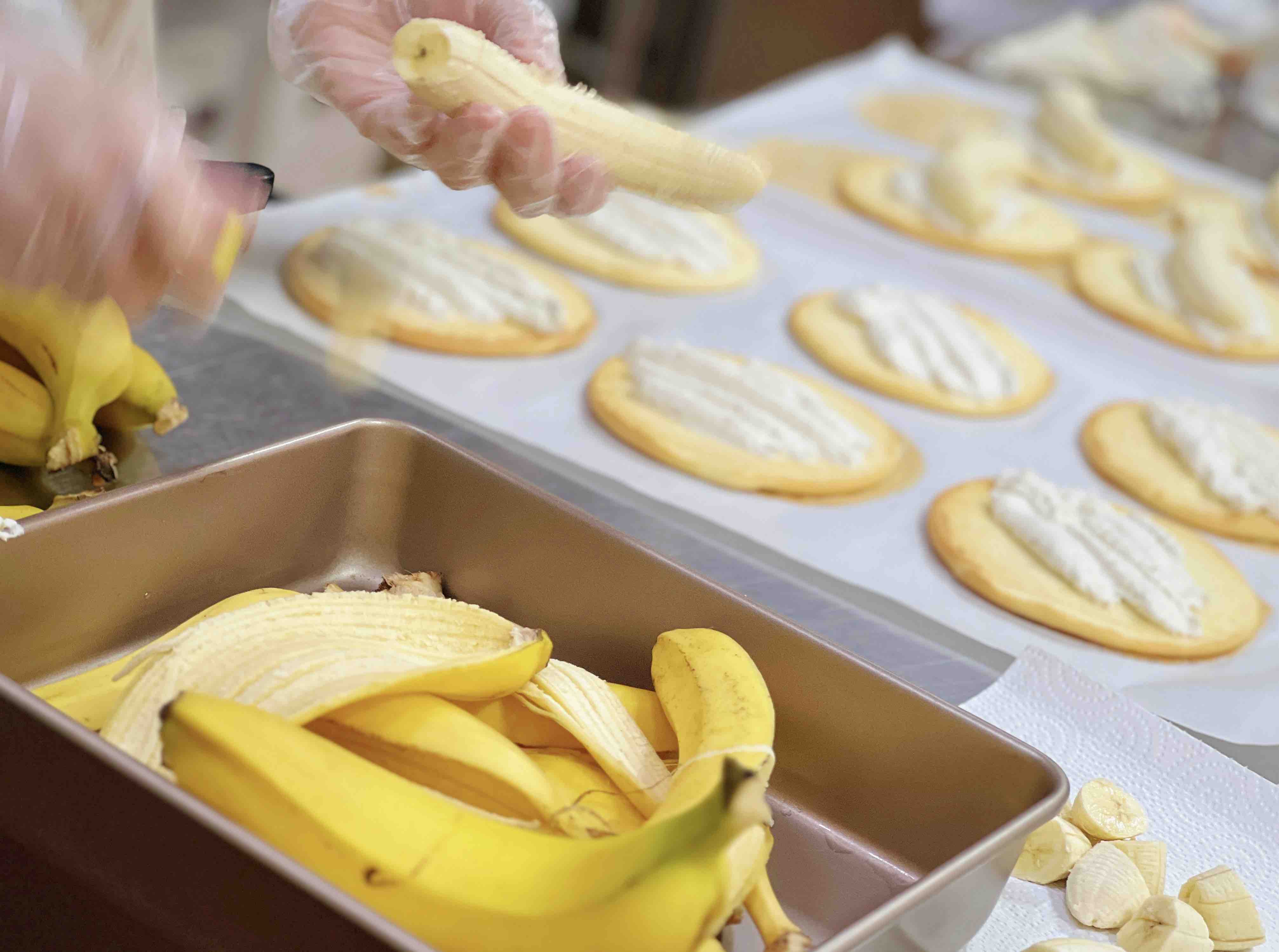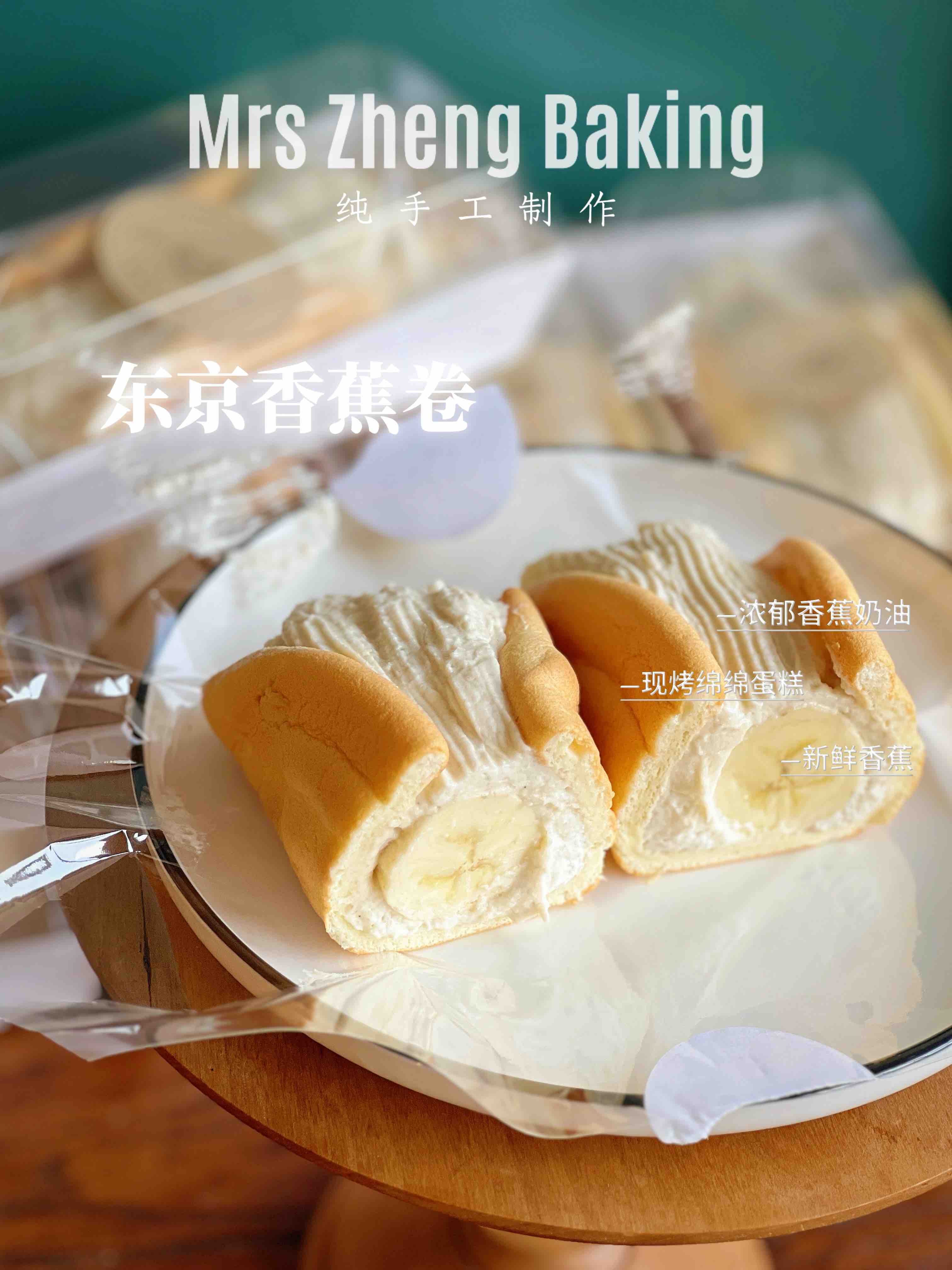 蛋糕卷的灵魂——内馅,更是独具匠心。用熟透的香蕉果肉熬煮果酱,选用优质的动物奶油,经过精心打发,翻拌,使其拥有轻盈蓬松的质地,入口即化。奶油的香甜与蛋糕的绵软完美融合,甜味清新自然,不会过于浓烈