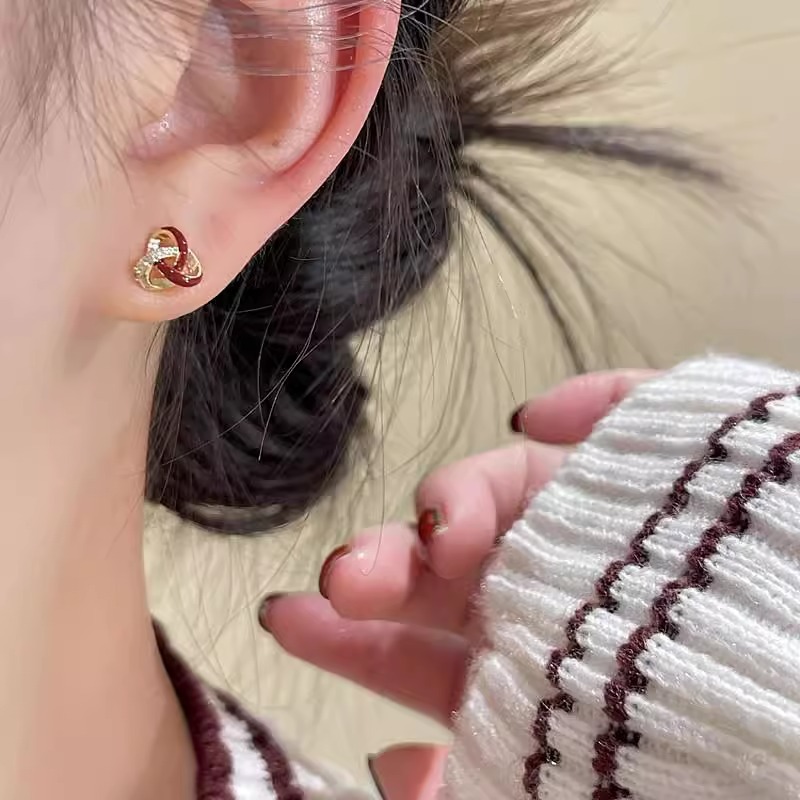 雀说银针红色三角环绕耳钉女小众设计感闪钻耳环时尚气质耳饰高级小巧AL1116