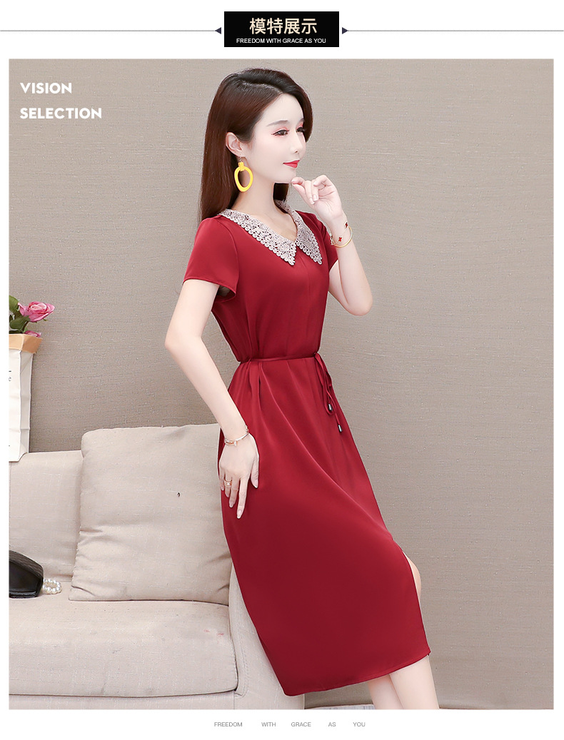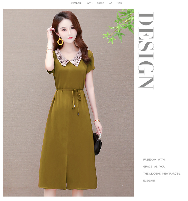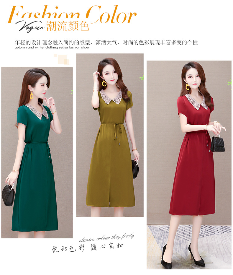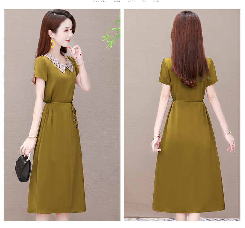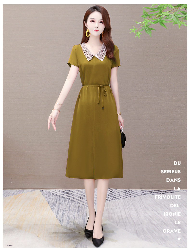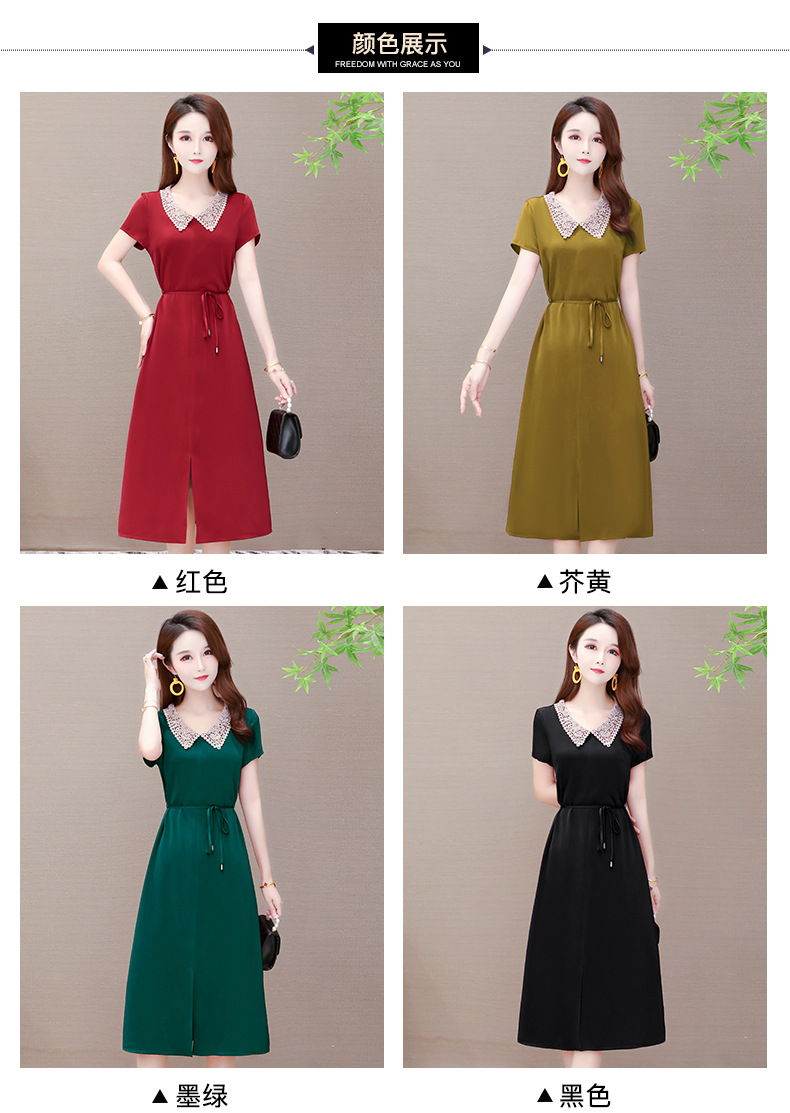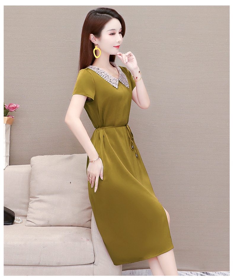 GWY-KED2036醋酸缎面中长款翻领气质通勤不规则裙子