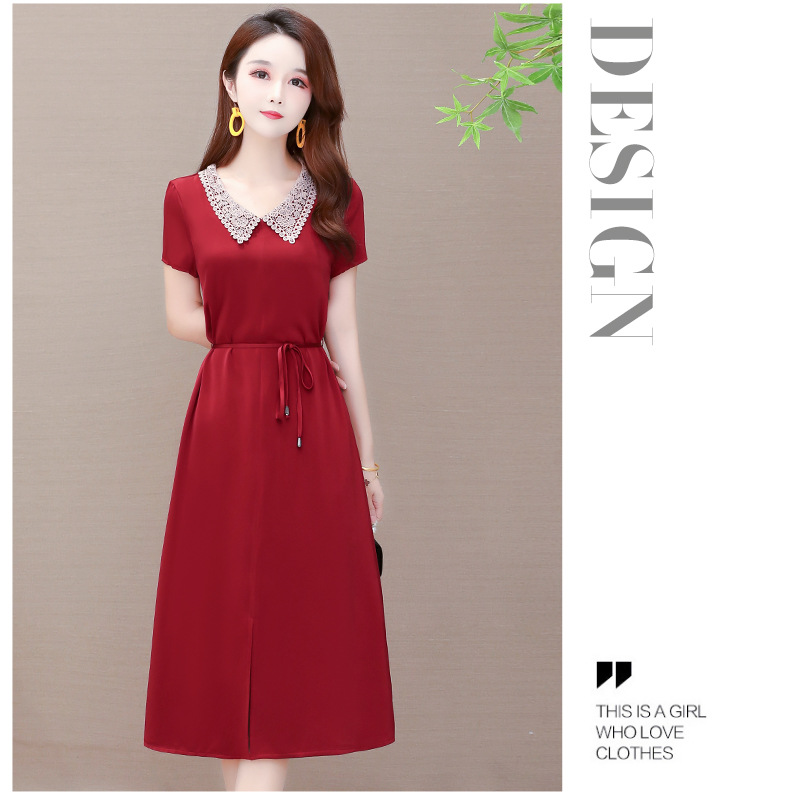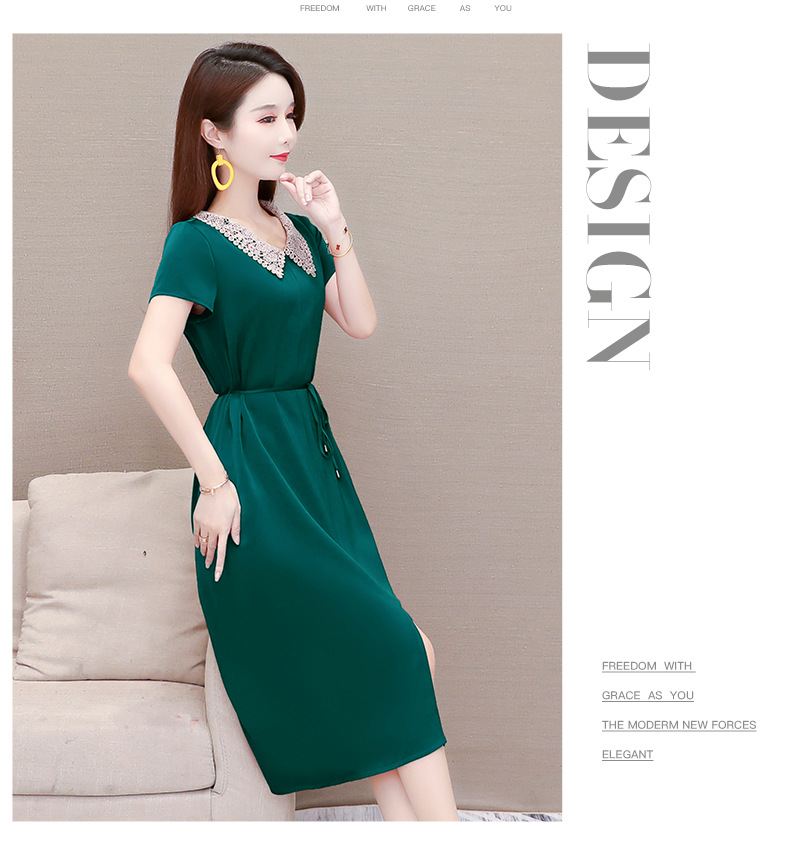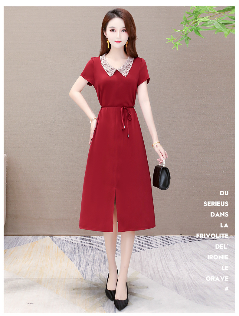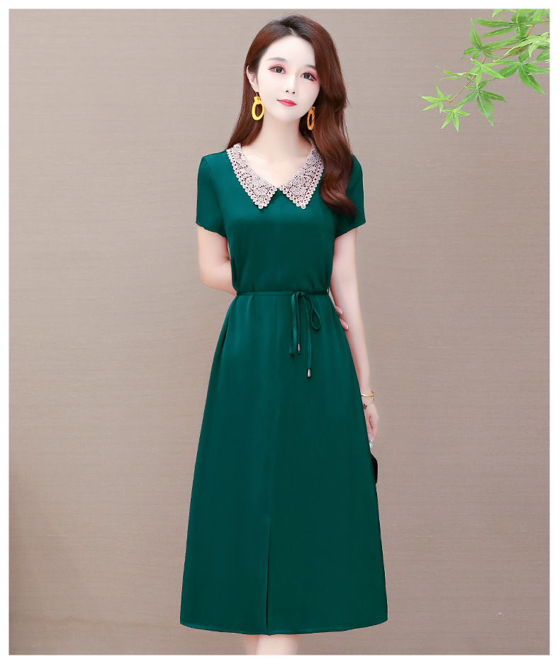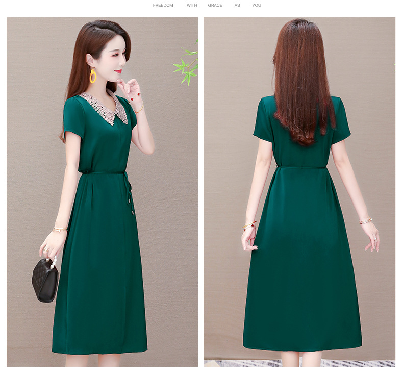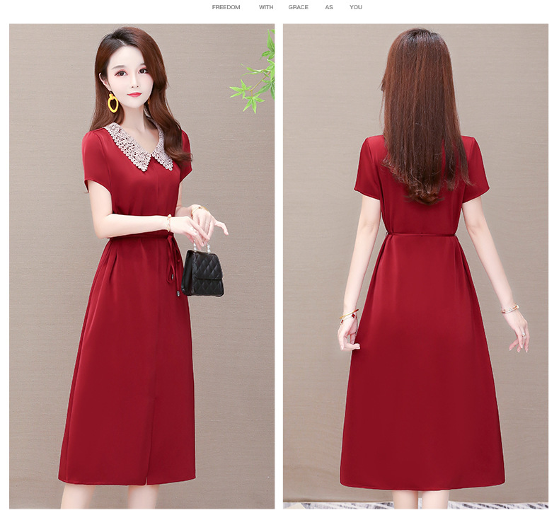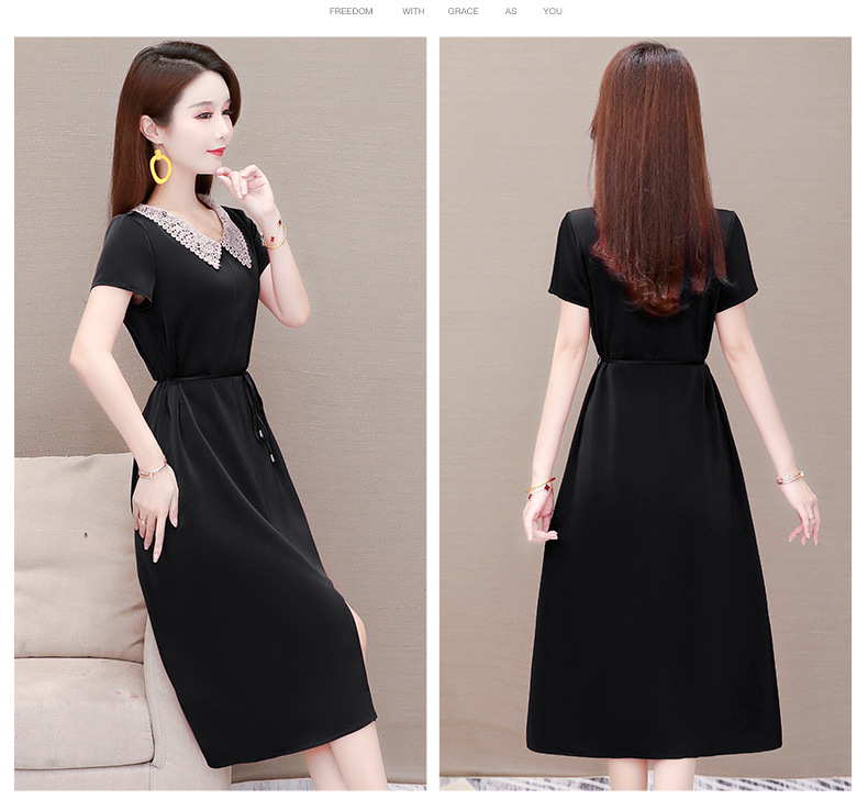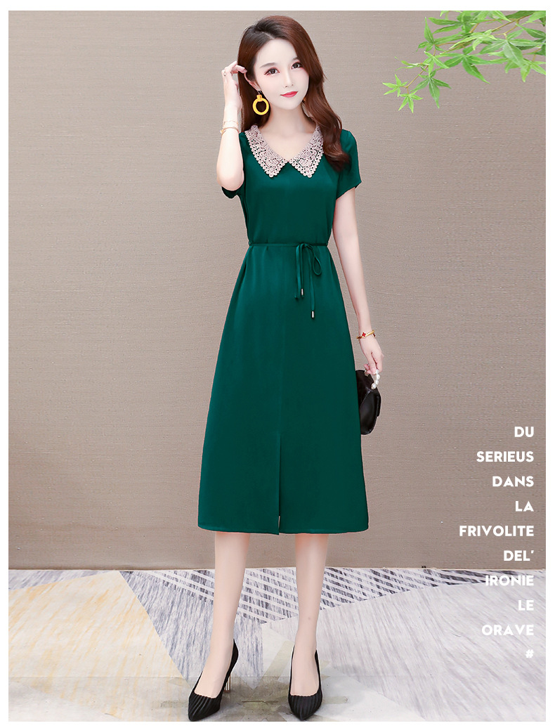 GWY-KED2036醋酸缎面中长款翻领气质通勤不规则裙子