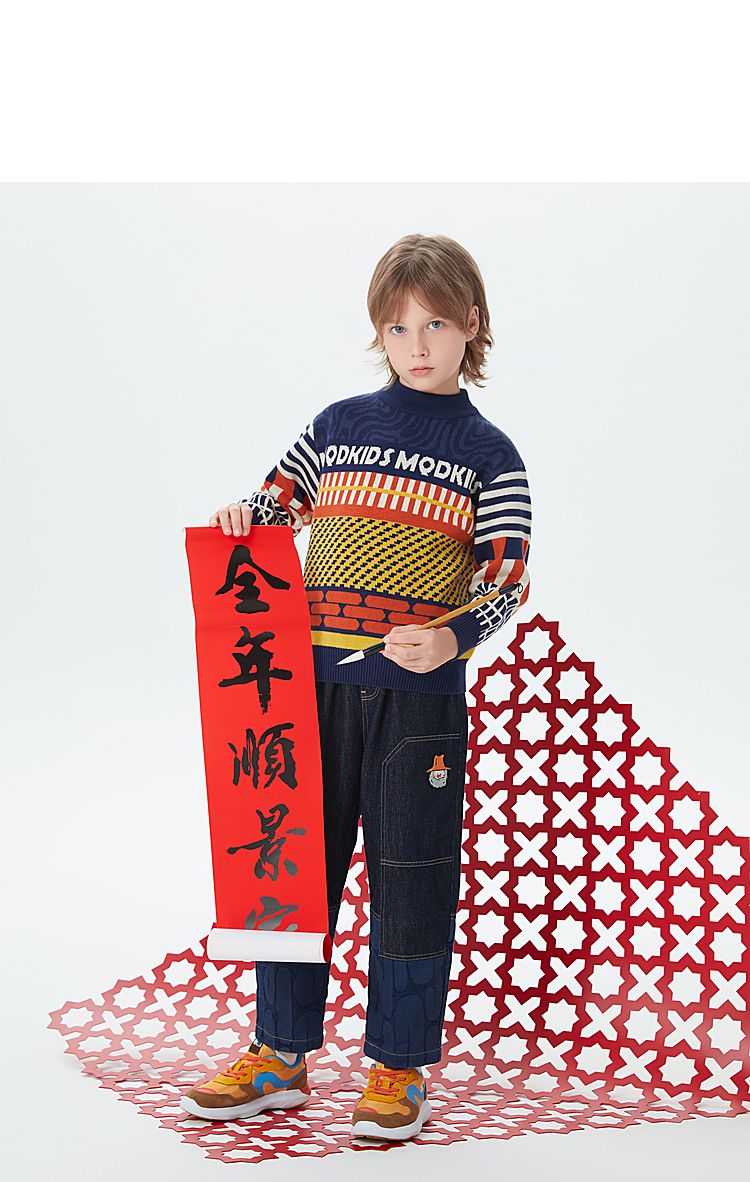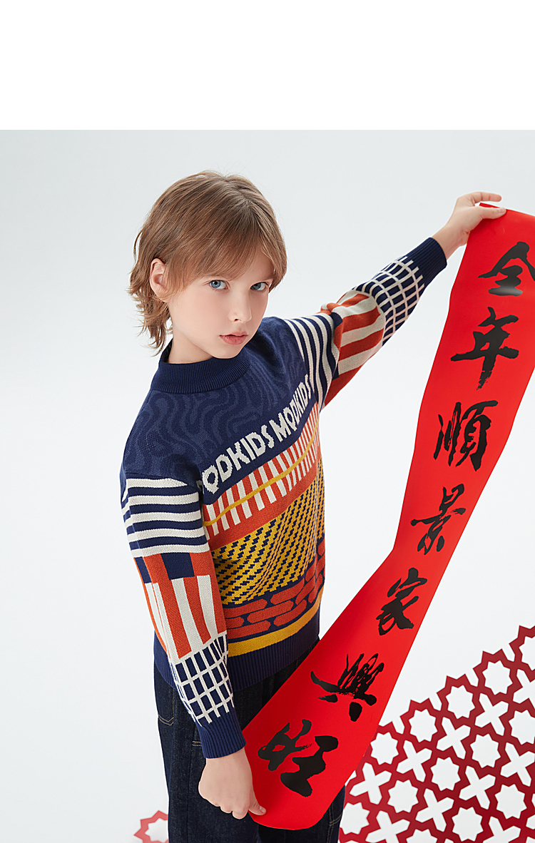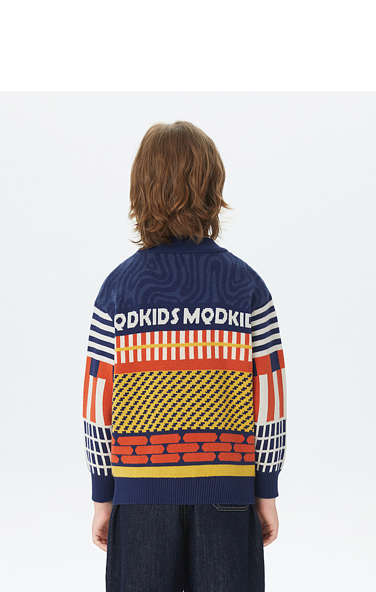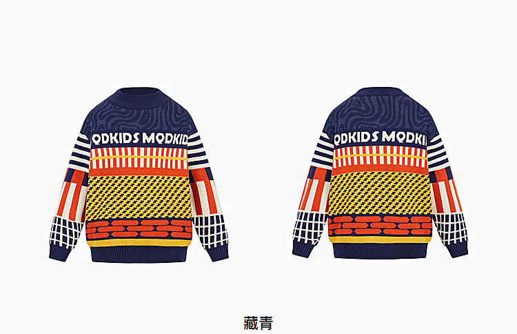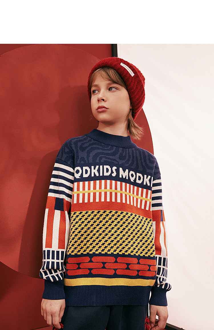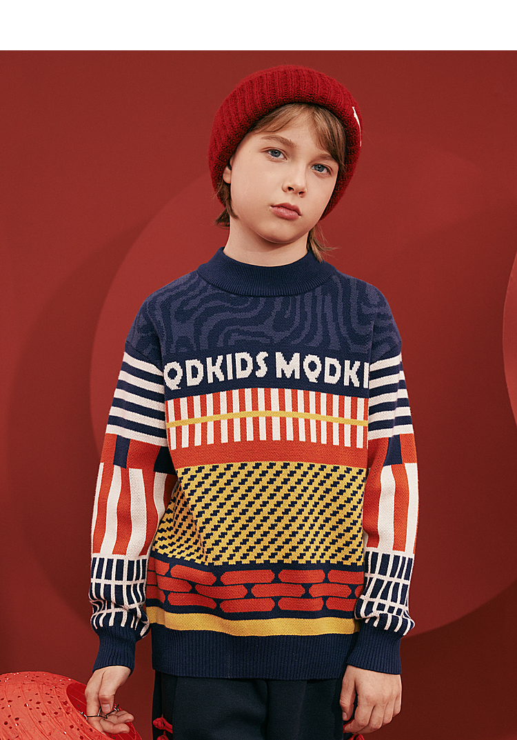 【MQD】童装男童毛衣冬季新款加厚保暖复古半高领撞色儿童针织衫