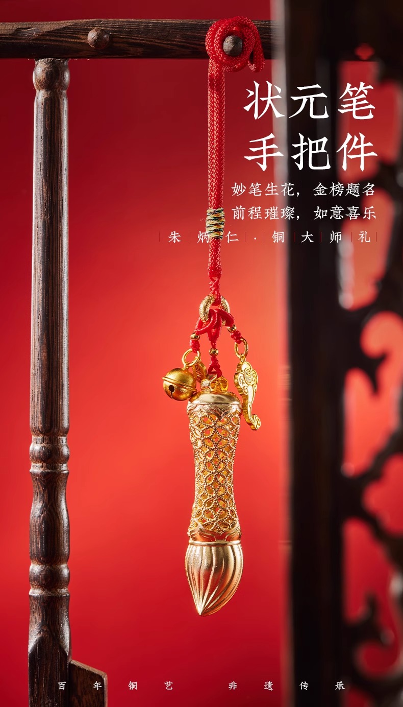 朱炳仁铜 步步登荣状元笔挂件