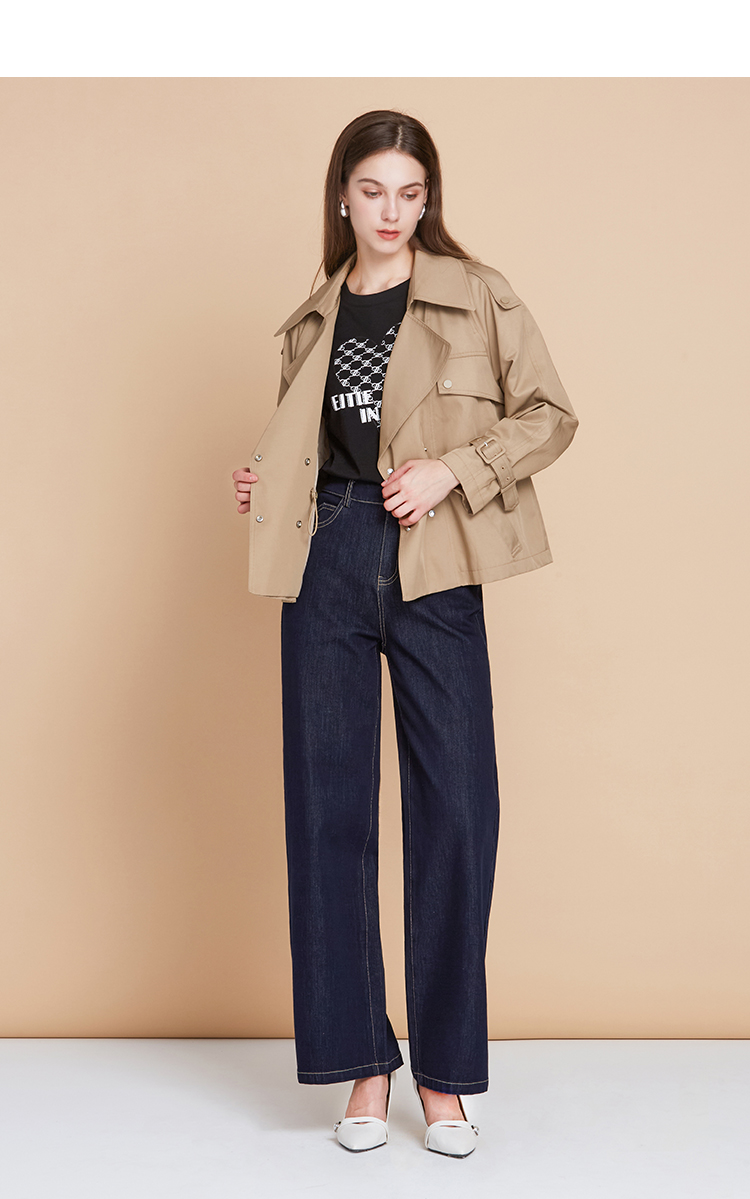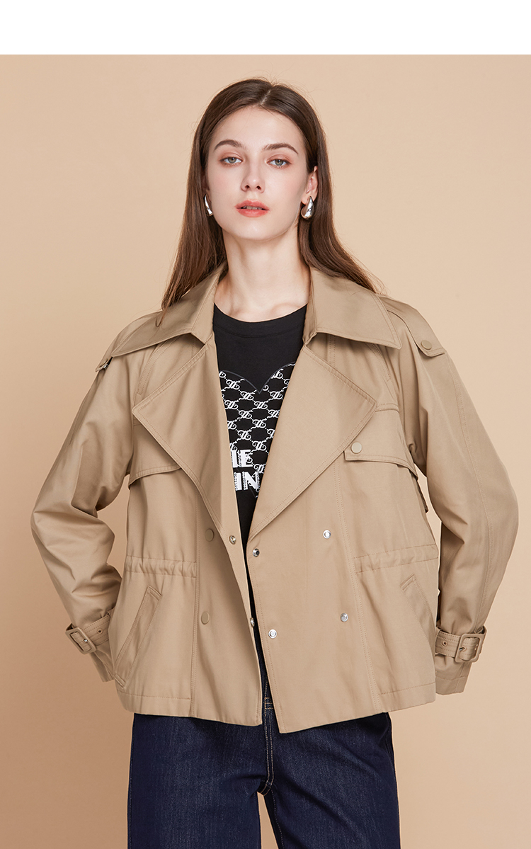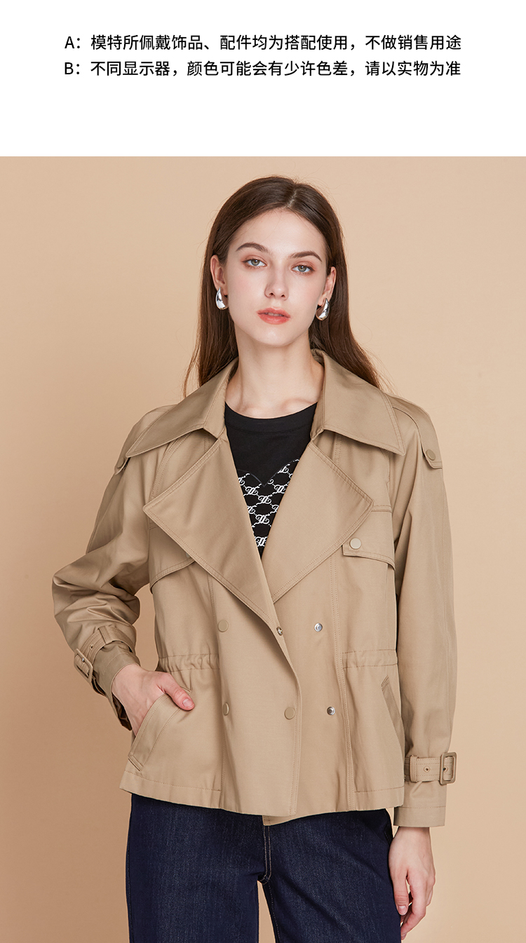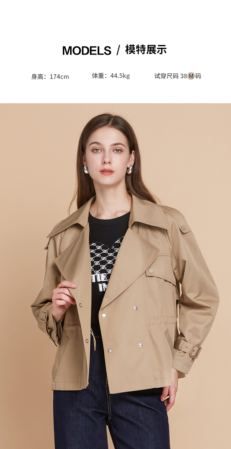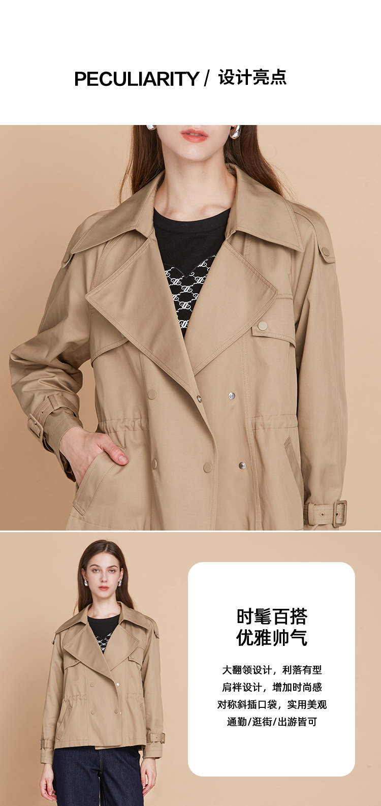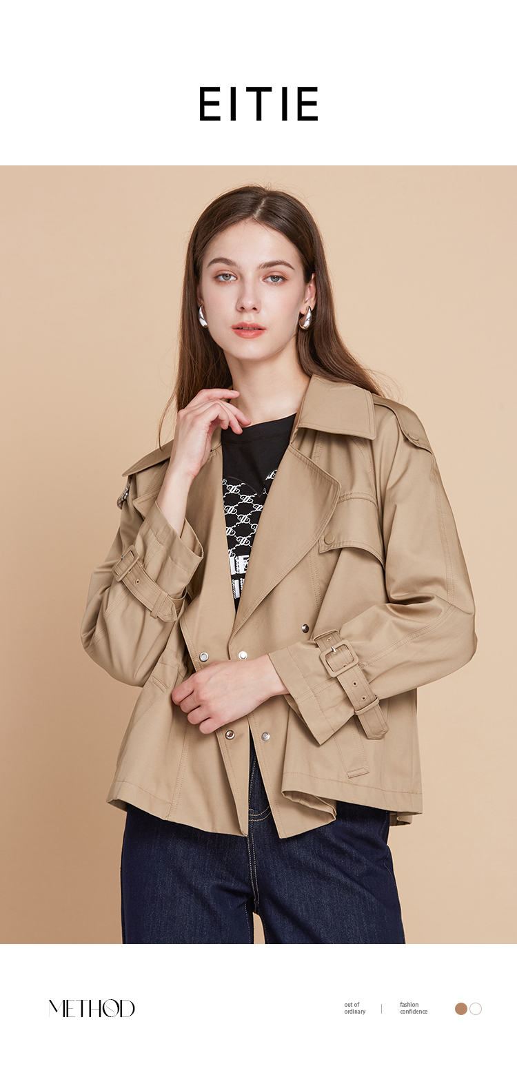 EITIE爱特爱收腰气质通勤短款显瘦风衣外套秋季新款7904605