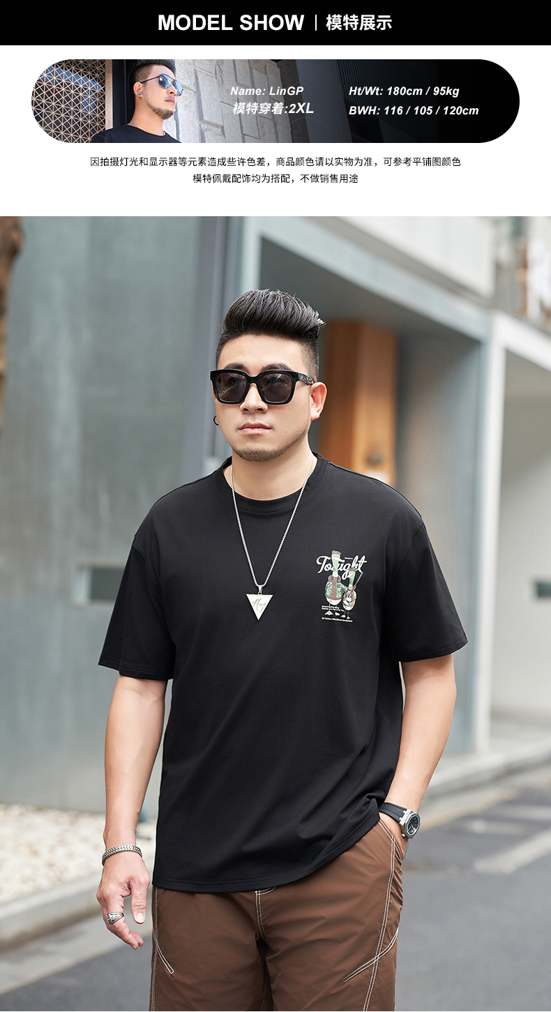【新款DMH】大依优型大码男装圆领短袖T恤加肥加大休闲肥佬男上衣夏季半袖胖子潮款