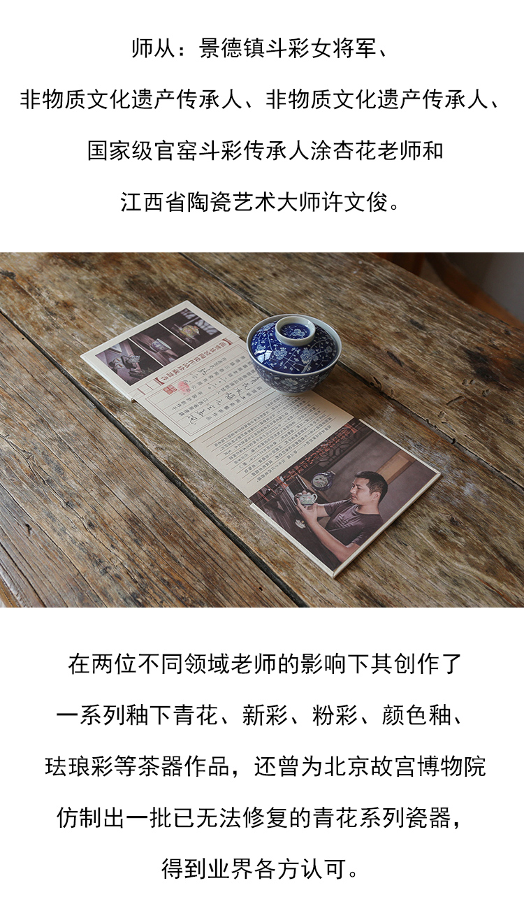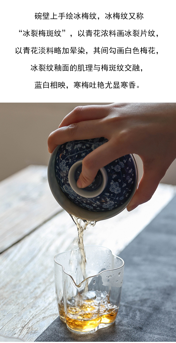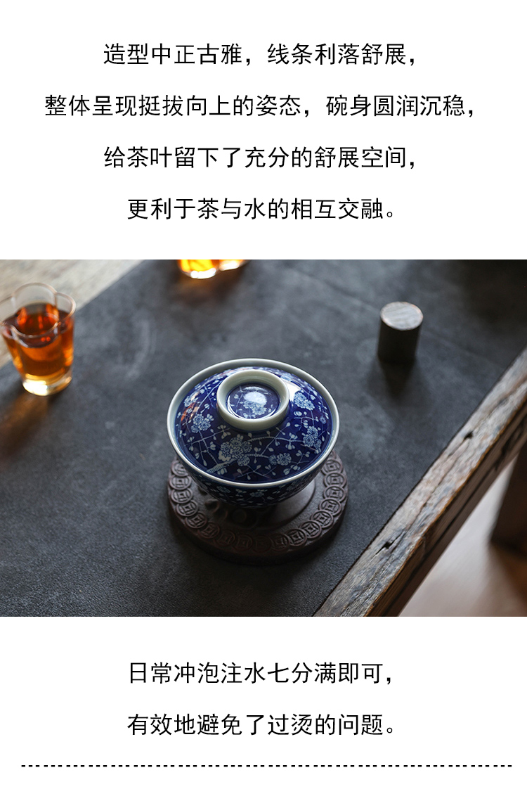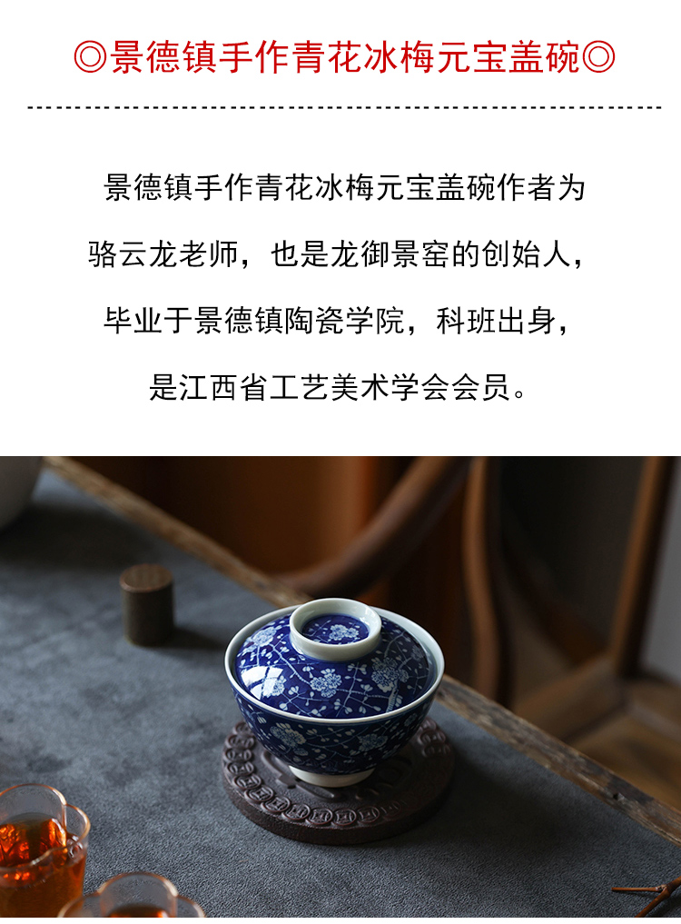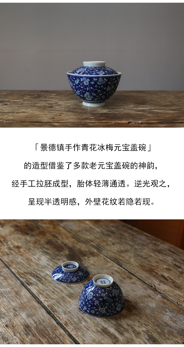 茶香记 景德镇手作青花冰梅元宝盖碗200ml陶瓷青花泡茶碗功夫茶具