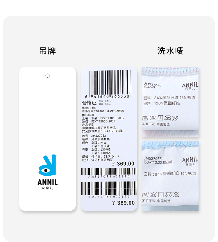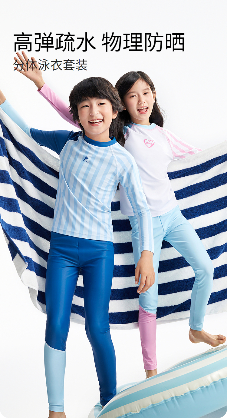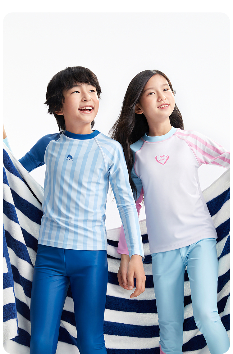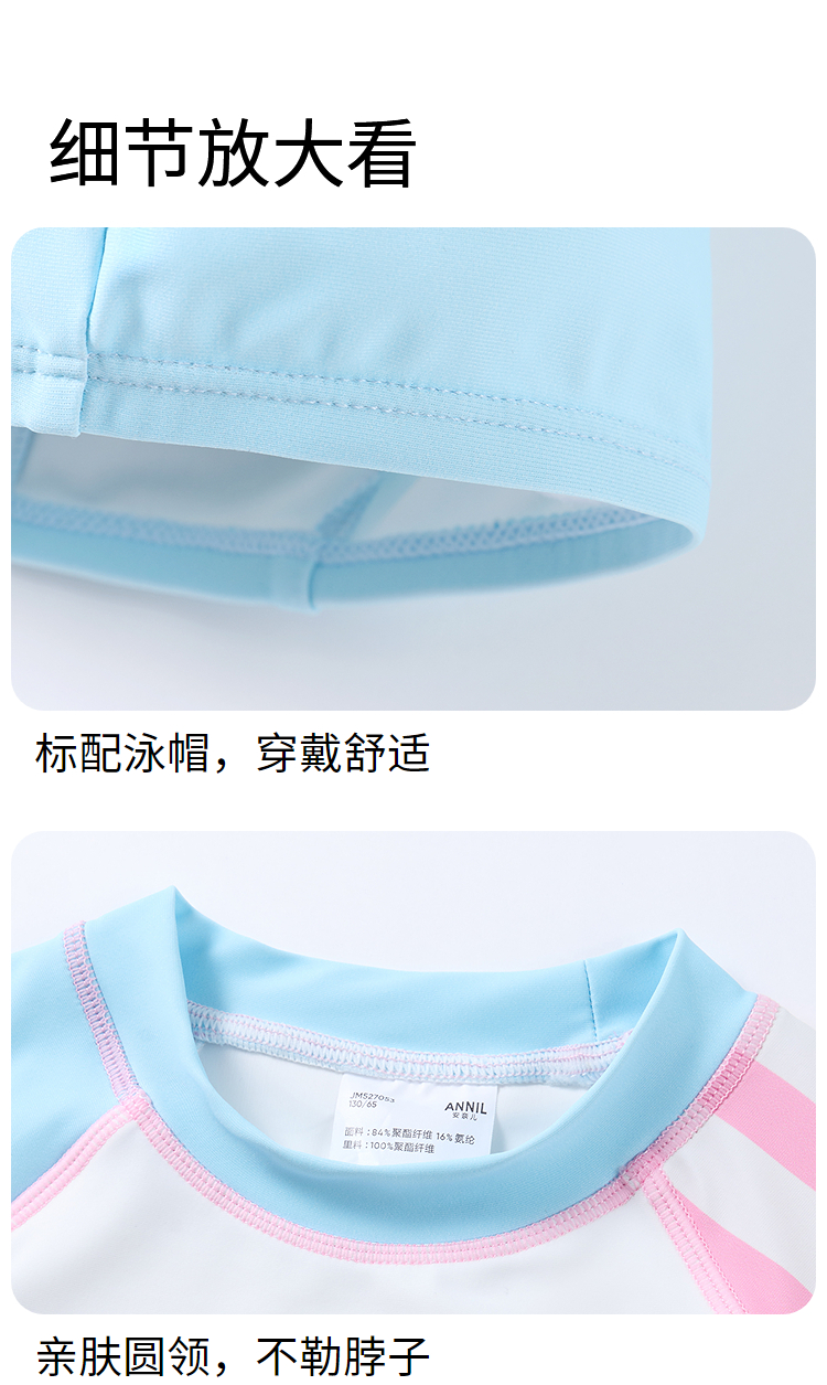男女童分体长袖泳衣套装夏季新款安奈儿童装JM527053