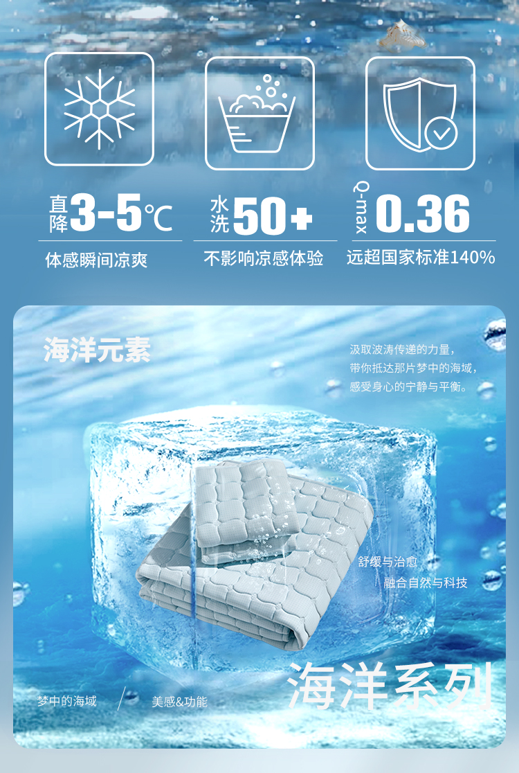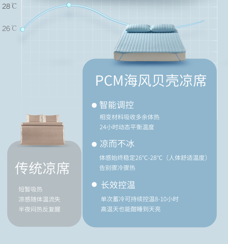 【海风凉感面料 接触瞬间导热降温】一默海风贝壳凉席 控温单元格嵌入 持续凉感在线