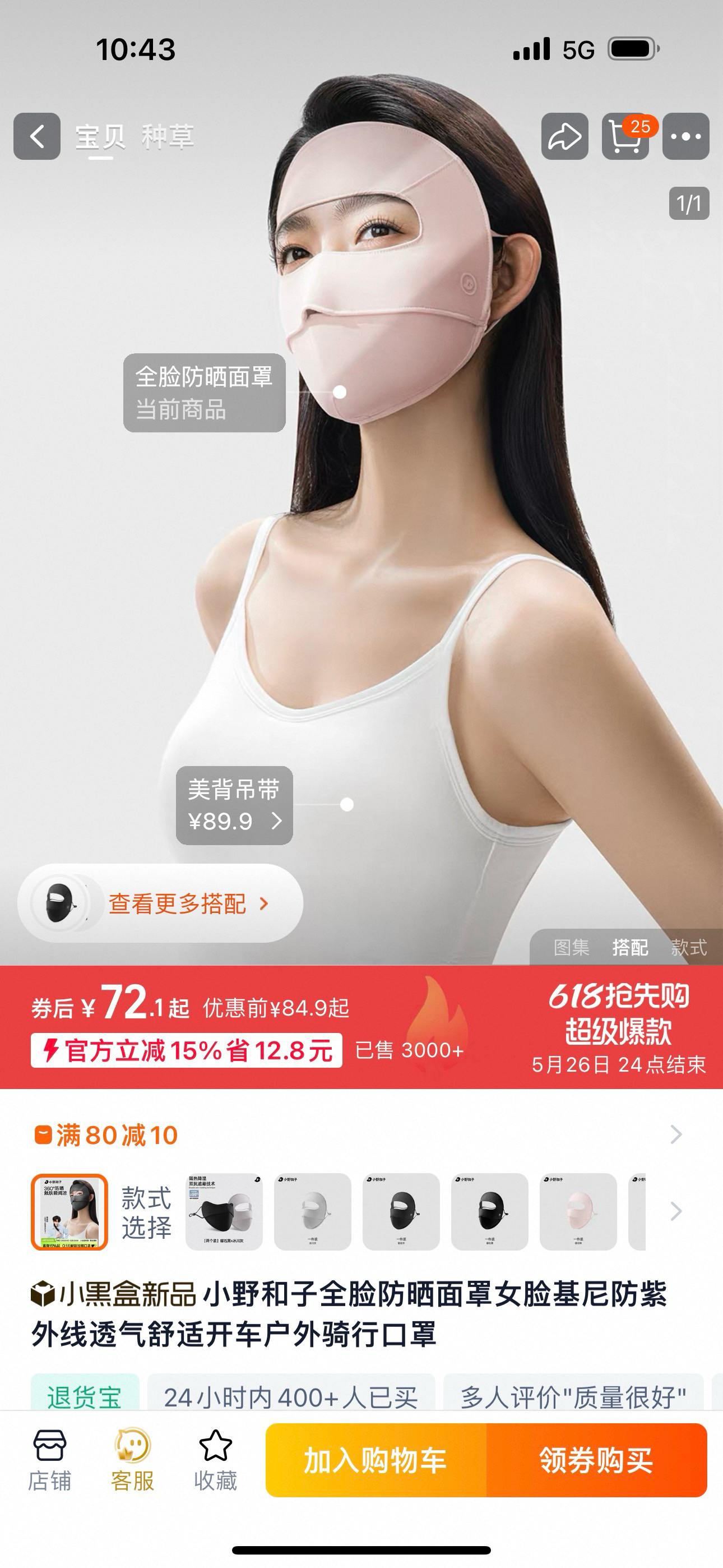 小野和子防晒面基尼,全脸防护脸基尼春夏防紫外线户外防风全包脸透气口罩