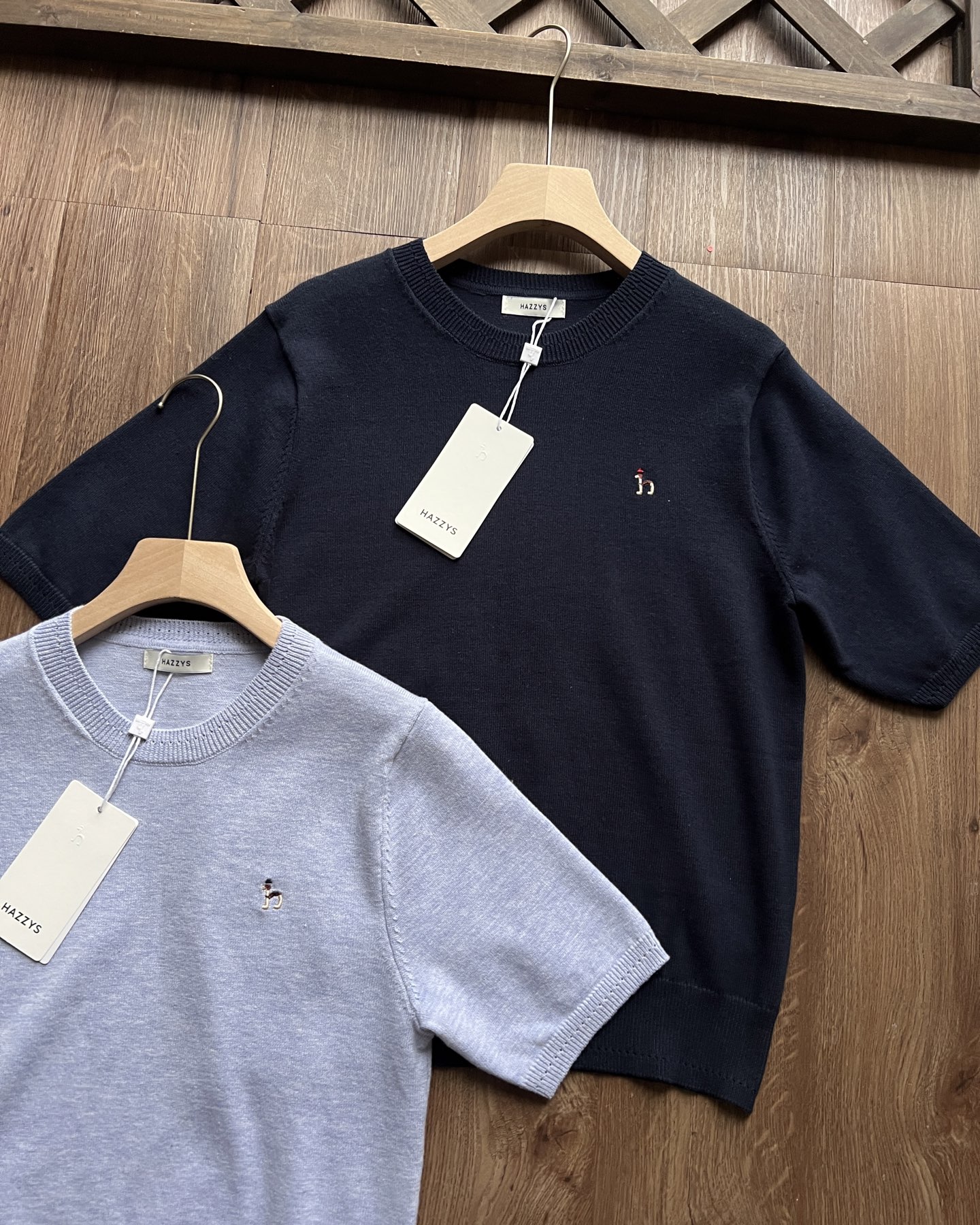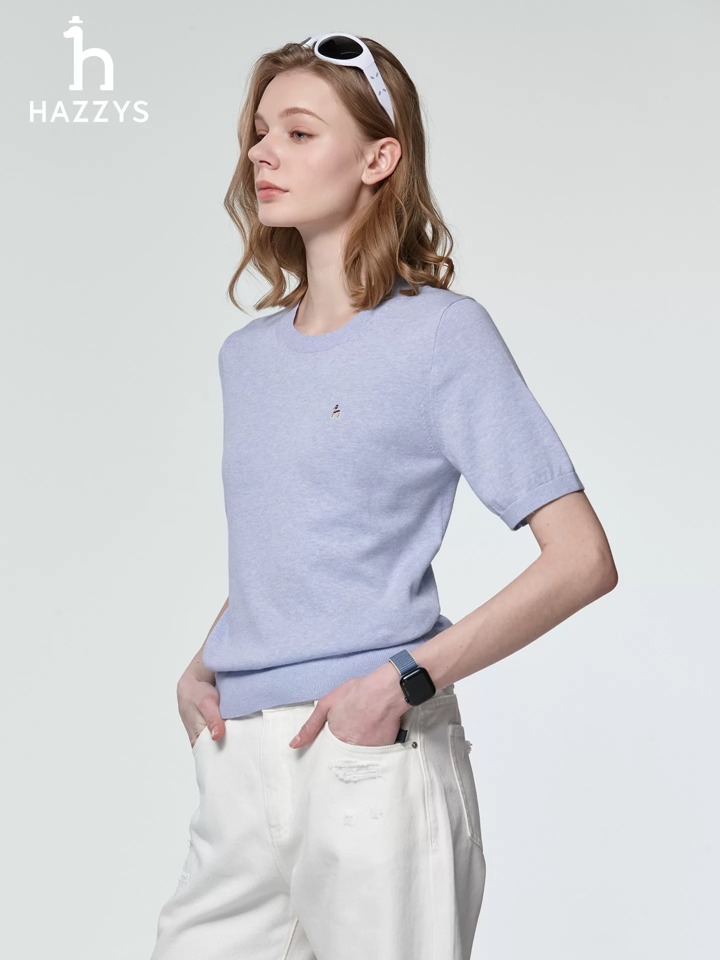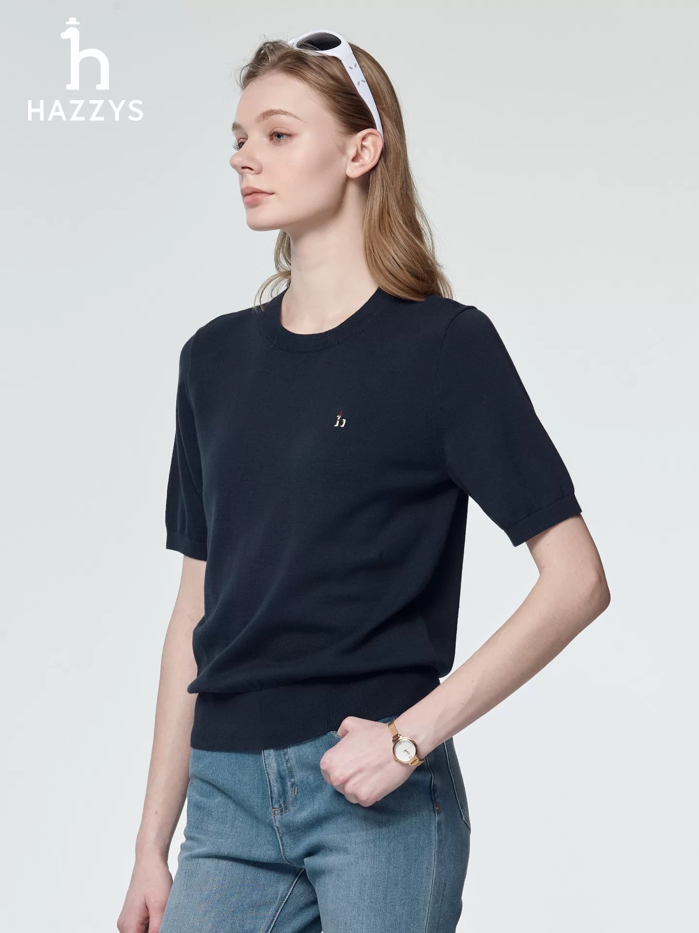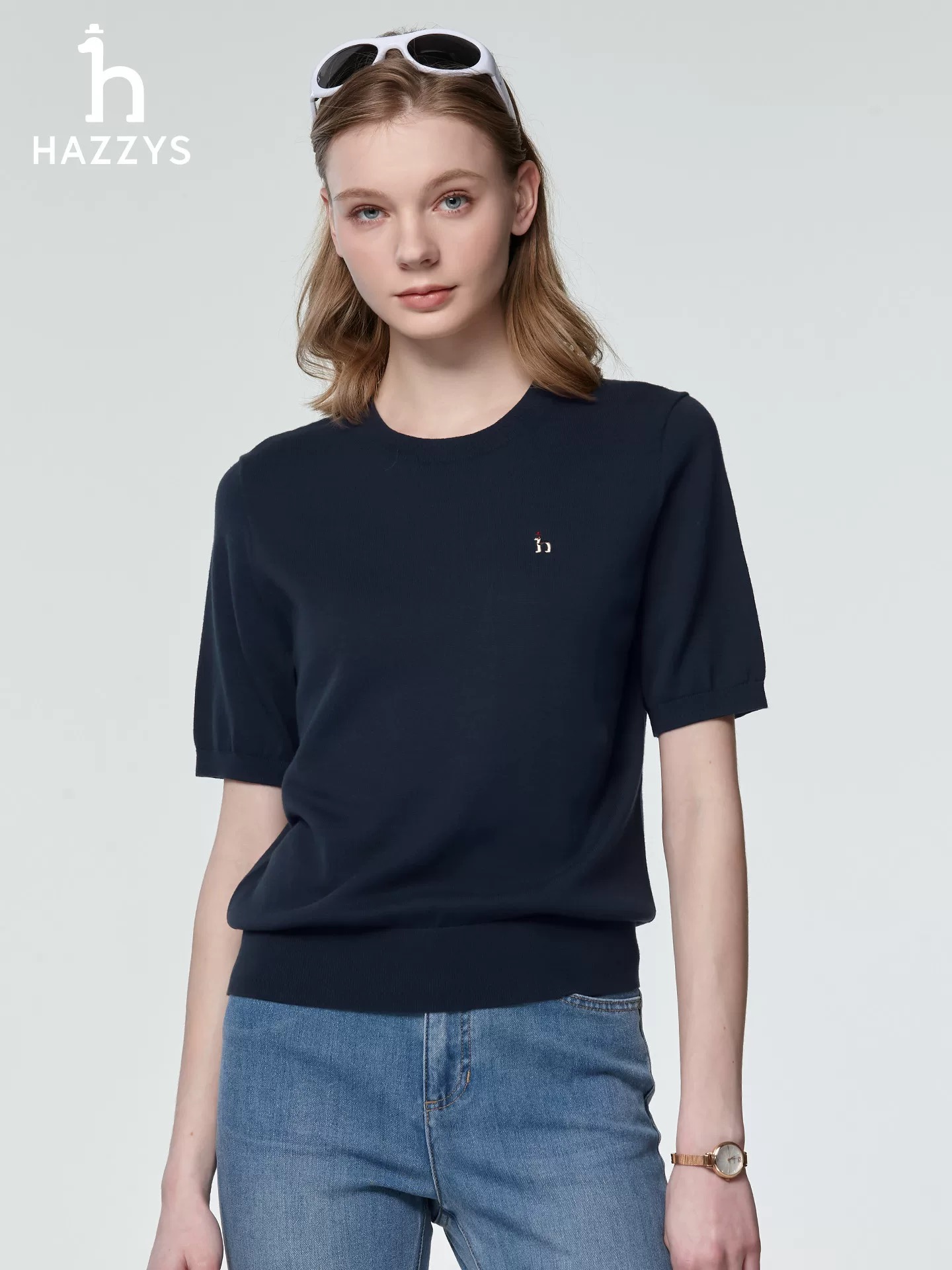 130 货号115782130 xj Hazzys哈吉斯短袖针织衫女士春季时尚休闲通勤打底衫圆领套头上衣