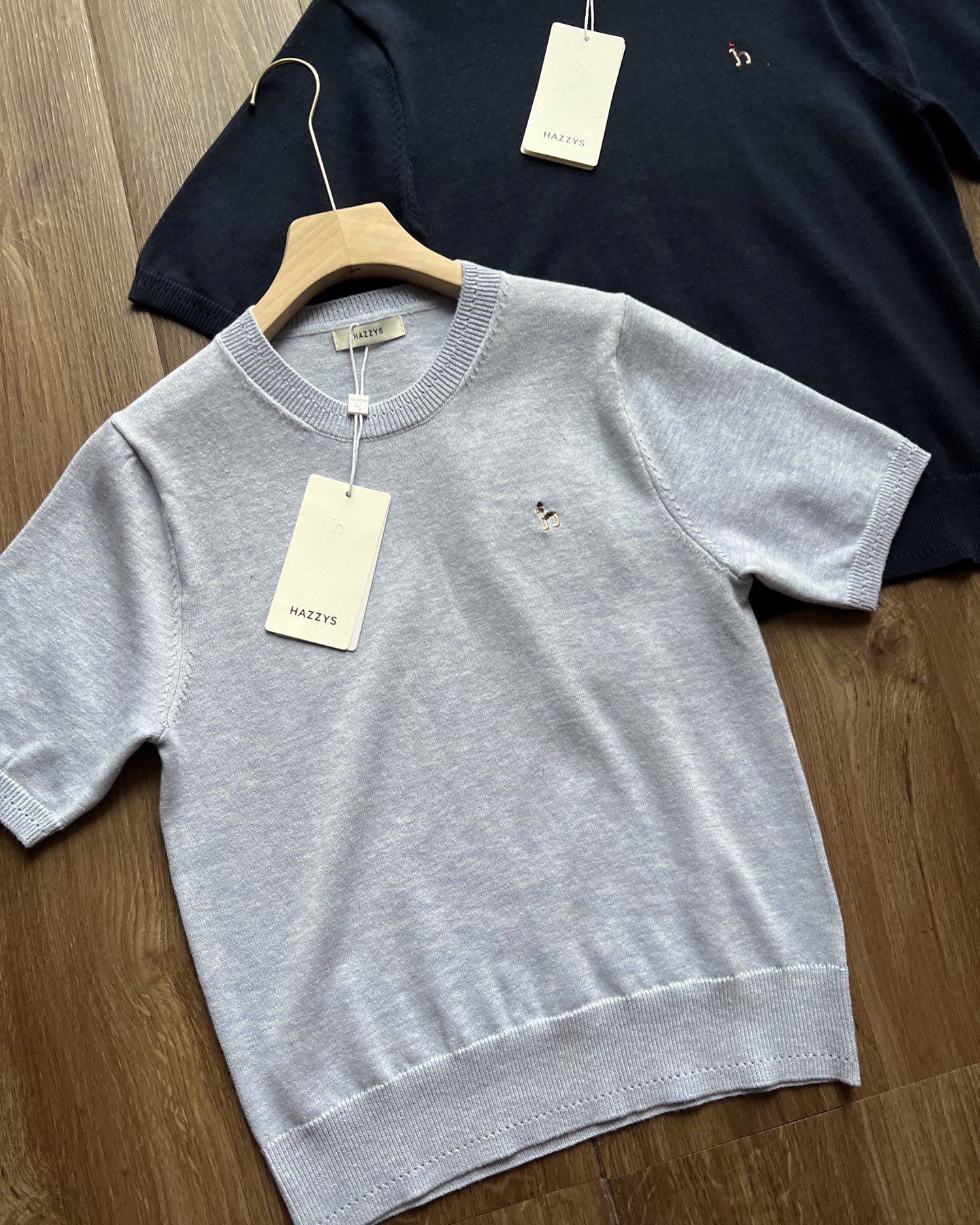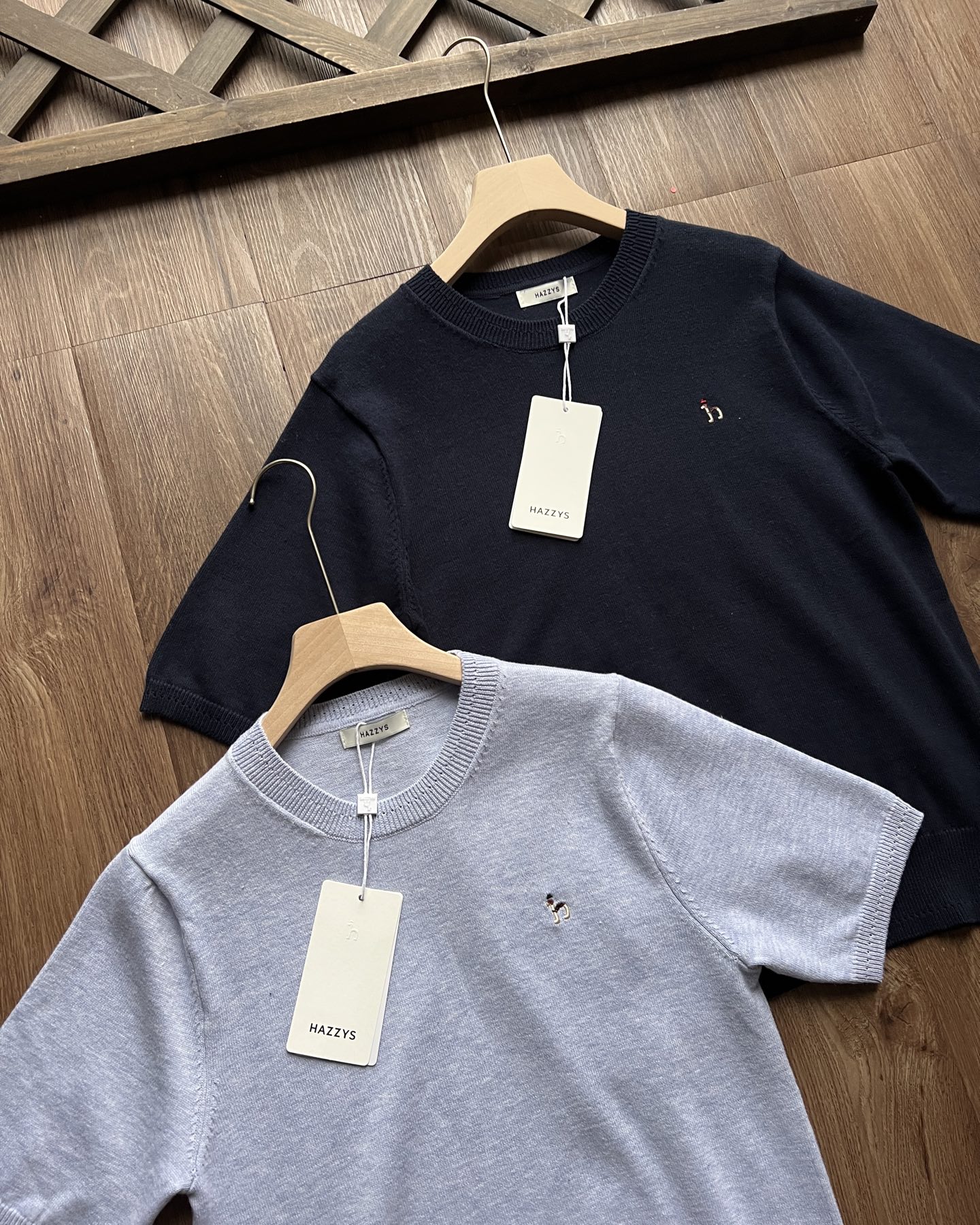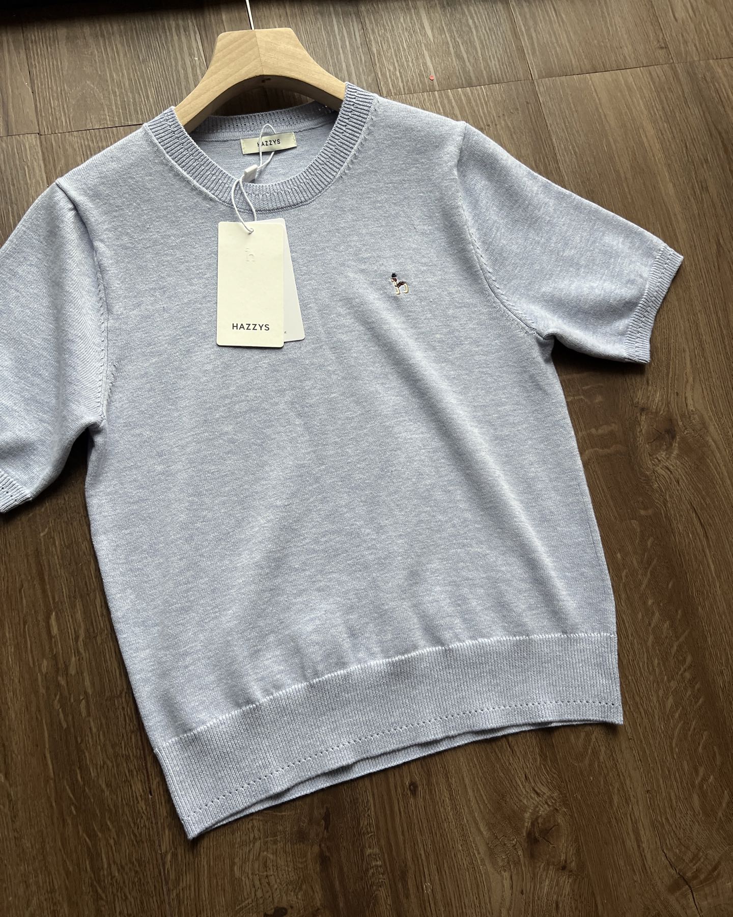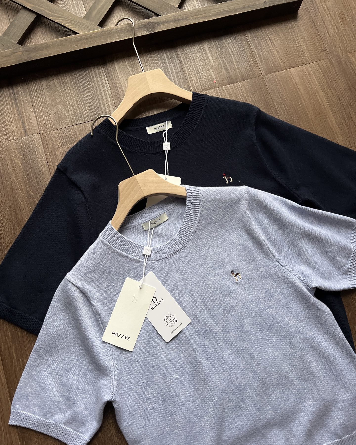 130 货号115782130 xj Hazzys哈吉斯短袖针织衫女士春季时尚休闲通勤打底衫圆领套头上衣