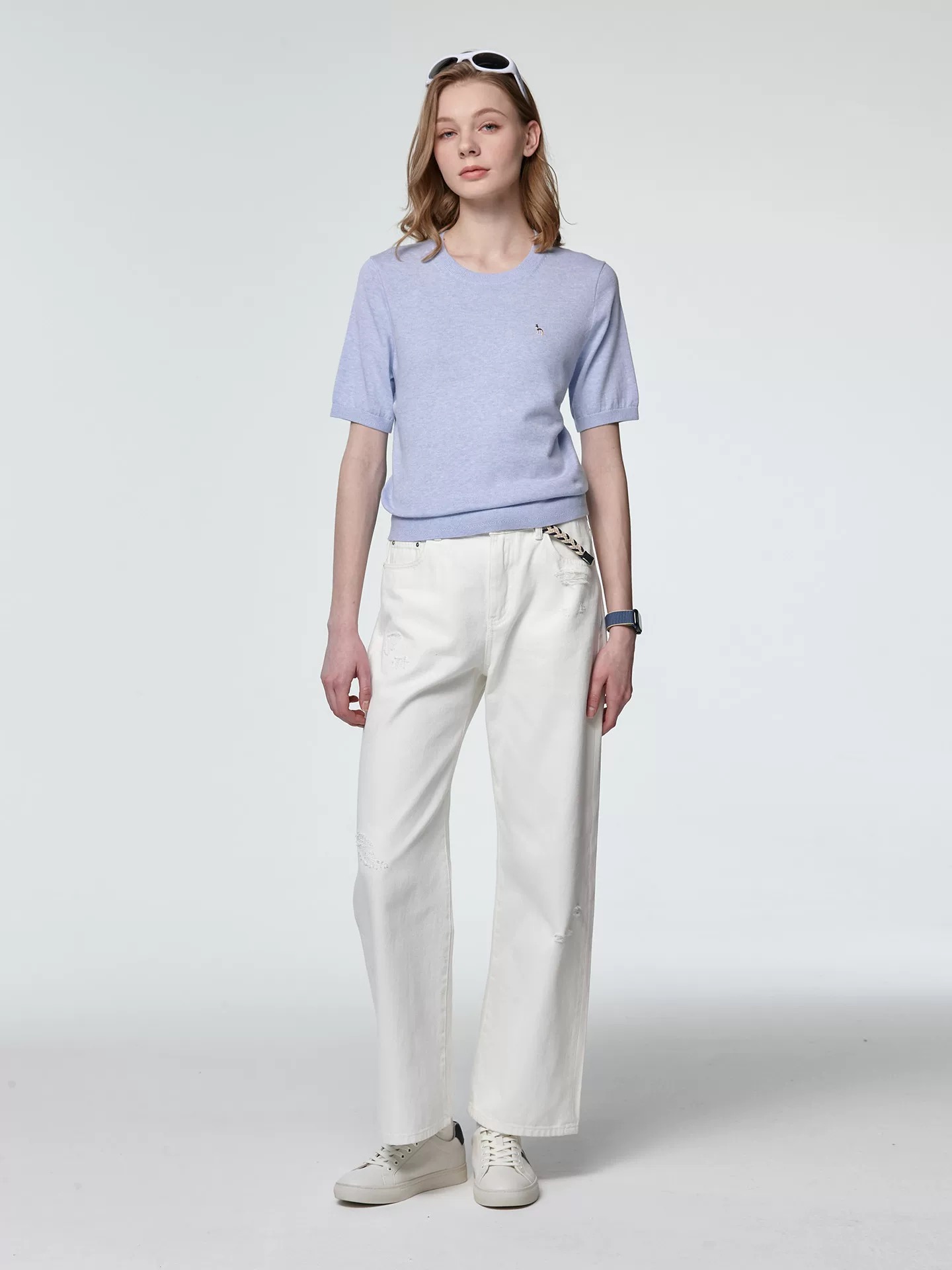 点此购买 哈吉斯女士春季时尚休闲通勤打底圆领短袖针织衫 xj 343638