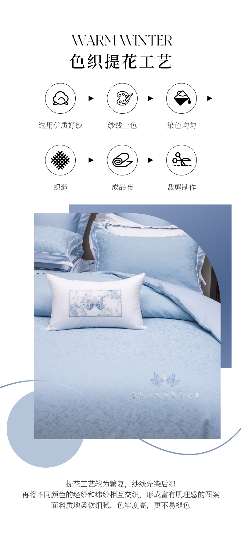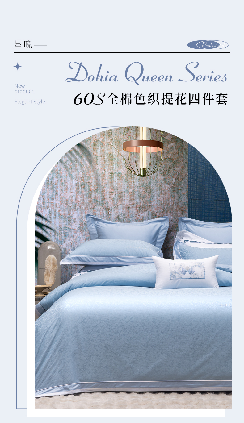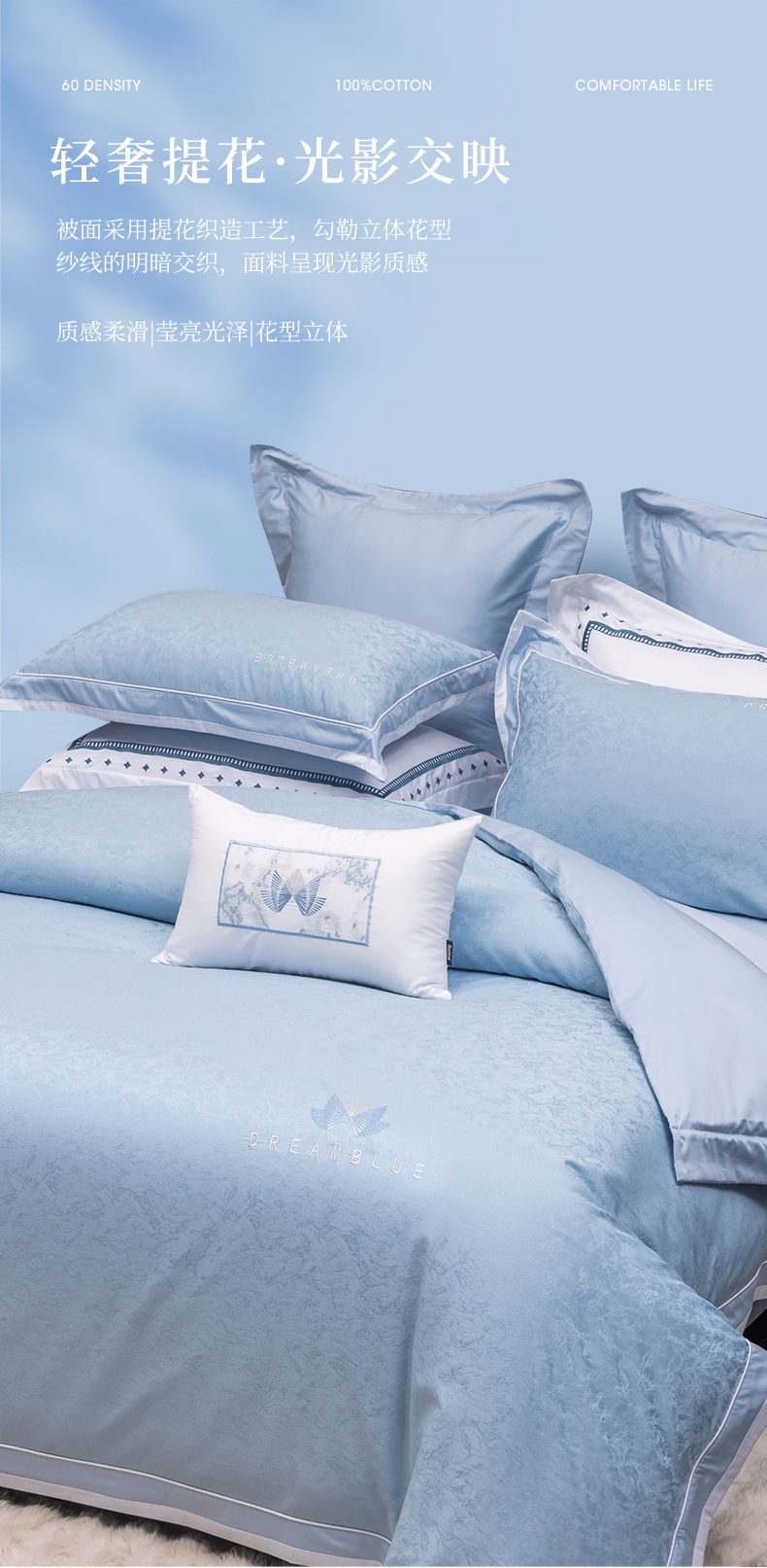 多喜爱 60S全棉色织提花四件套 星晚【绣花工艺】【礼盒包装】60S新绒棉 静谧·星空蓝 高支高密 轻奢提花