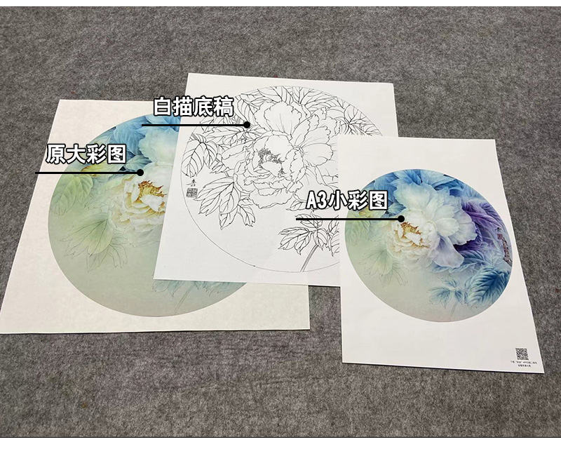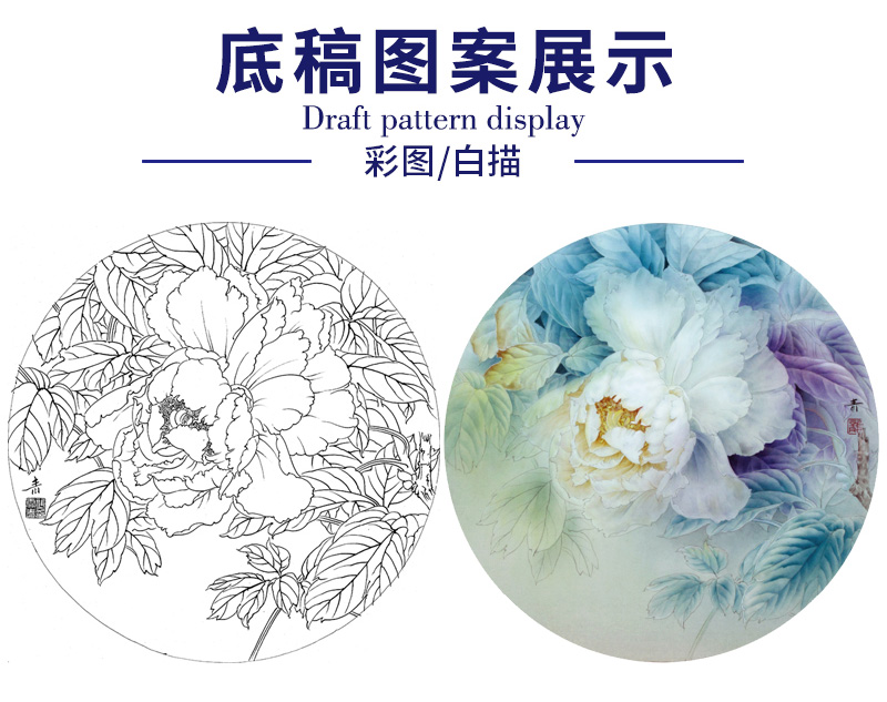 【大彩图】龚雪青工笔画白描底稿圆形小品《妃之三》牡丹临摹勾线花鸟线稿XQ16