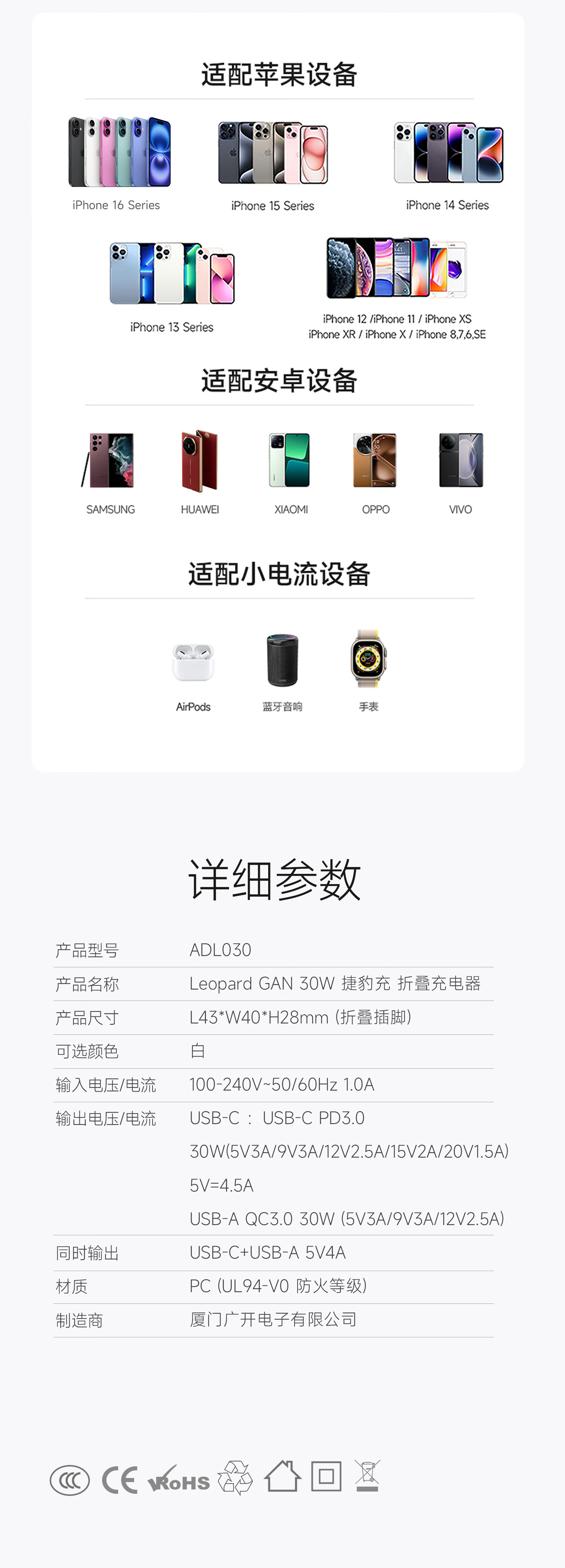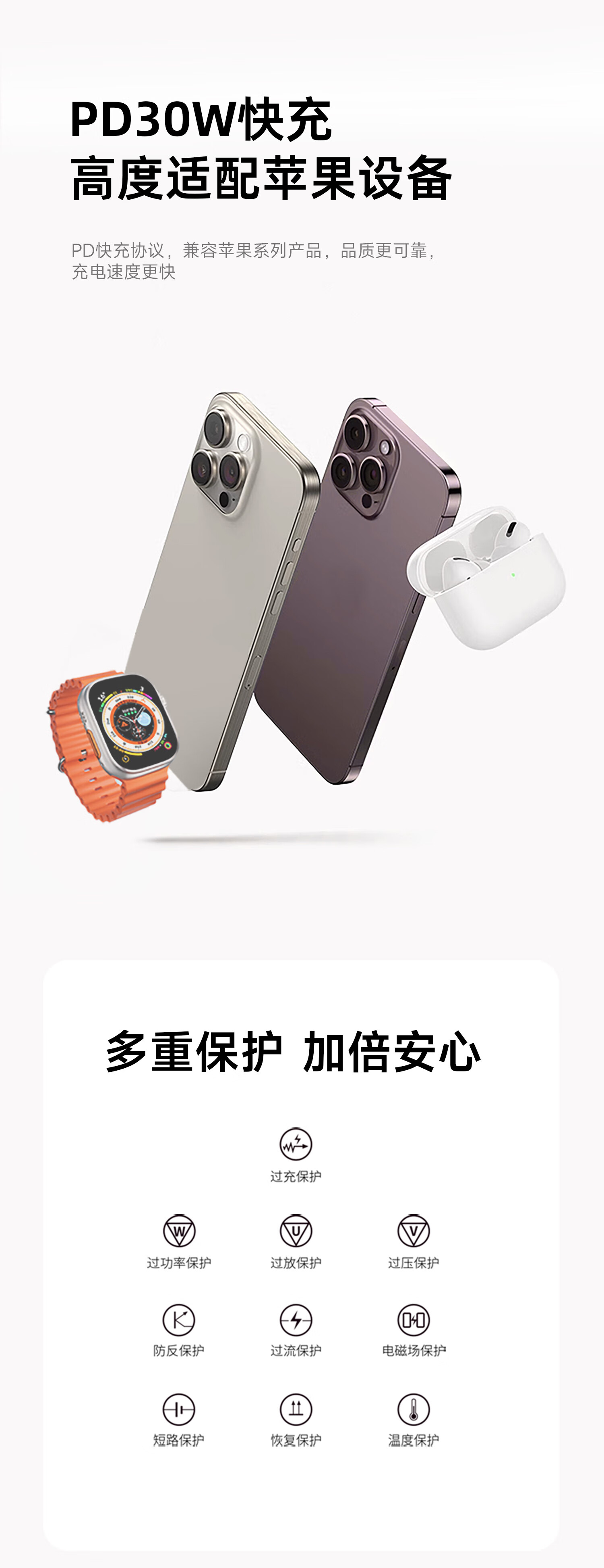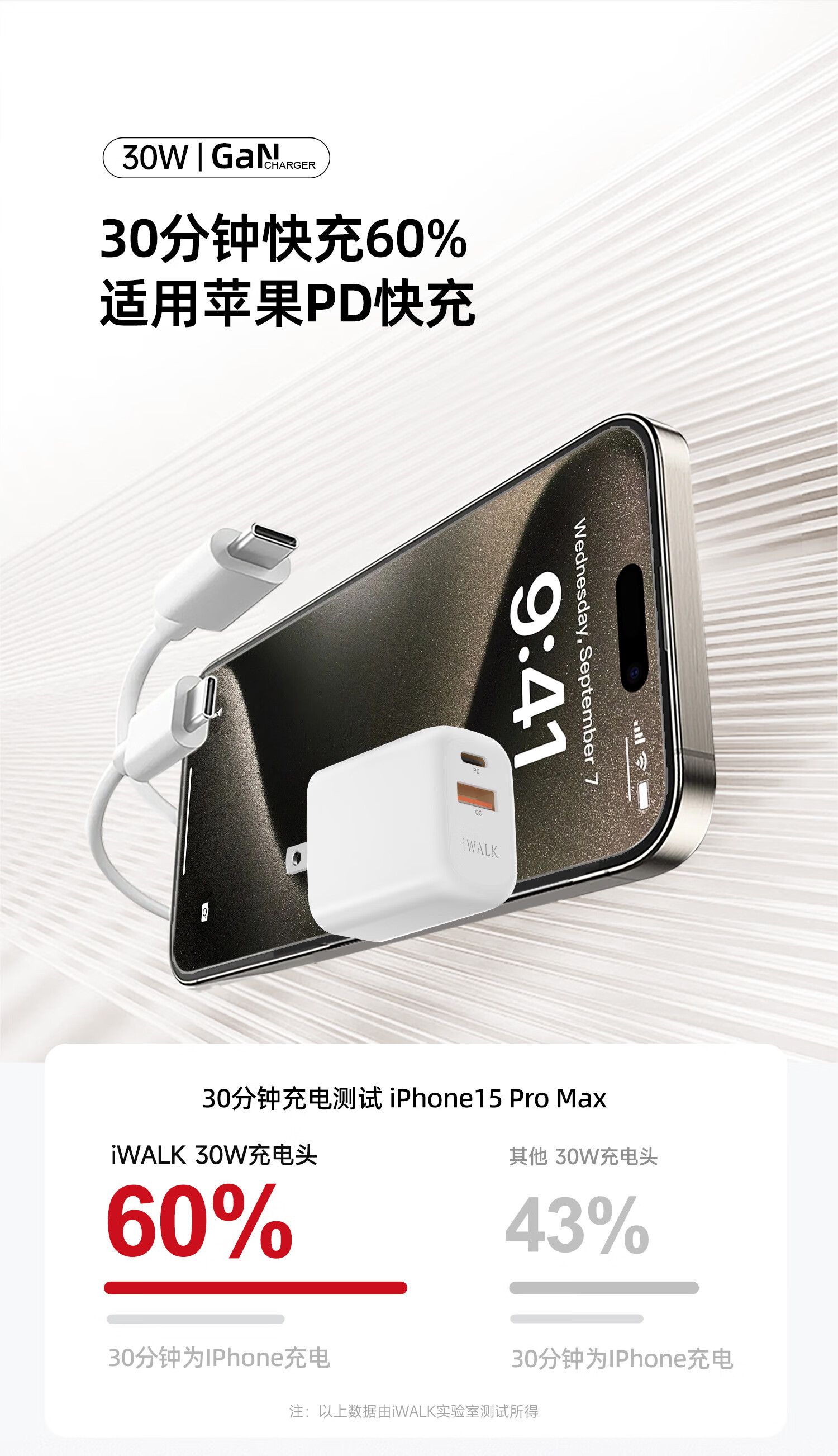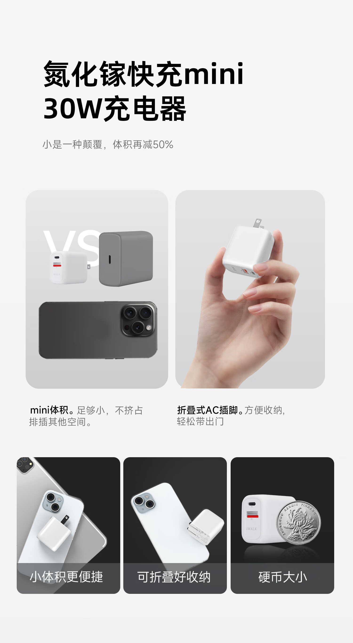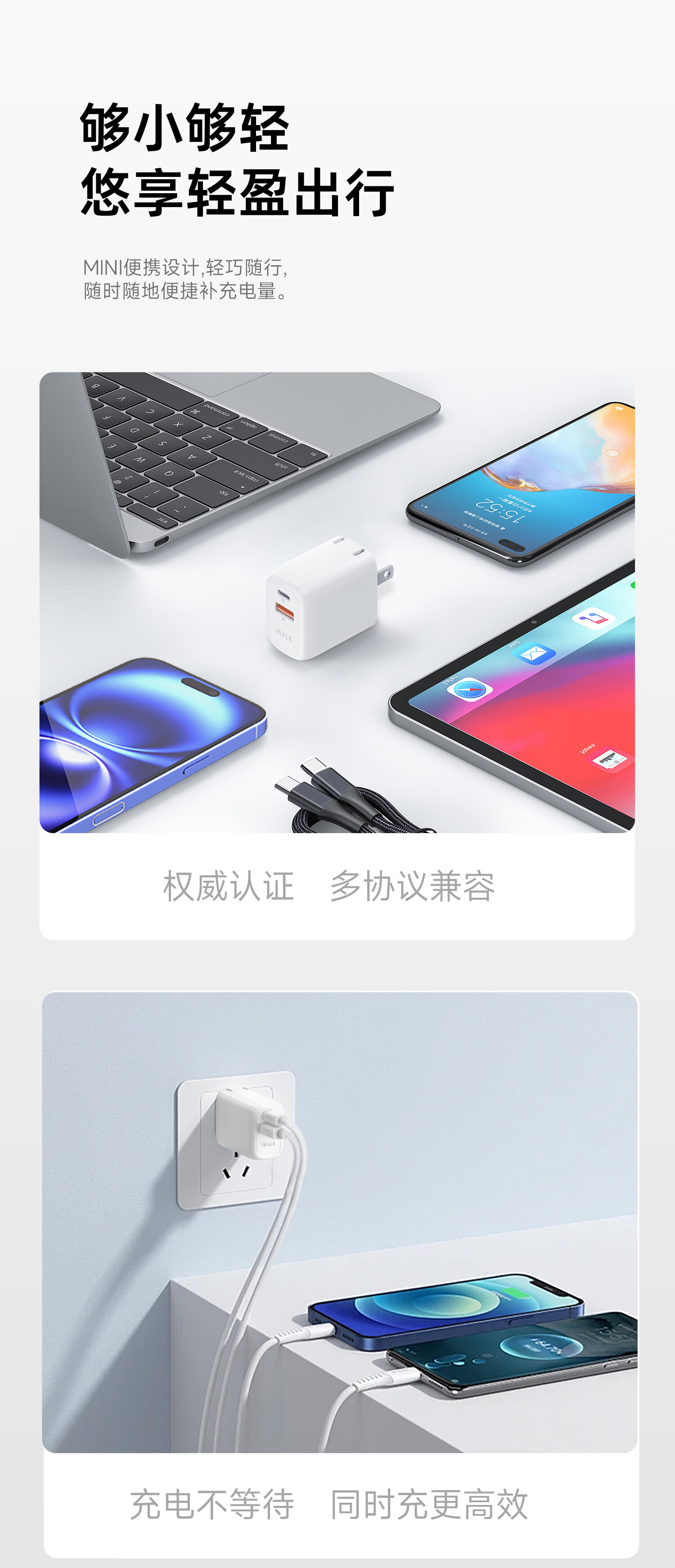 爱沃可(iWALK)苹果16/15充电器ADL027 30W氮化镓iPhone16ProMax快充头兼容PD20W适用华为小米苹果ipad平板手机快充头 经典白