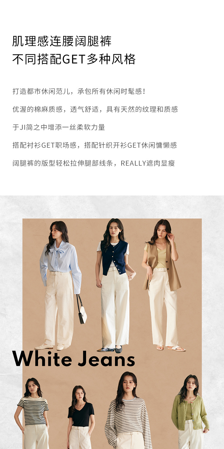 HeyDress肌理感连腰阔腿裤