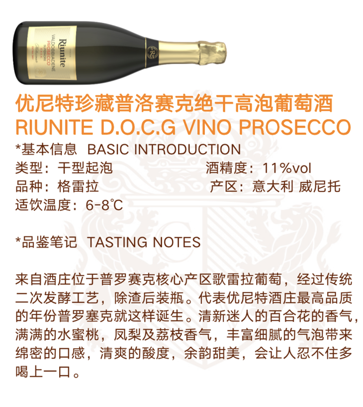 陈酿工艺:至少 12 个月酒泥陈酿,自然发酵,传统瓶中发酵