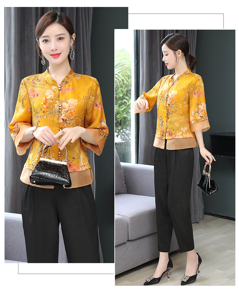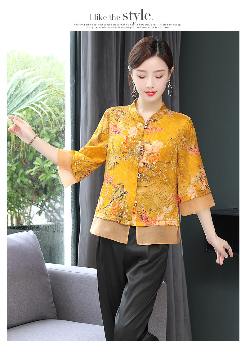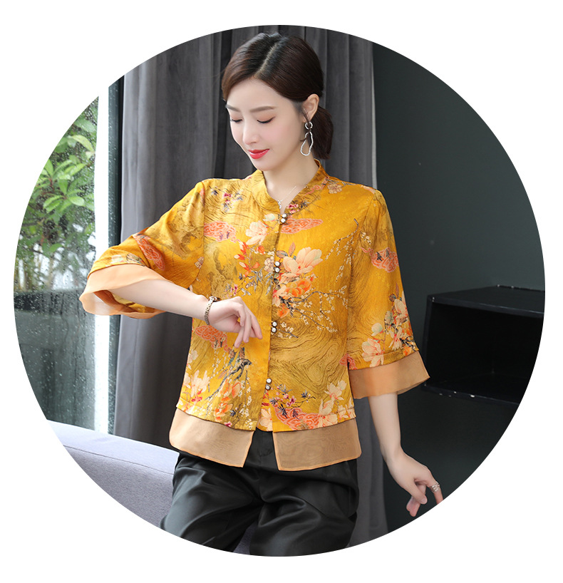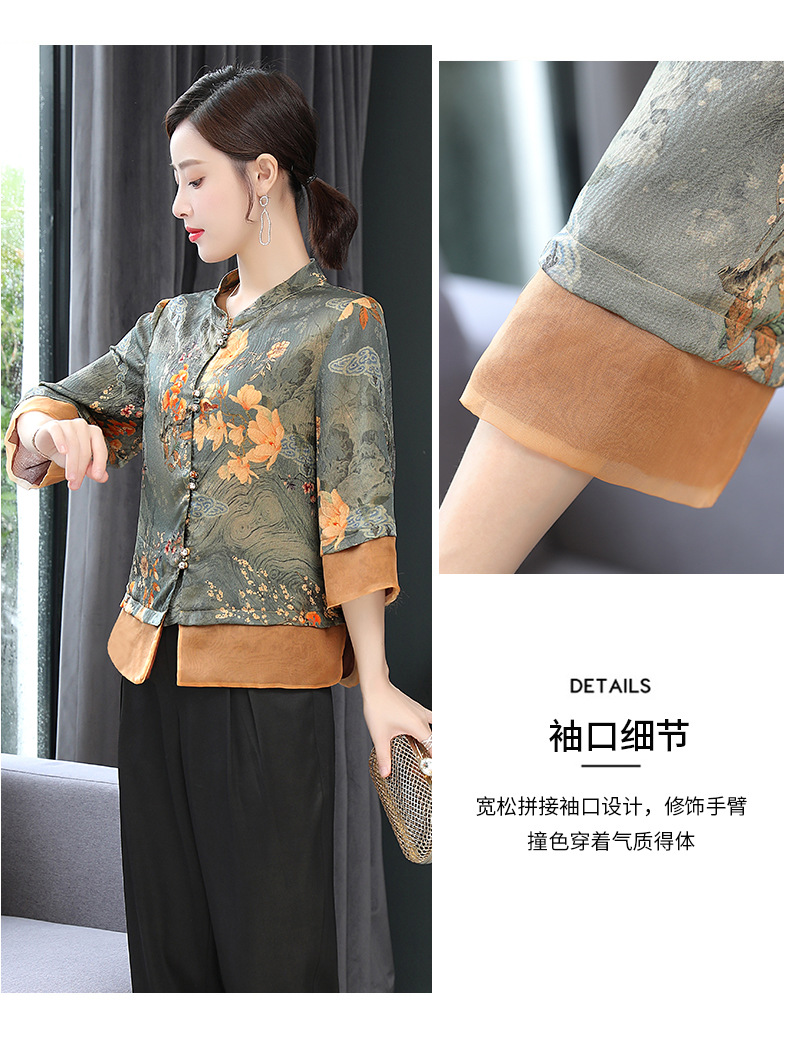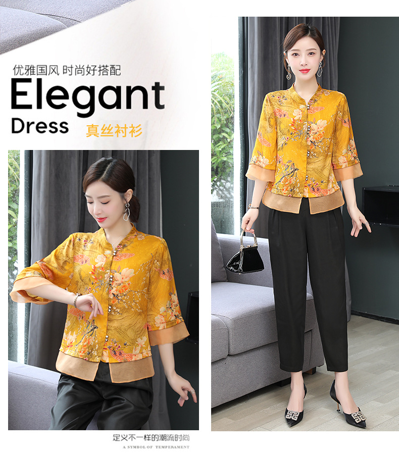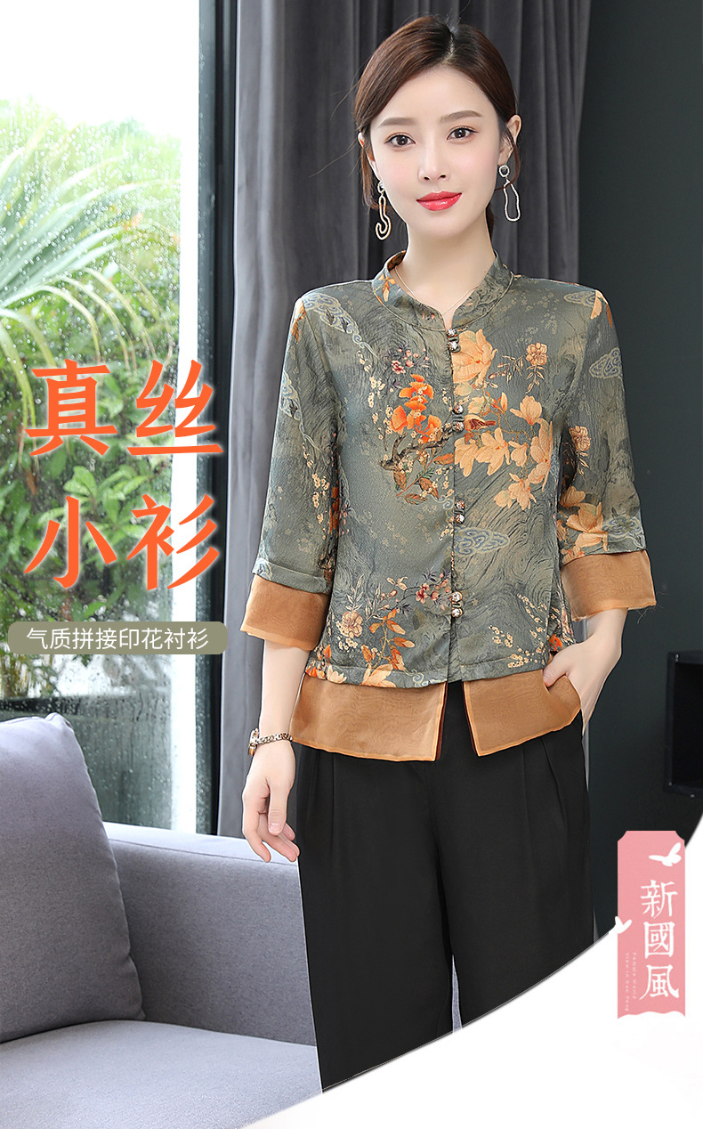 ASE-653印花气质立领真丝衬衫