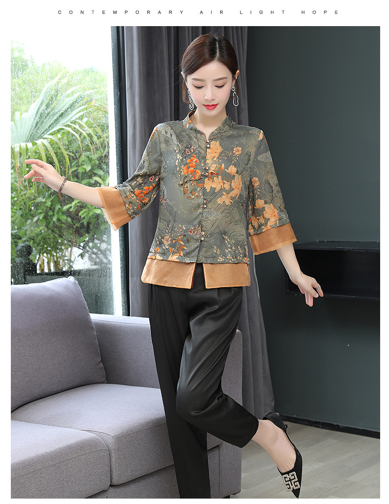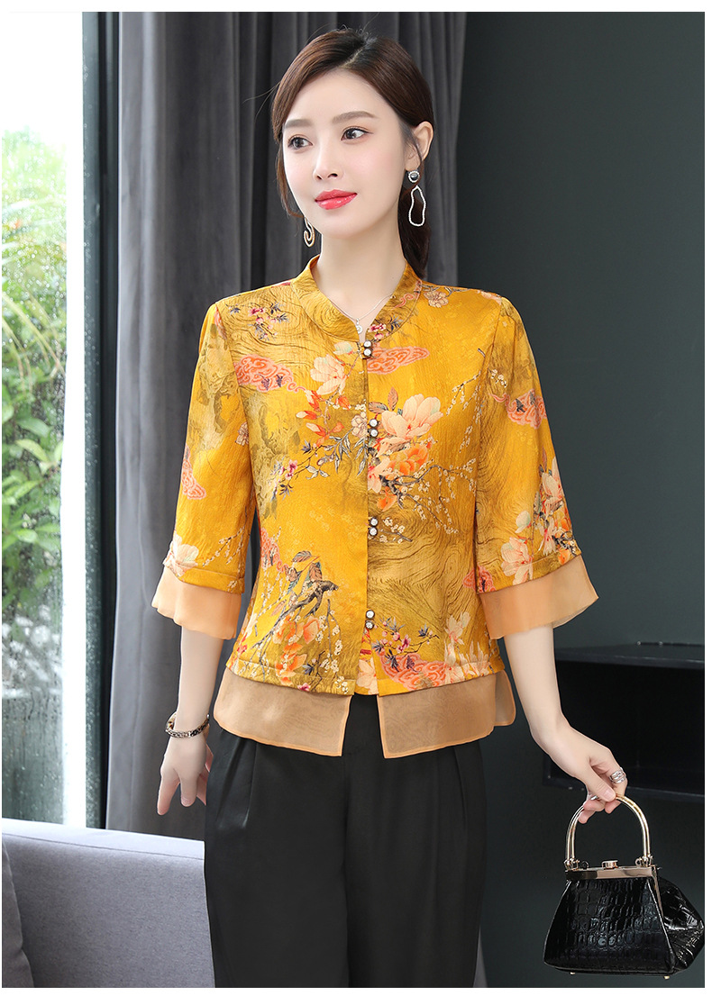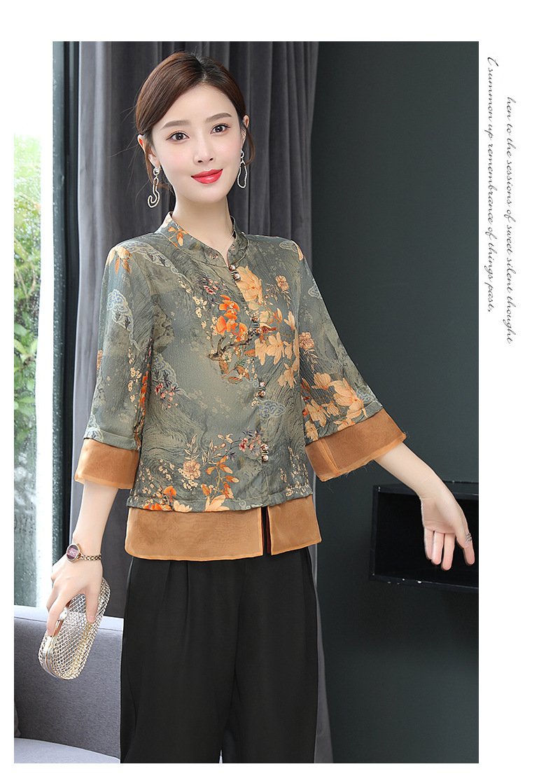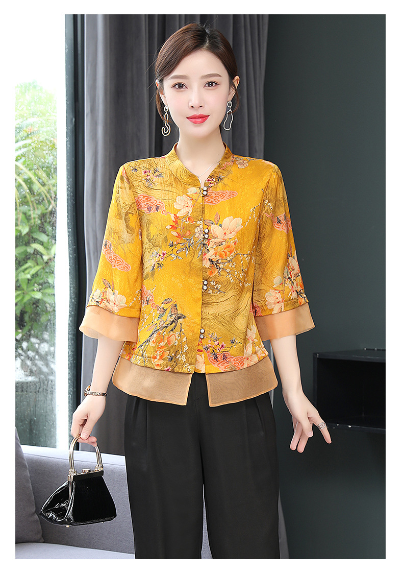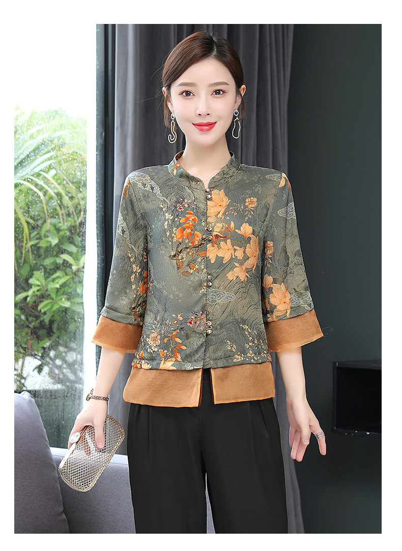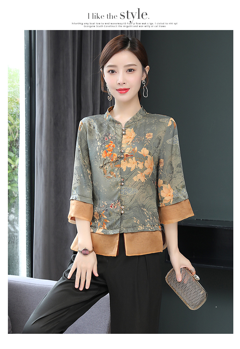 ASE-653印花气质立领真丝衬衫