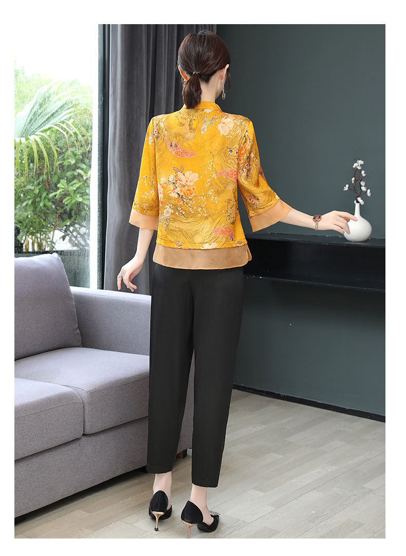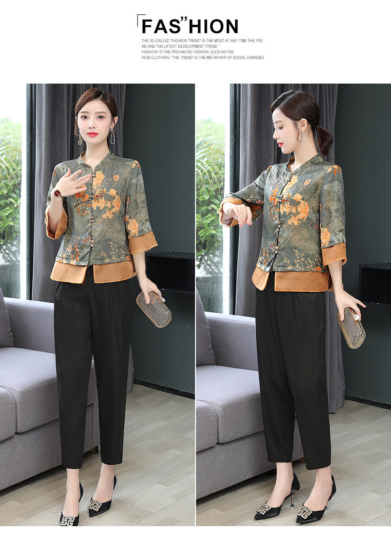 KQ-221903+221910香云纱老料重磅桑蚕丝松紧腰宽松显瘦气质女士阔腿裤时尚两件套装