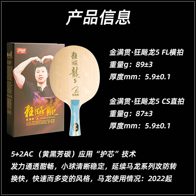 2022红双喜狂飚龙5马龙金满贯乒乓球底板限量纪念收藏 版乒乓球拍